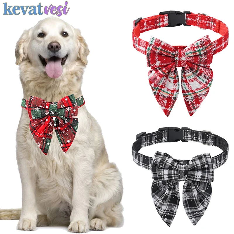 Collar navideño para perro, collares para mascotas con lazo de copo de nieve para perros pequeños, medianos y grandes, Collar para gato, accesorios para fiesta de Navidad para mascotas