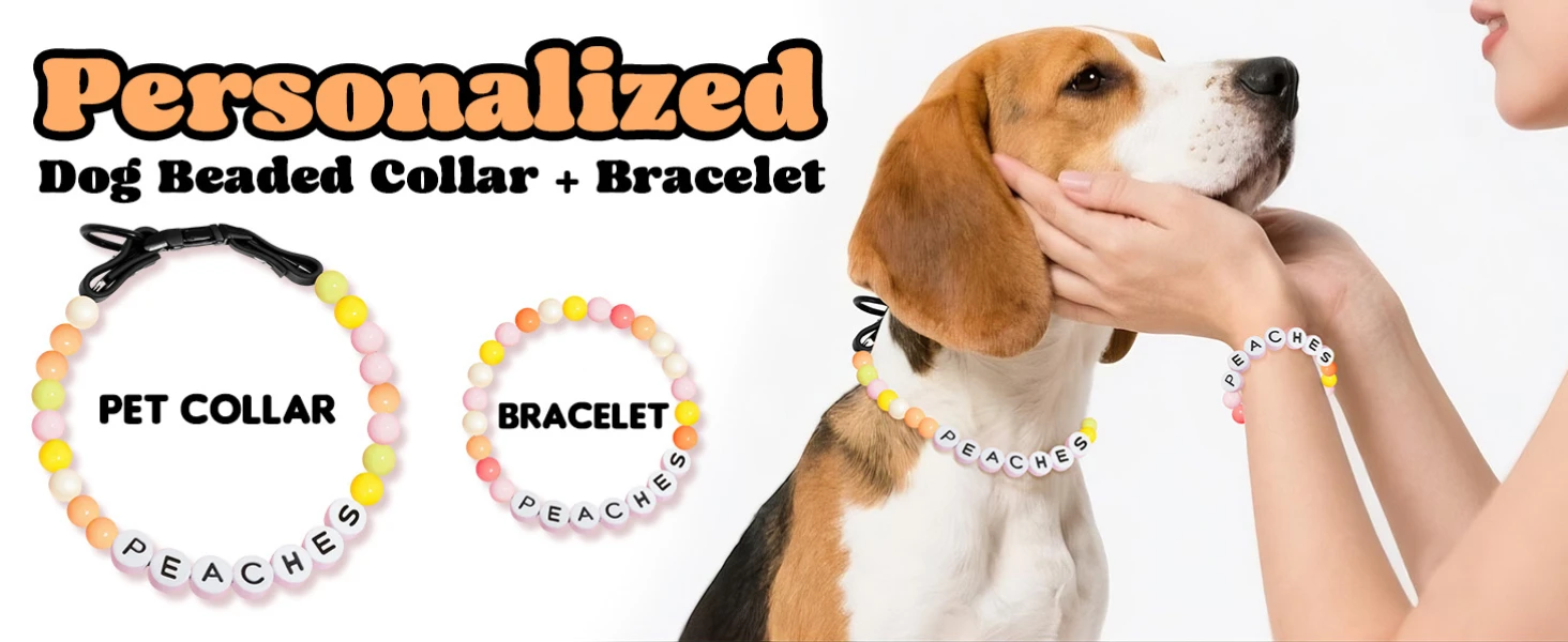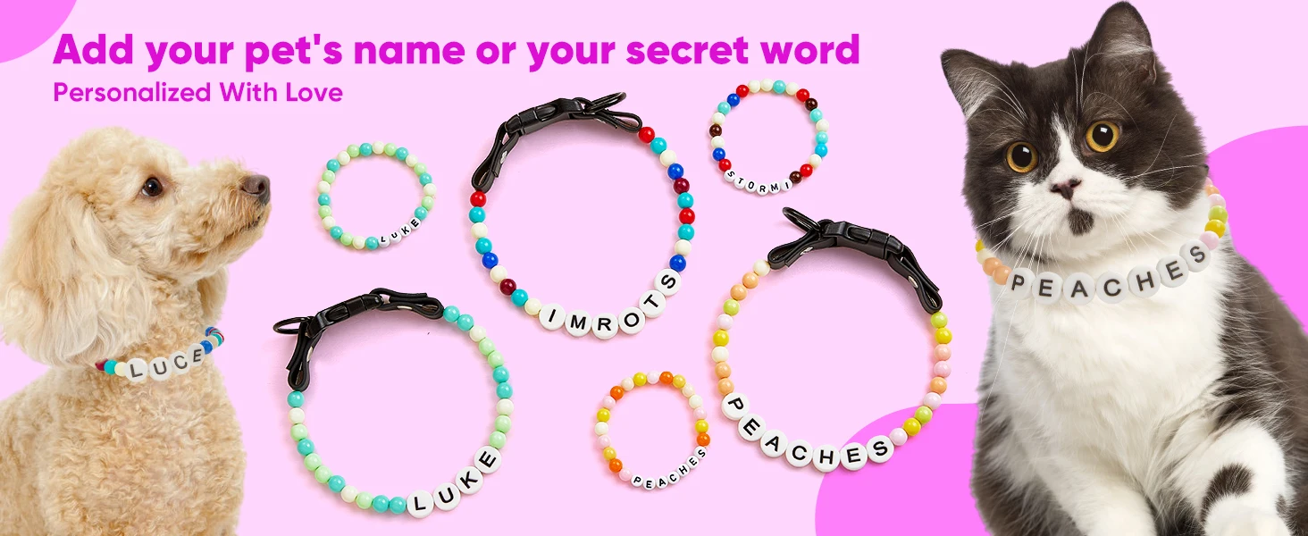 Collar con nombre de cuentas para mascotas con conjunto de pulsera, Collar personalizado para perro con cuentas, Collar con letras para perro con nombre DIY, Collar con cuentas de perlas para perro