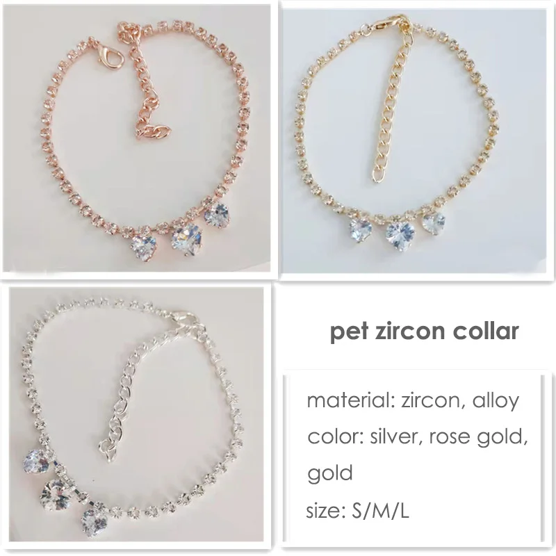 Collar de oro rosa para perro, colgante de circón, Collar de gato para perros pequeños, ajustable, nuevo diseñador, ropa de cuello de fiesta, accesorios para cachorros