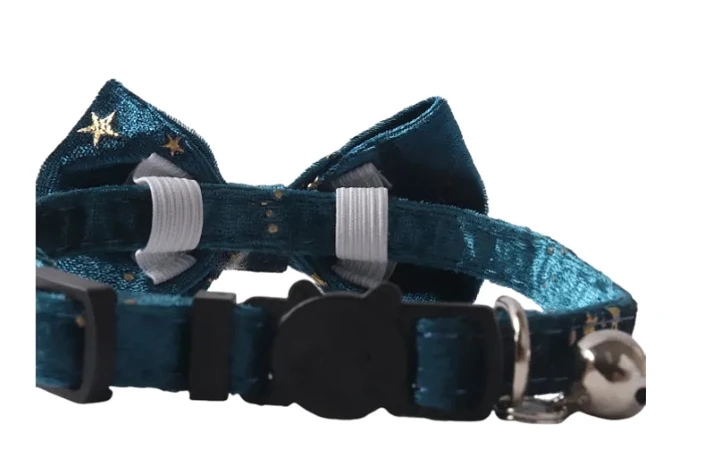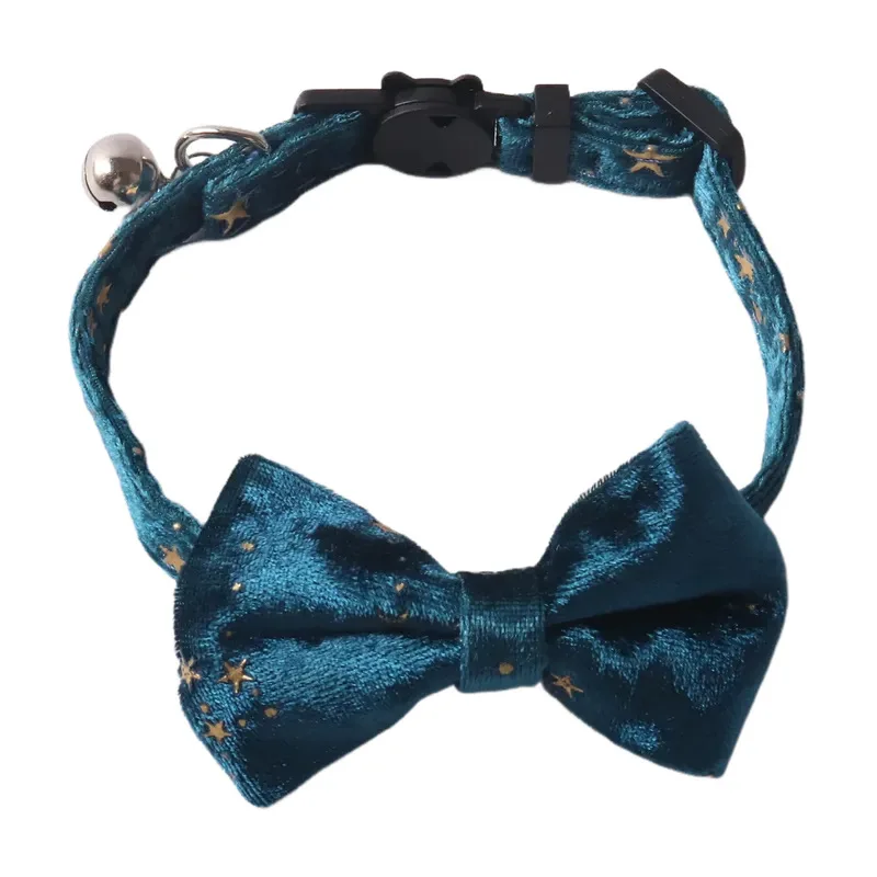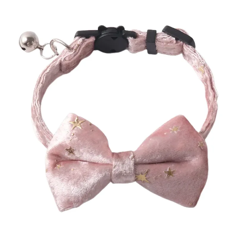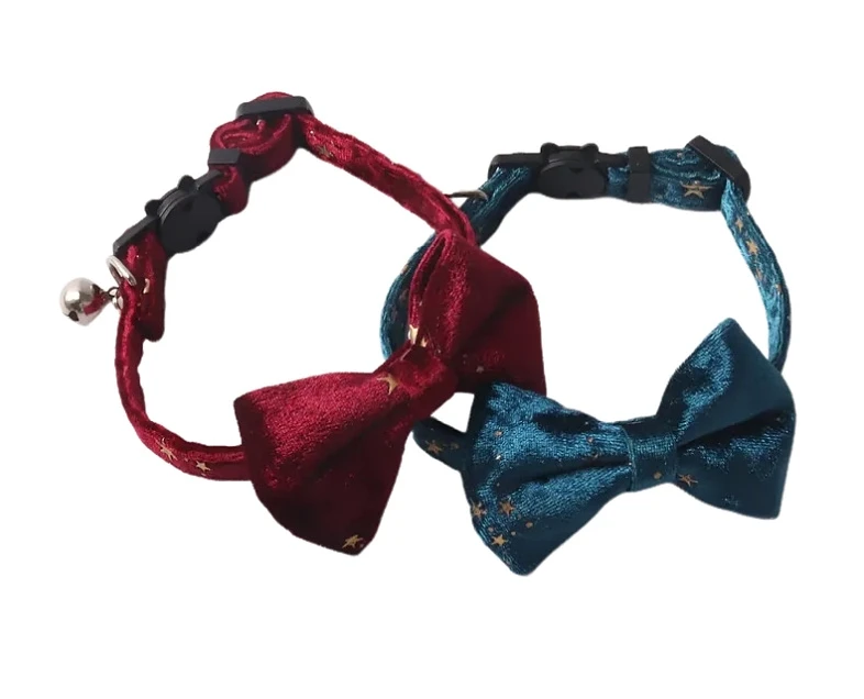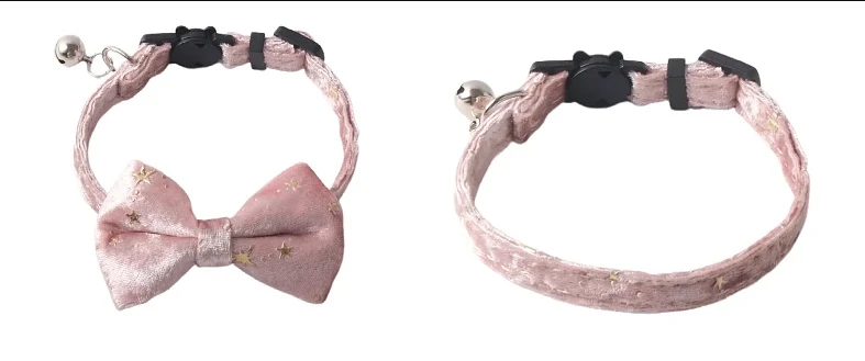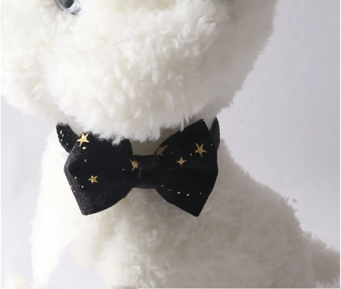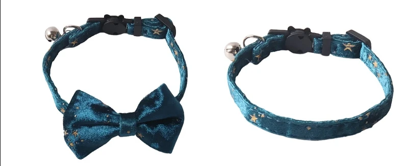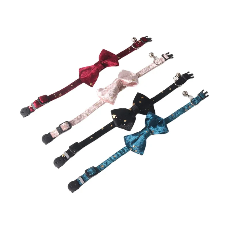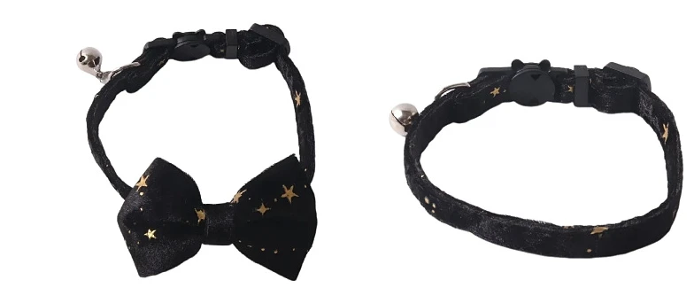 Collar con pajarita para gatos, Collar ajustable para mascotas para perros pequeños, cachorro de terciopelo con patrón de estrellas, Collar para gato, Collar para perro