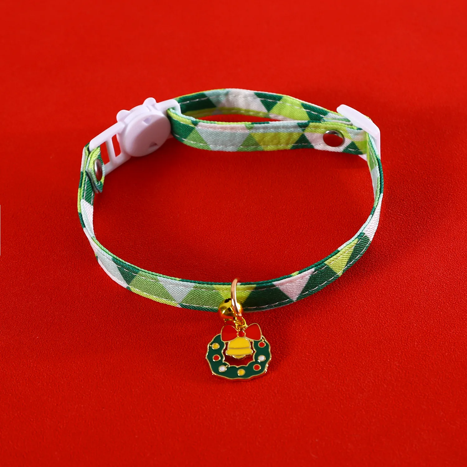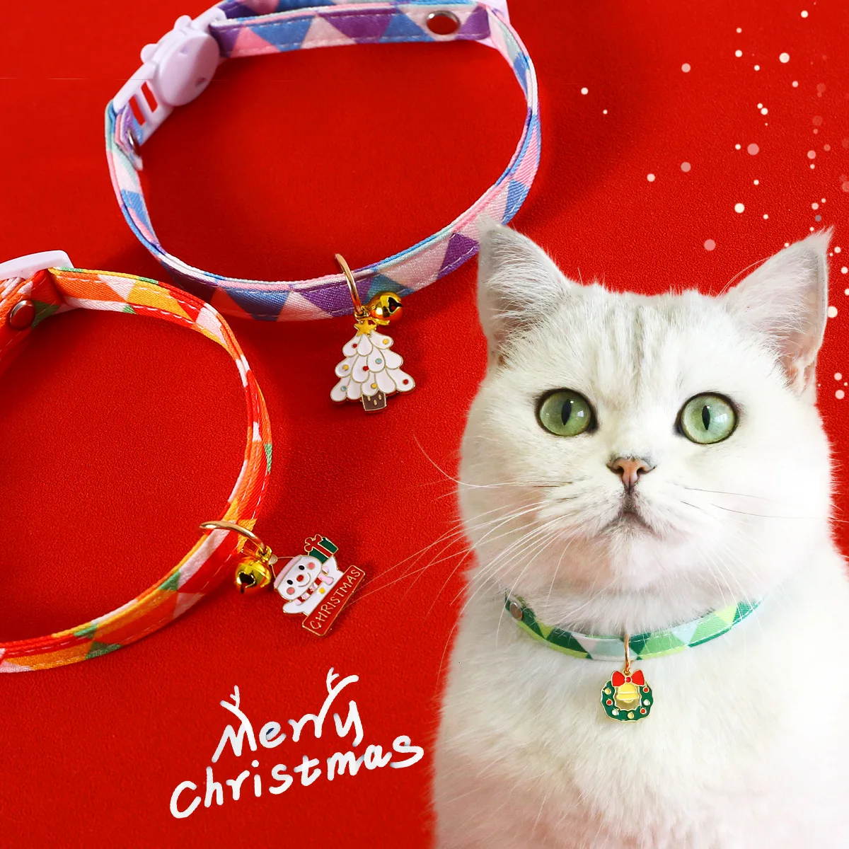 Collar con patrón de dibujos animados para mascotas, colgante de campana, hebilla de seguridad, accesorios de suministros para cachorros, gatitos y conejos, navidad