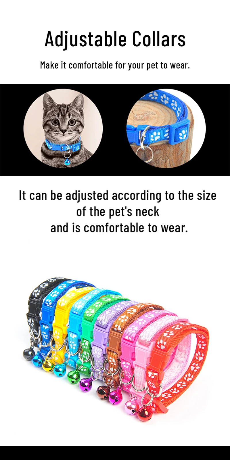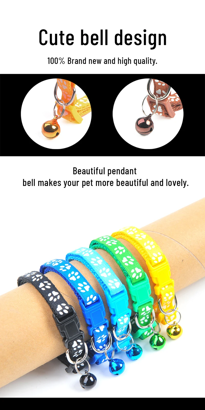 Collar adhesivo para mascotas, Collar para perros y gatos, huella única, estampado de pata, Color, campana, Collar, cierre para gatos, accesorios para mascotas, suministros para mascotas