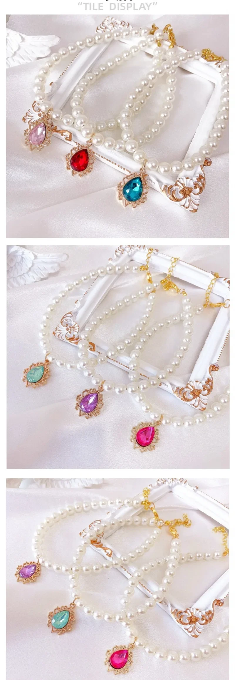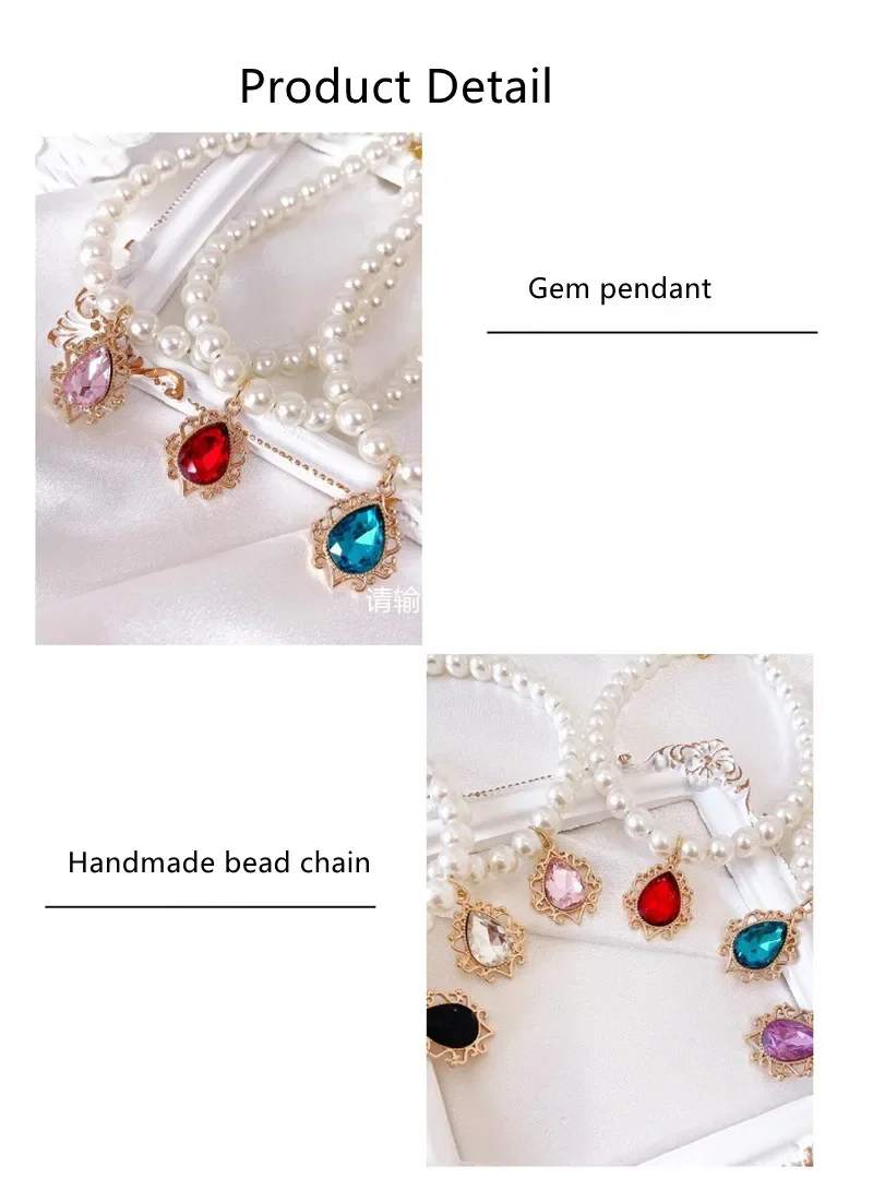 Collar de perlas ajustable Noble para mascotas, Collar para gatos con colgante de aleación de piedras preciosas en forma de gota para perros y gatos, accesorios para cachorros