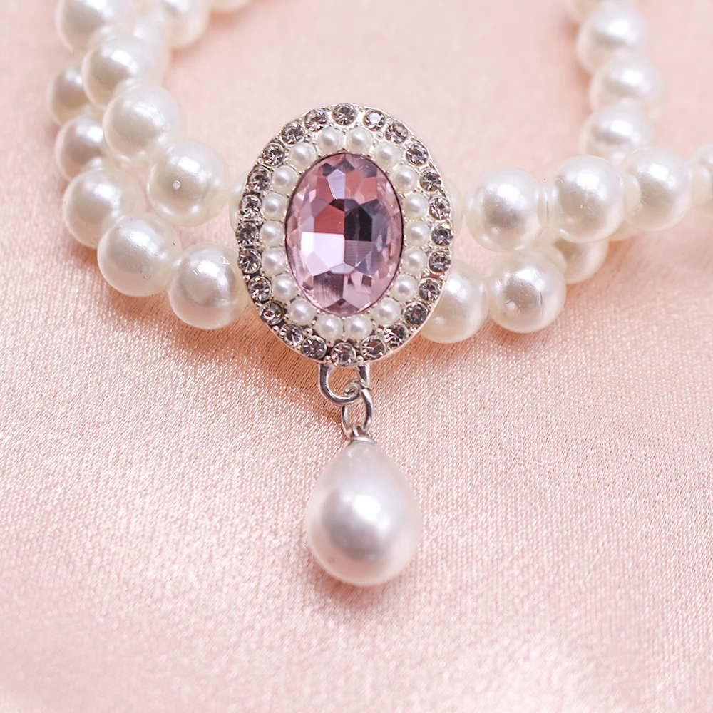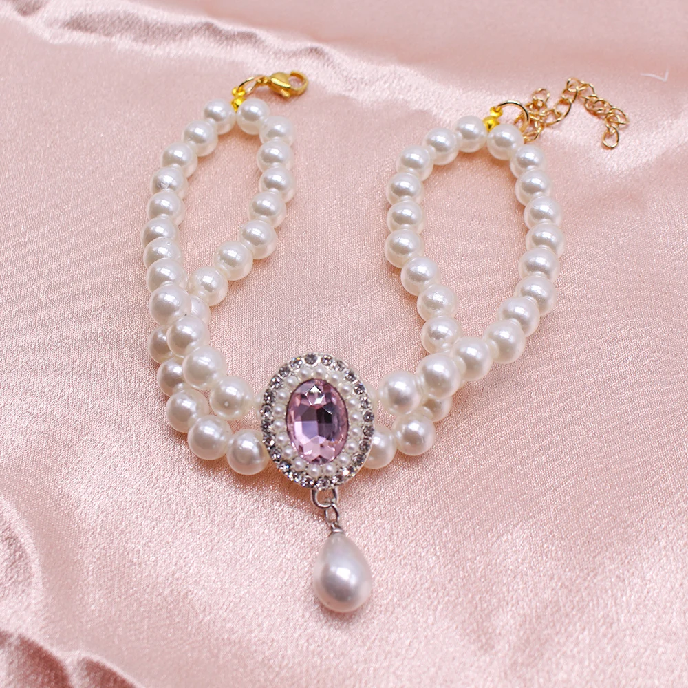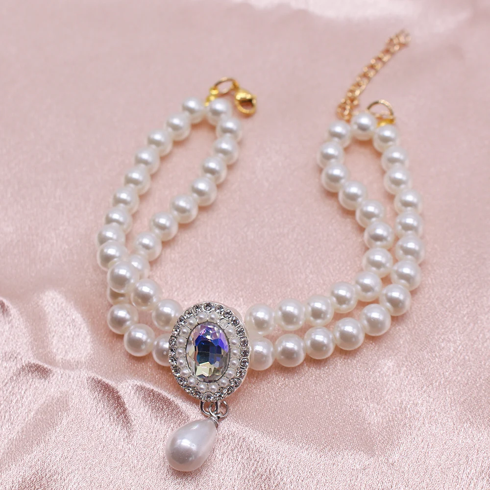 Collar de perlas ajustable para perro y gato, joyería con colgante de diamante, Collar de lujo para mascota, accesorios para disfraz de boda, cumpleaños y graduación