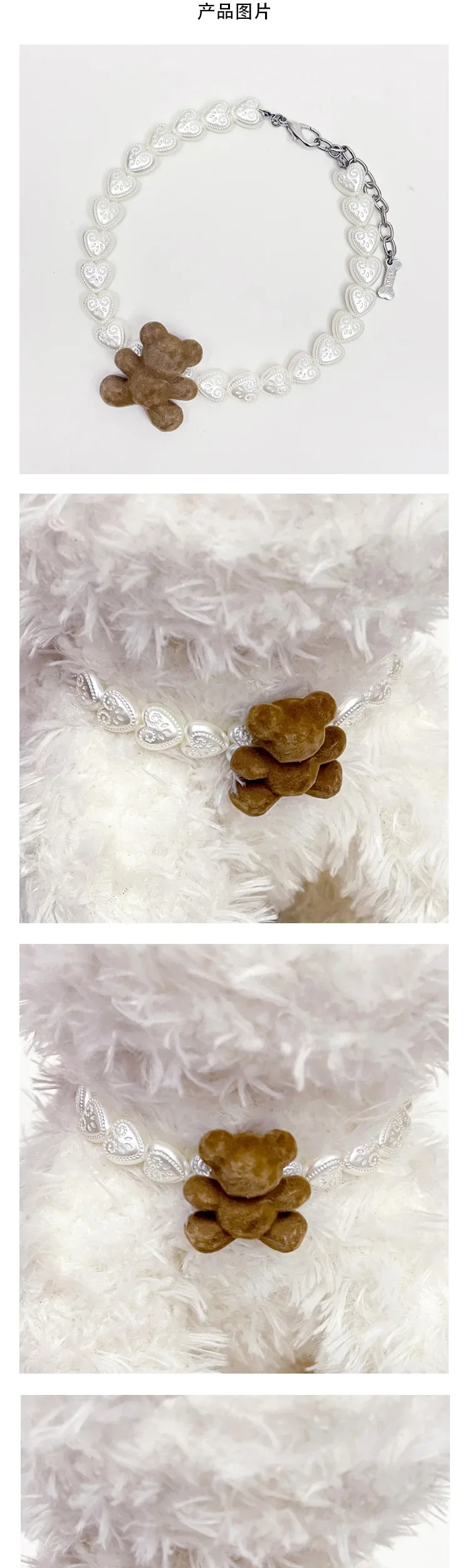 Collar de perlas de amor para mascotas, Collar de oso pequeño, accesorios para gatos, anillo para perros pequeños y medianos, pajarita para perros, accesorios para cachorros