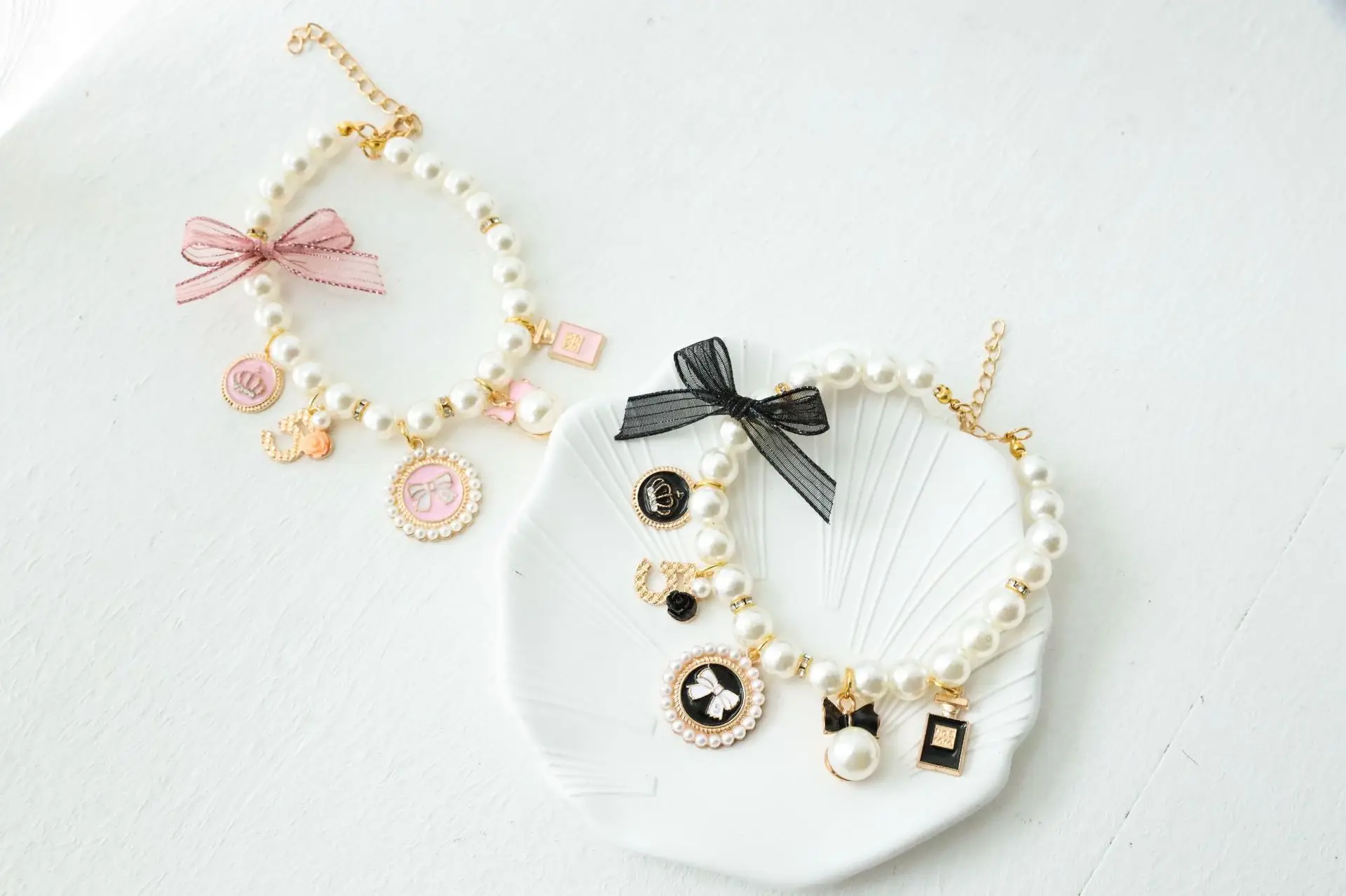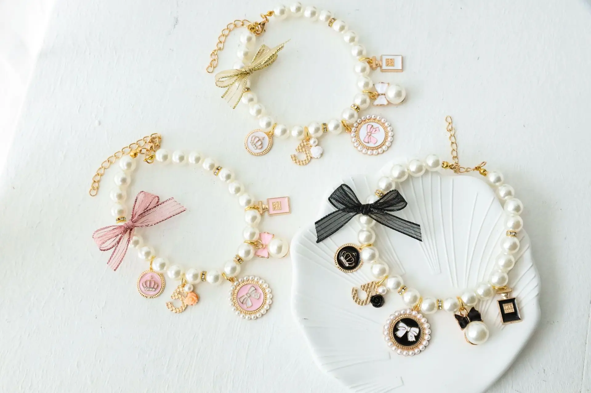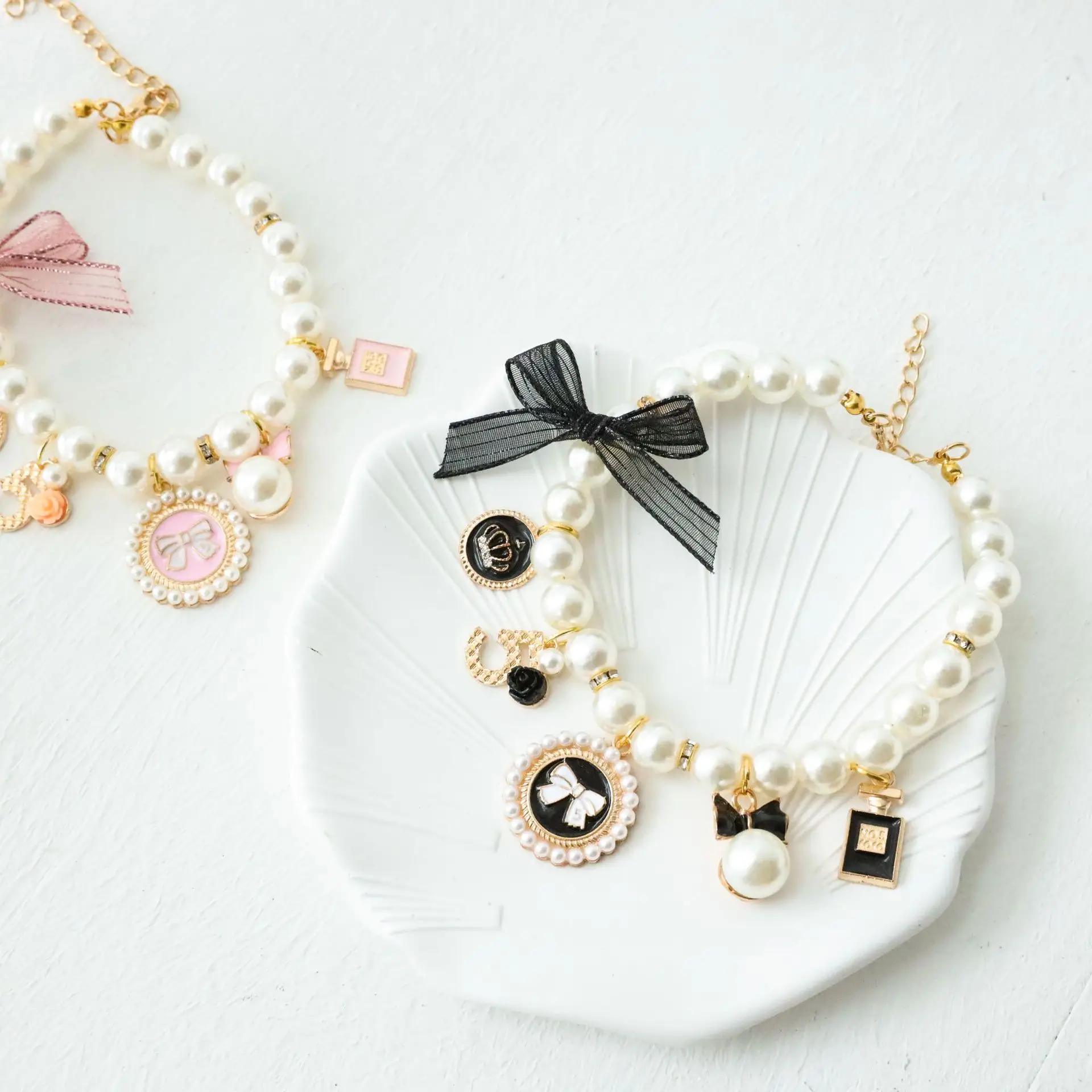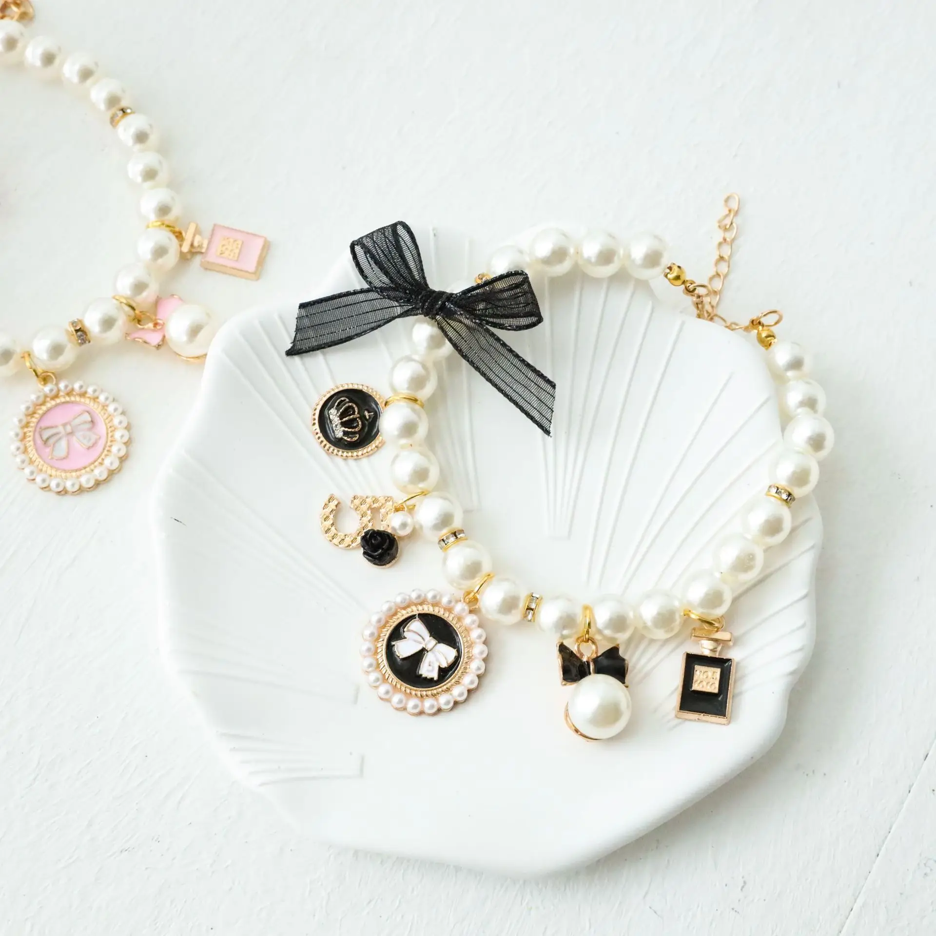 Producto: Collar bonito con lazo de perlas para mascotas