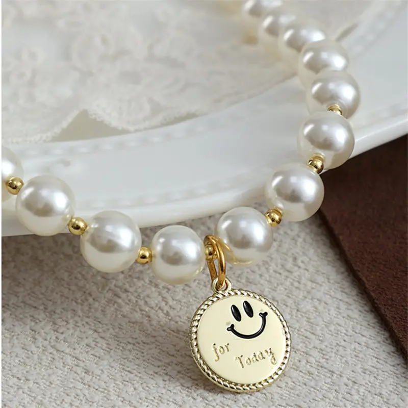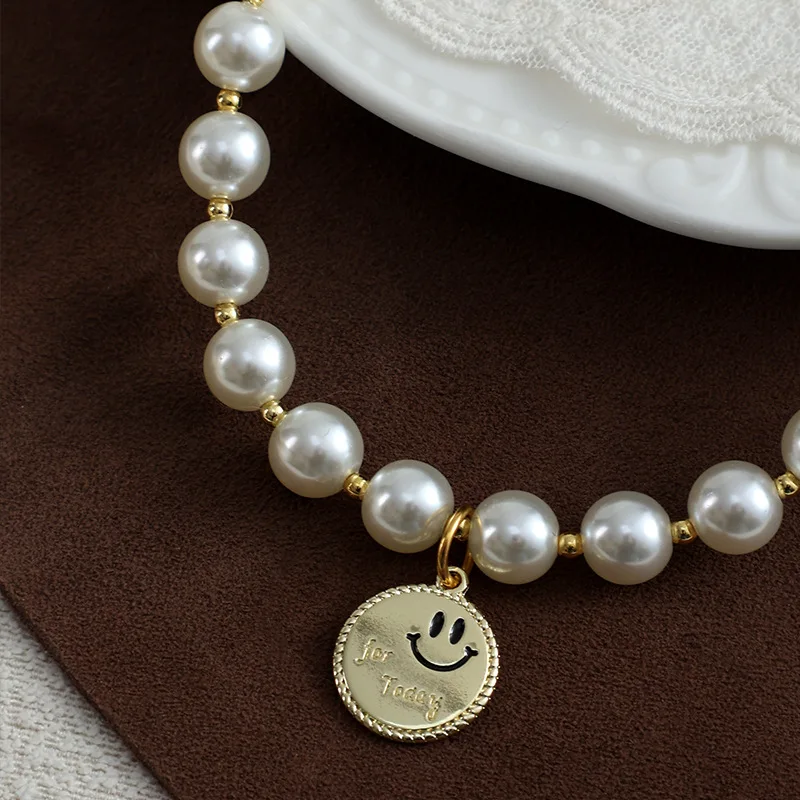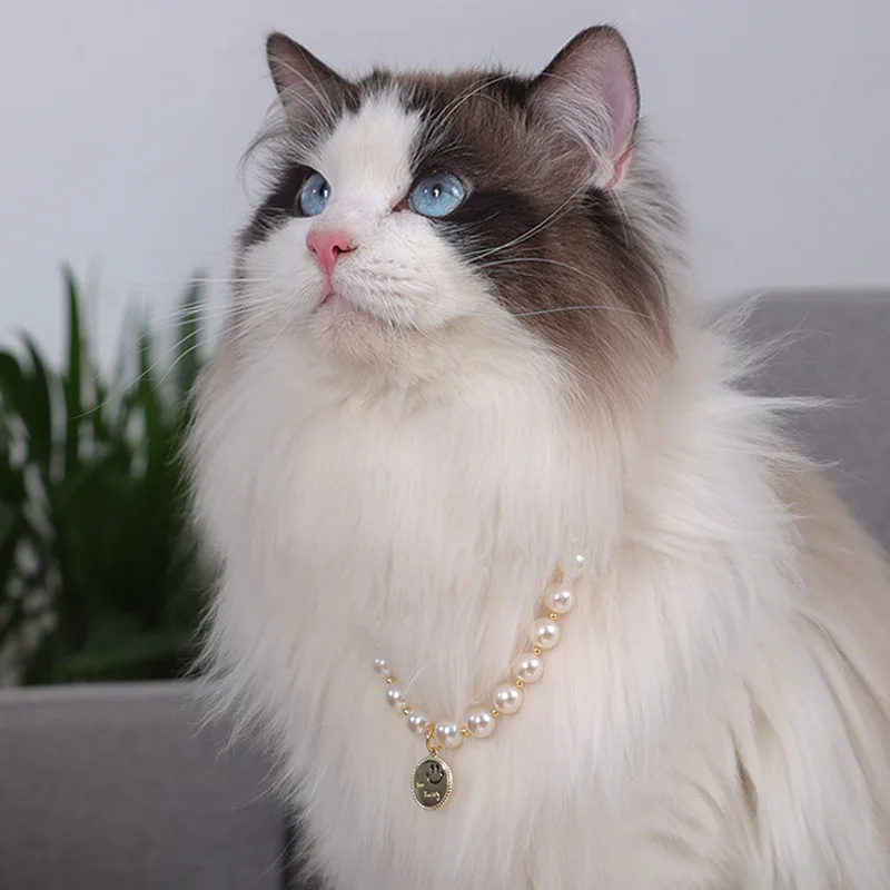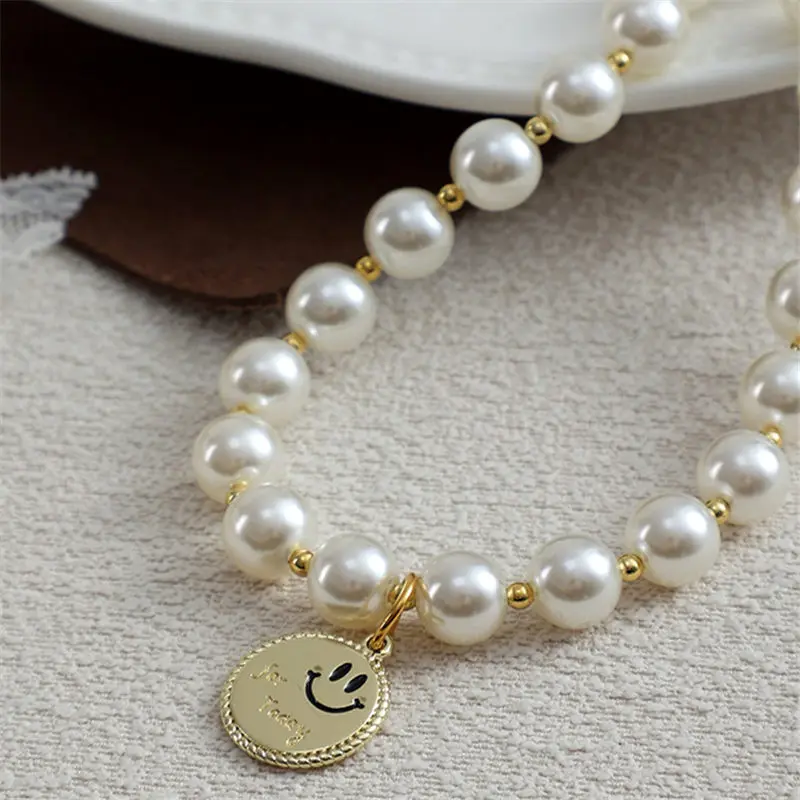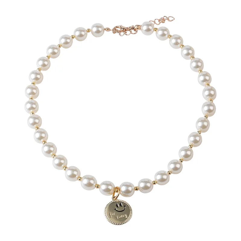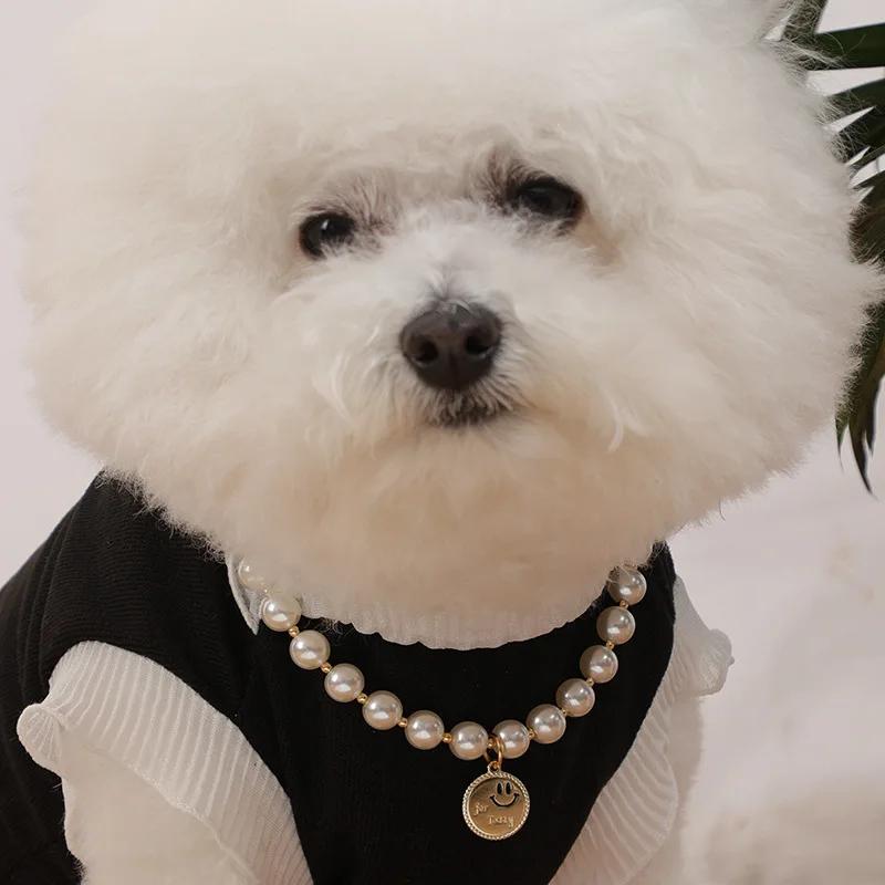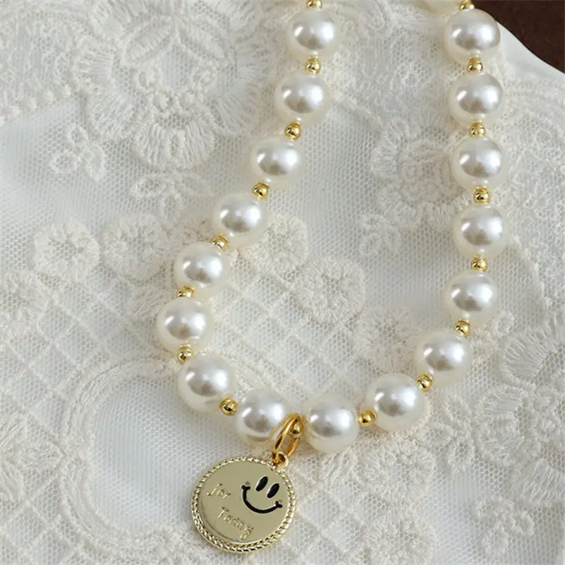 Collar de perlas brillantes para mascotas, colgante de aleación de Ángel sonriente, hecho a mano, Collar ajustable para gatos y perros, suministros de joyería, nuevo