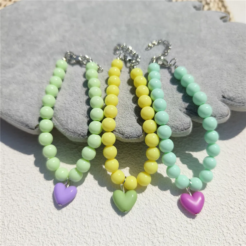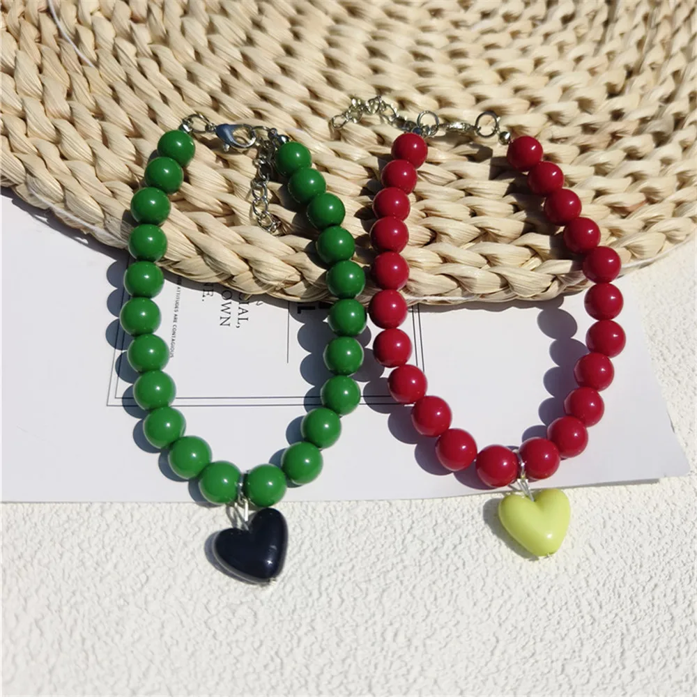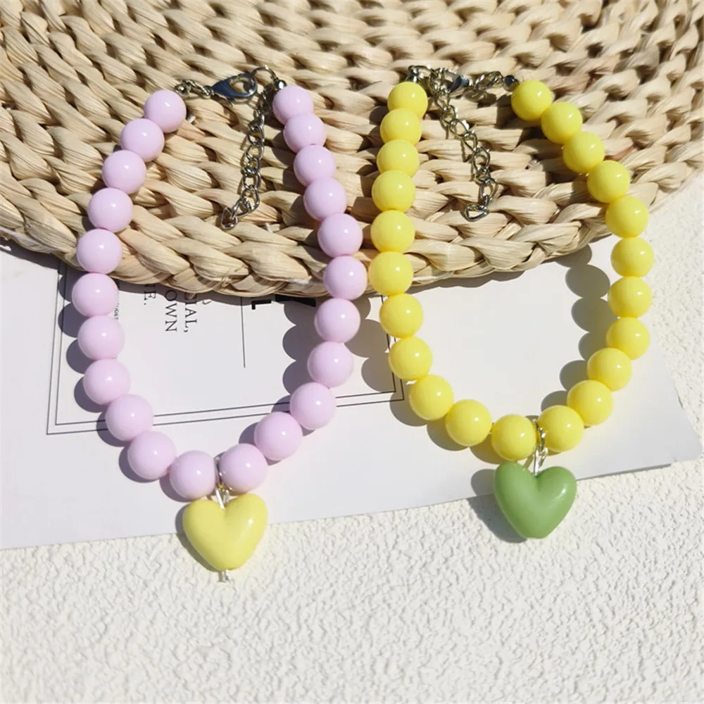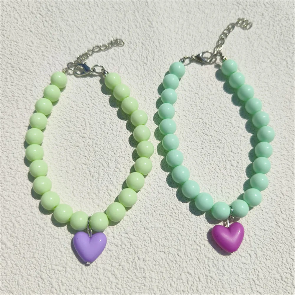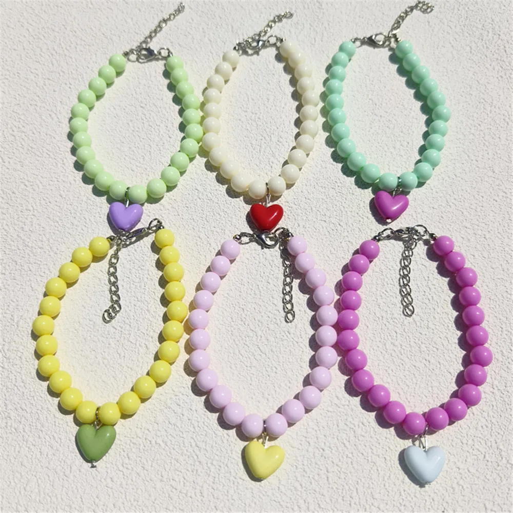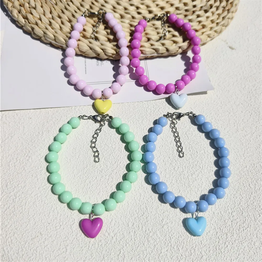Collar de perlas de colores caramelo para mascotas, Collar ajustable con colgante en forma de corazón para perros pequeños y medianos, suministros para mascotas, 1 ud.