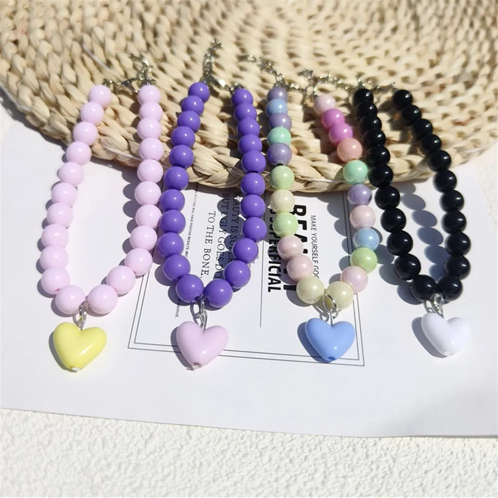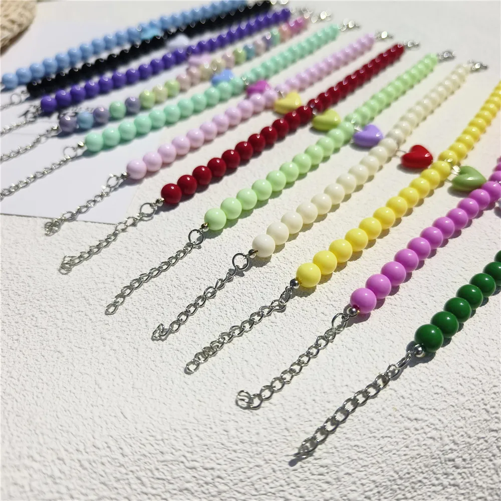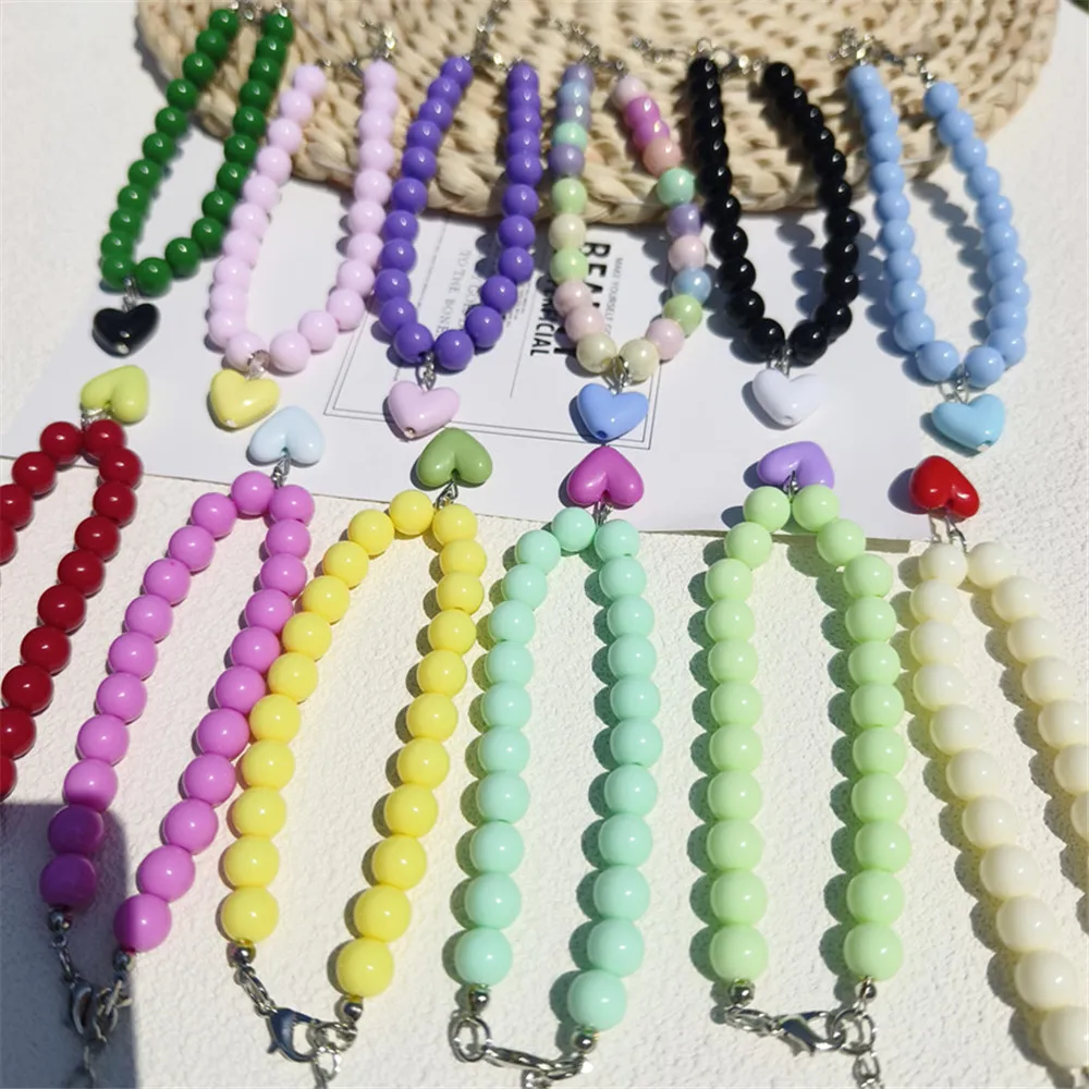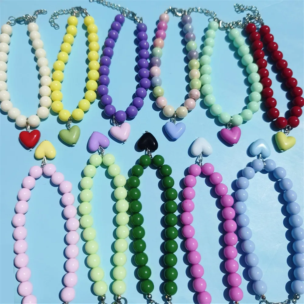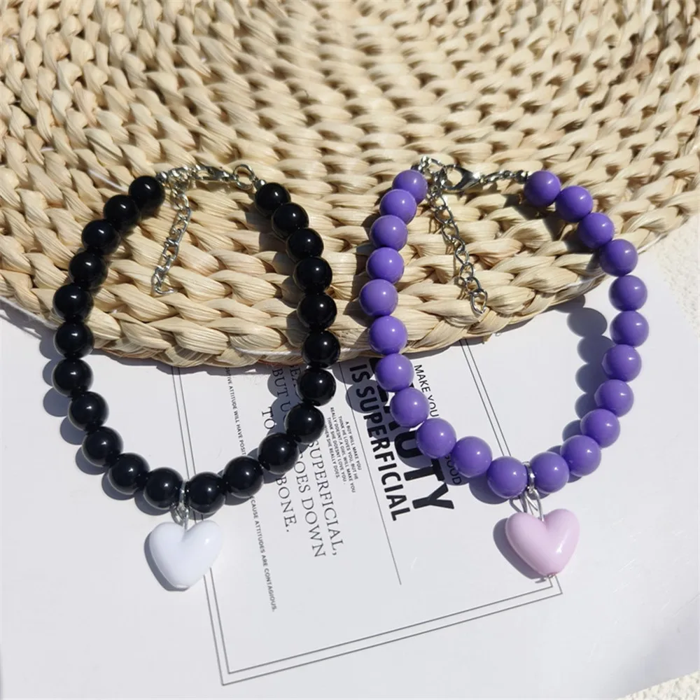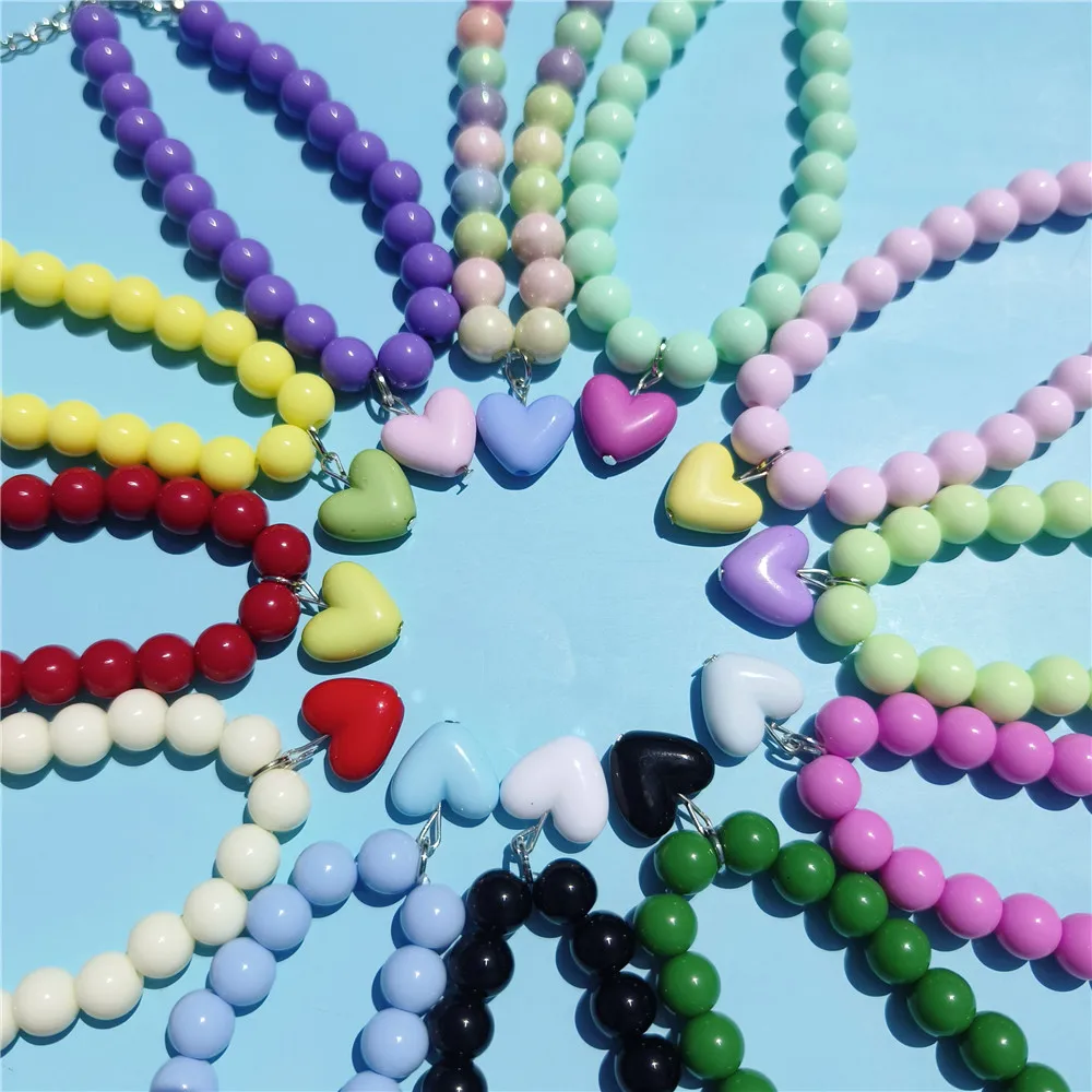 Collar de perlas de colores caramelo para mascotas, Collar ajustable con colgante en forma de corazón para perros pequeños y medianos, suministros para mascotas, 1 ud.