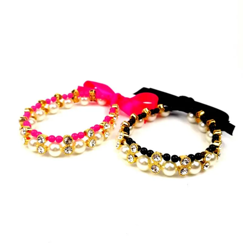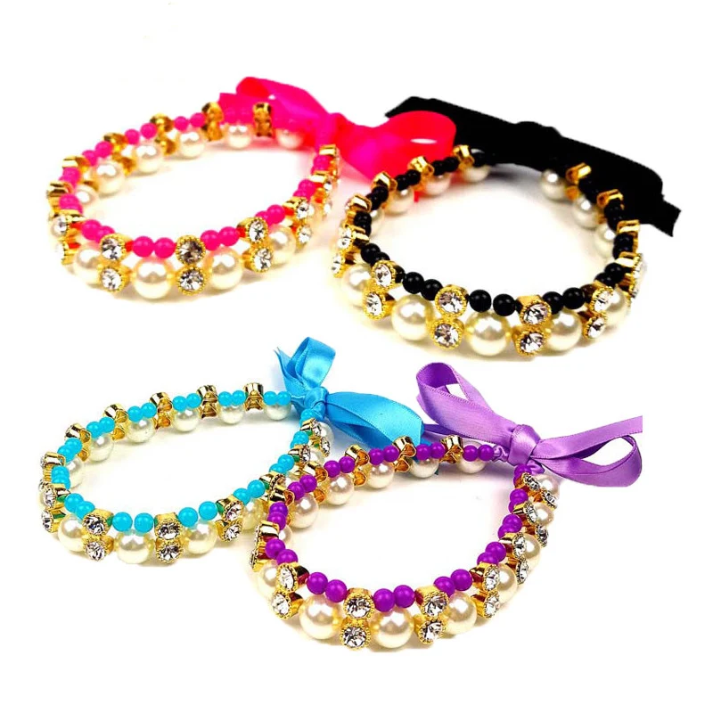 Precioso collar de perro mascota de perla delicada, Collar de Cinta ajustable suave de alta calidad para perros pequeños, collar de diamantes de imitación de princesa 10A