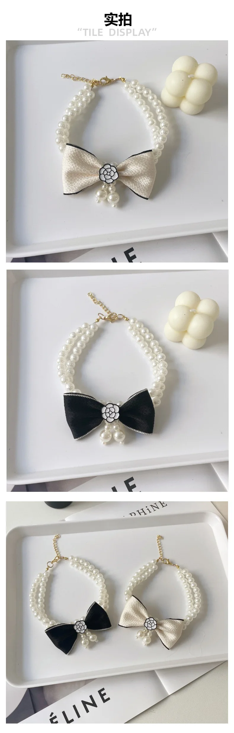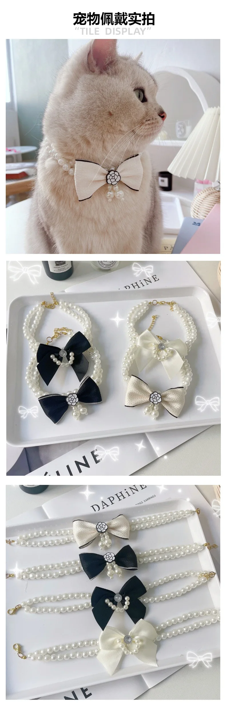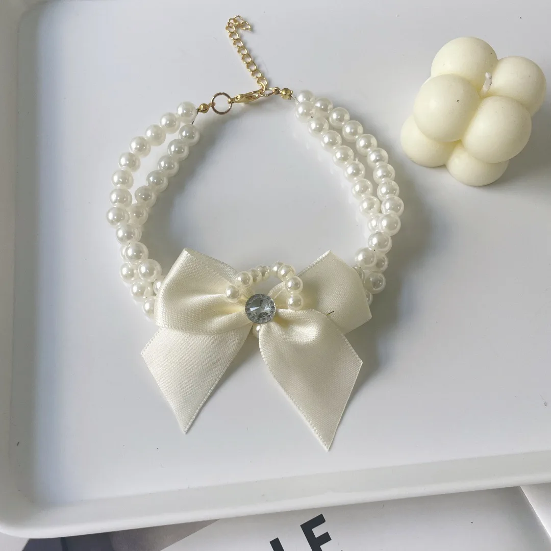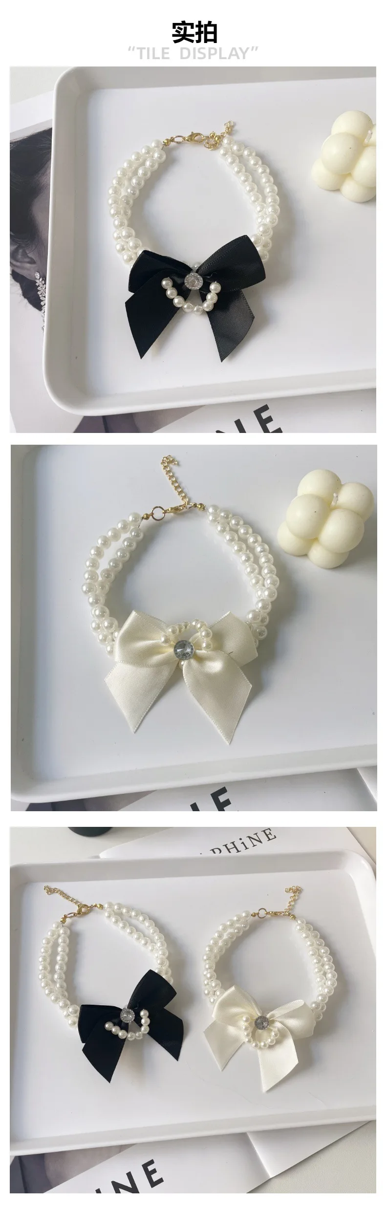 Collar de perlas de doble capa con lazo para mascotas, Collar de cuentas para perros y gatos, Collar de cadena para el cuello, accesorios para perros pequeños, accesorios para cachorros