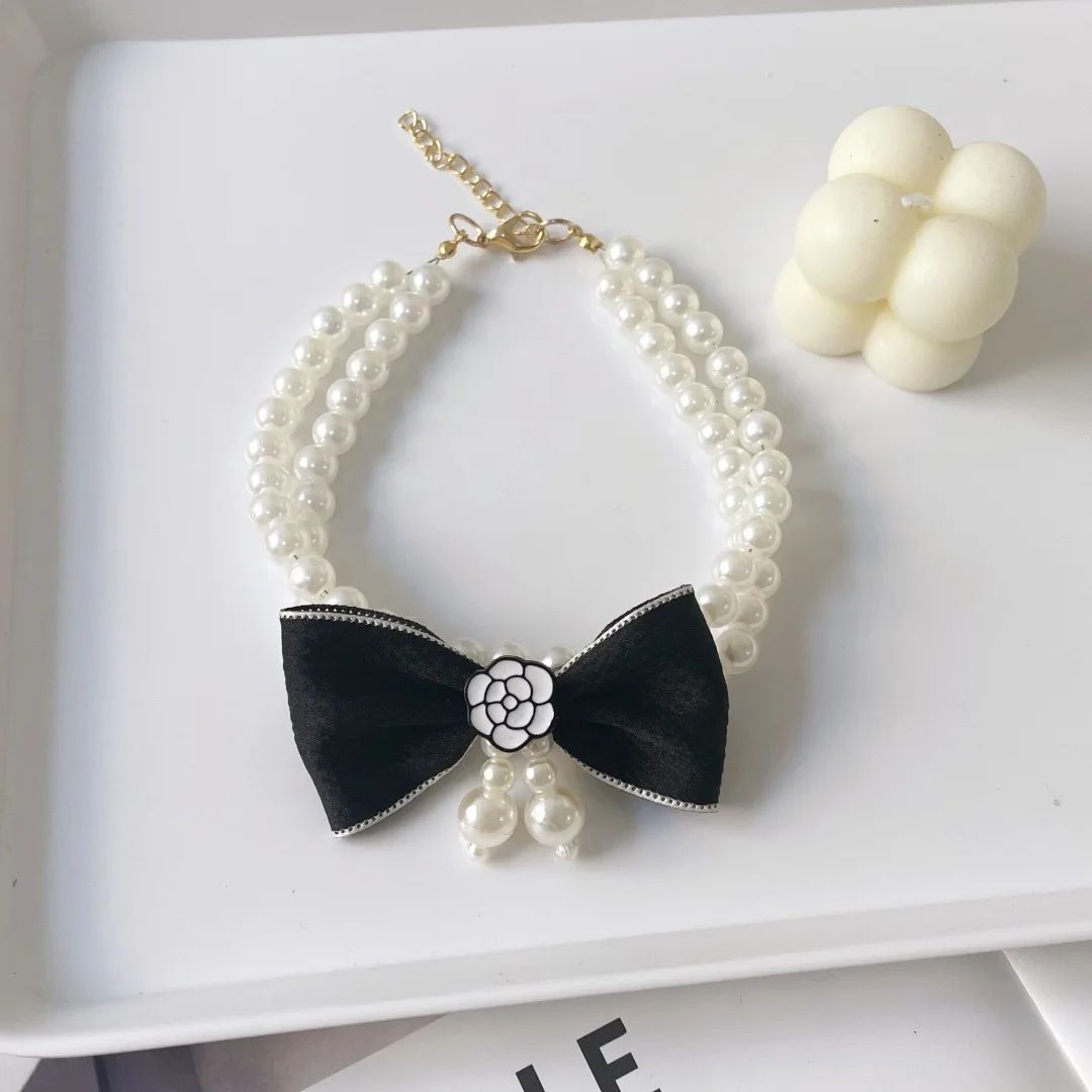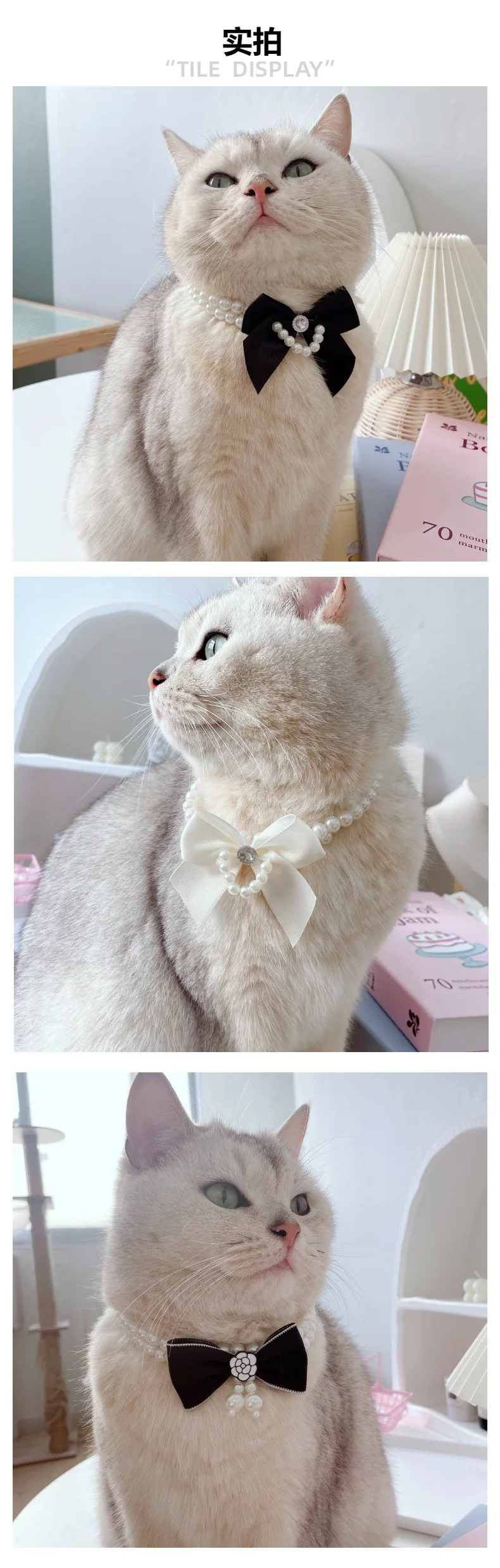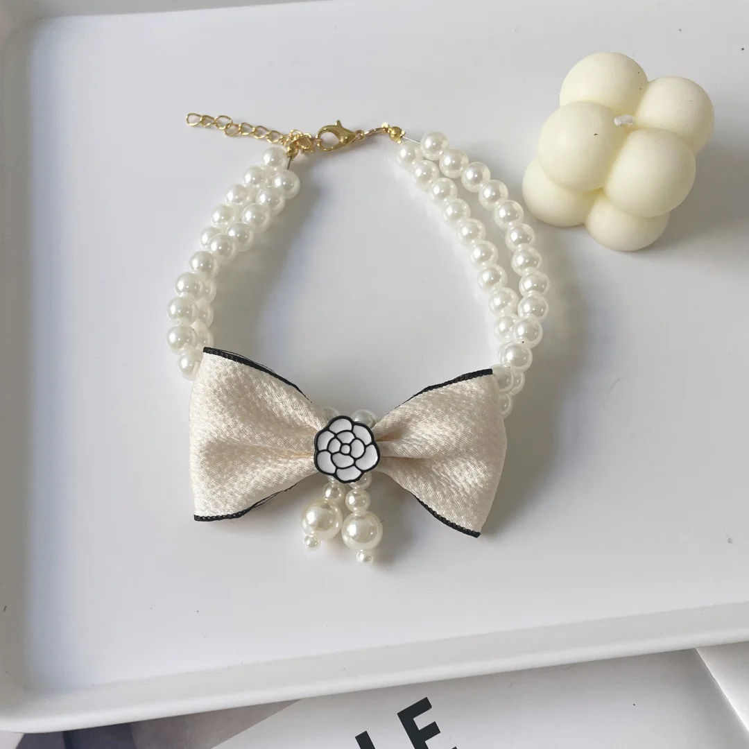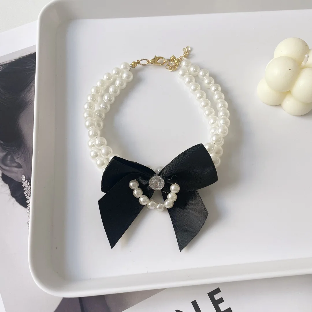 Collar de perlas de doble capa con lazo para mascotas, Collar de cuentas para perros y gatos, Collar de cadena para el cuello, accesorios para perros pequeños, accesorios para cachorros