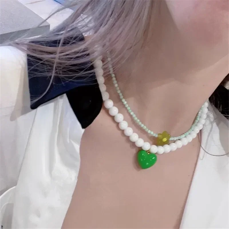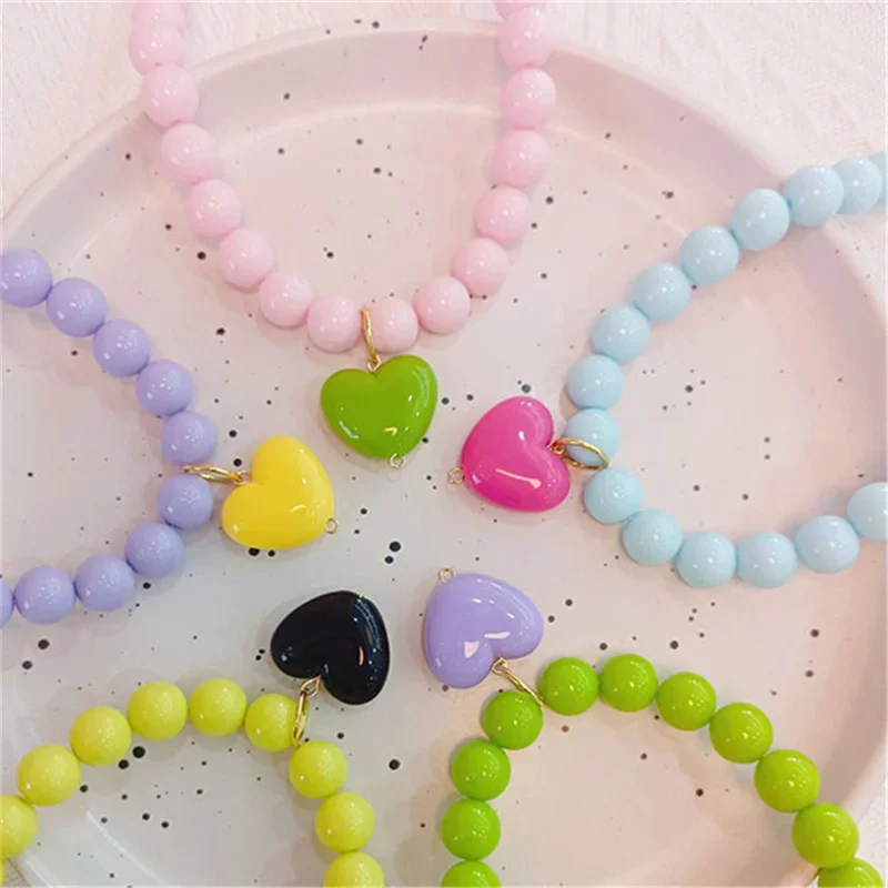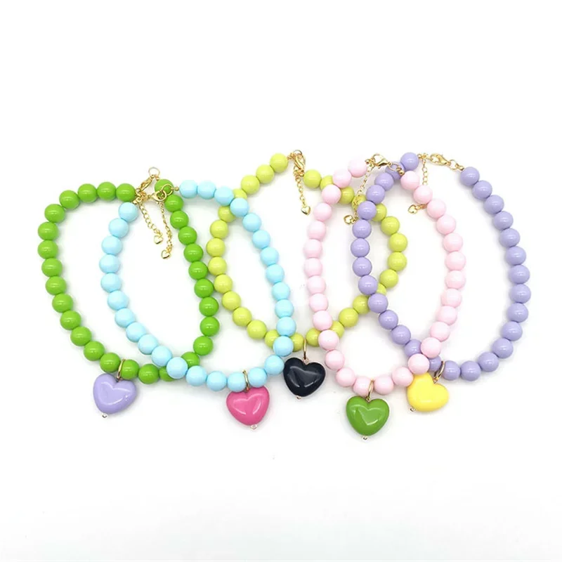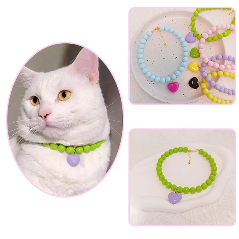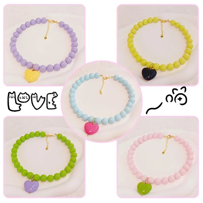 Collar de perlas de estilo coreano, colgante de corazón de melocotón, joyería para perros y gatos, Collar de corazón bonito, accesorios para cachorros, cadena de boda para mascotas, Chihuahua
