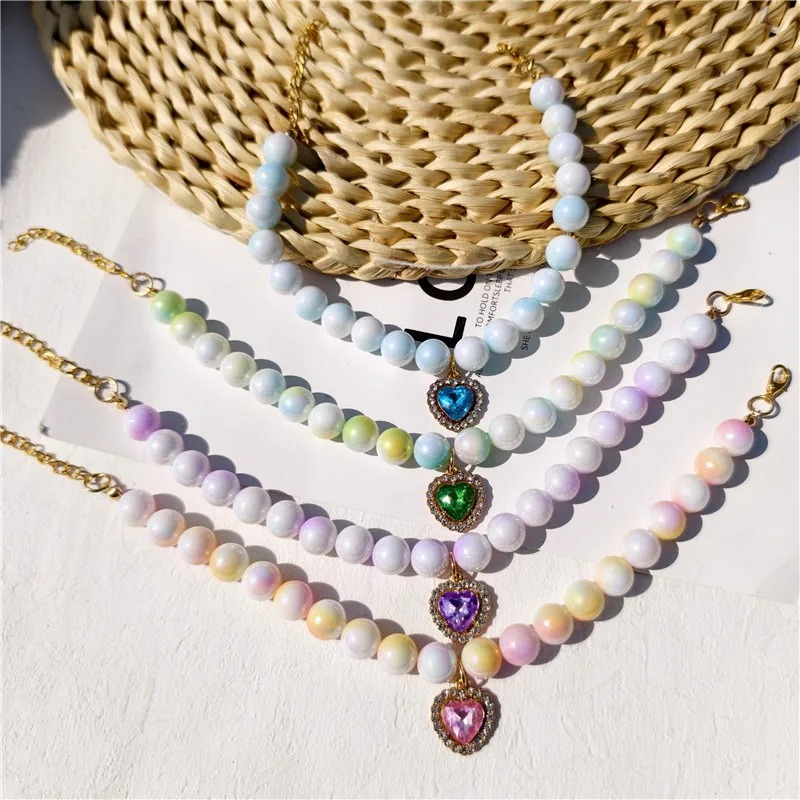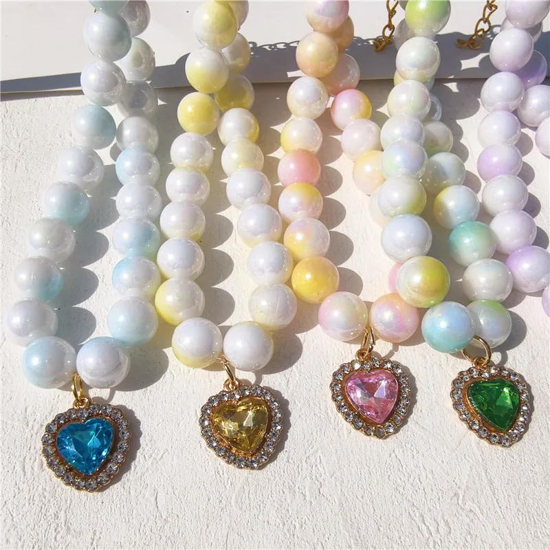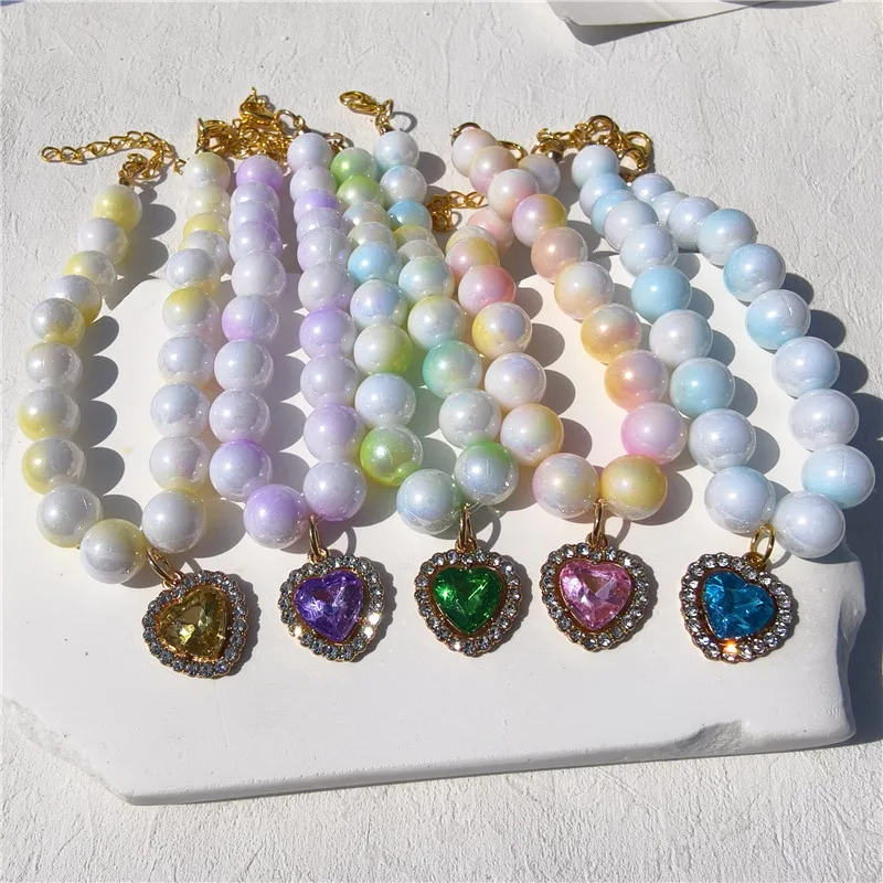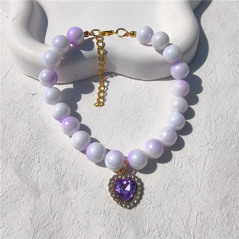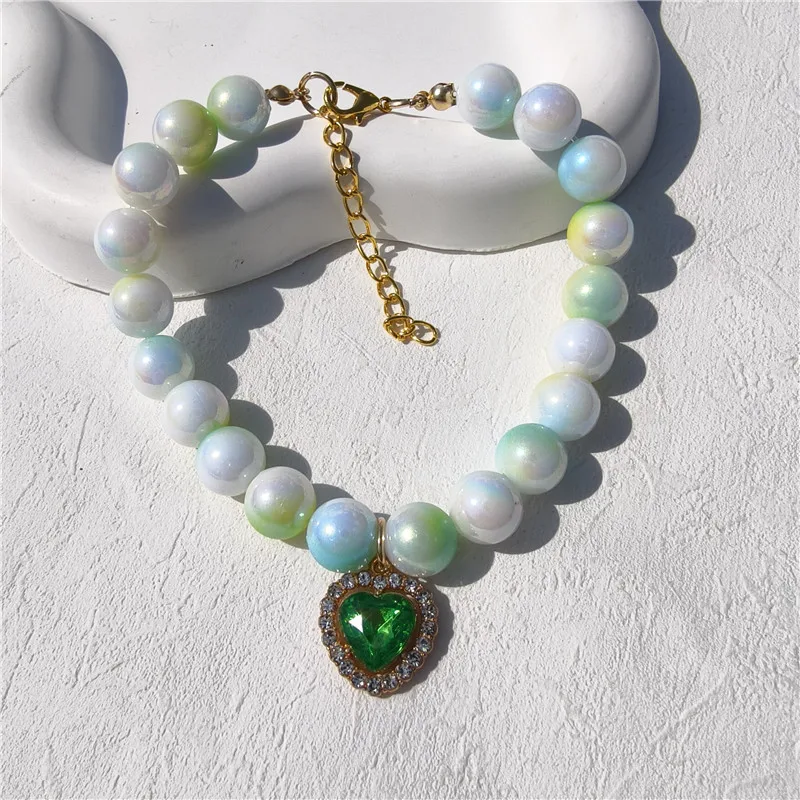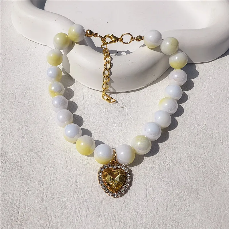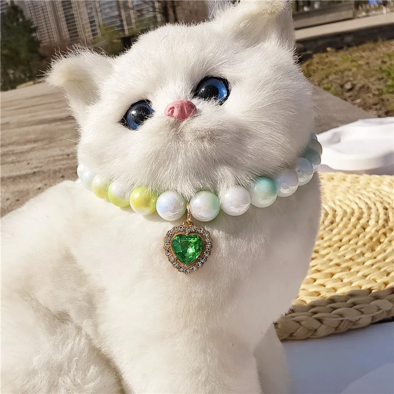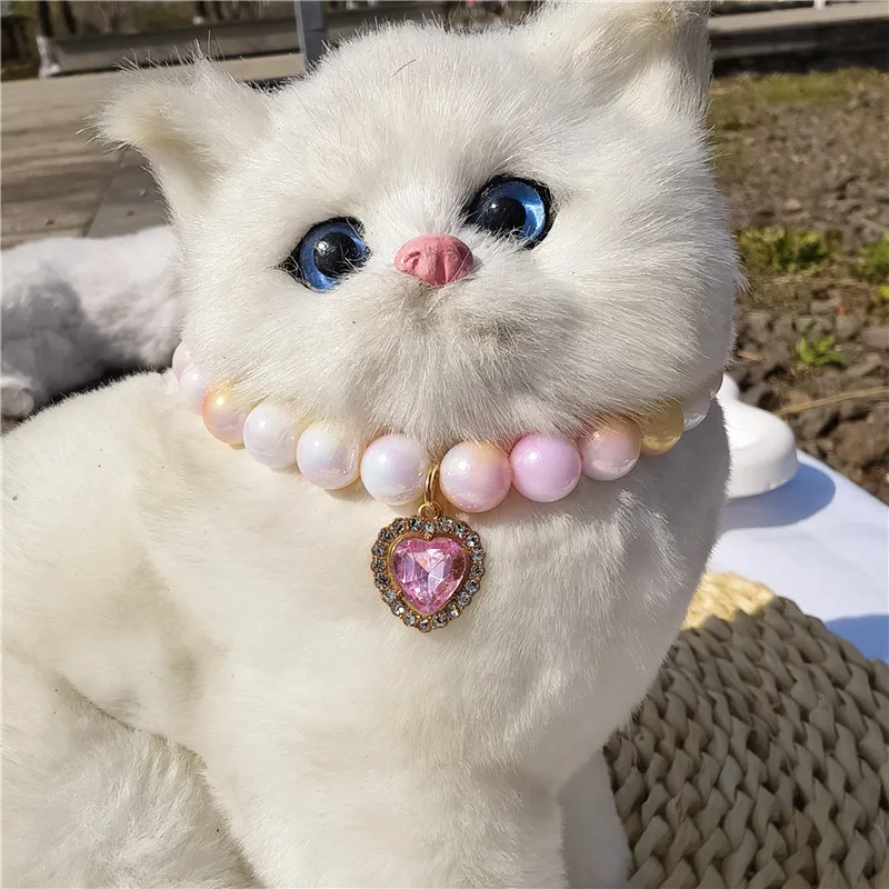 Collar de perlas para gato, colgante de corazón con diamantes de imitación ostentosos, Collar para perro mascota, cadena ajustable para el cuello de gato, accesorio de joyería para mascotas