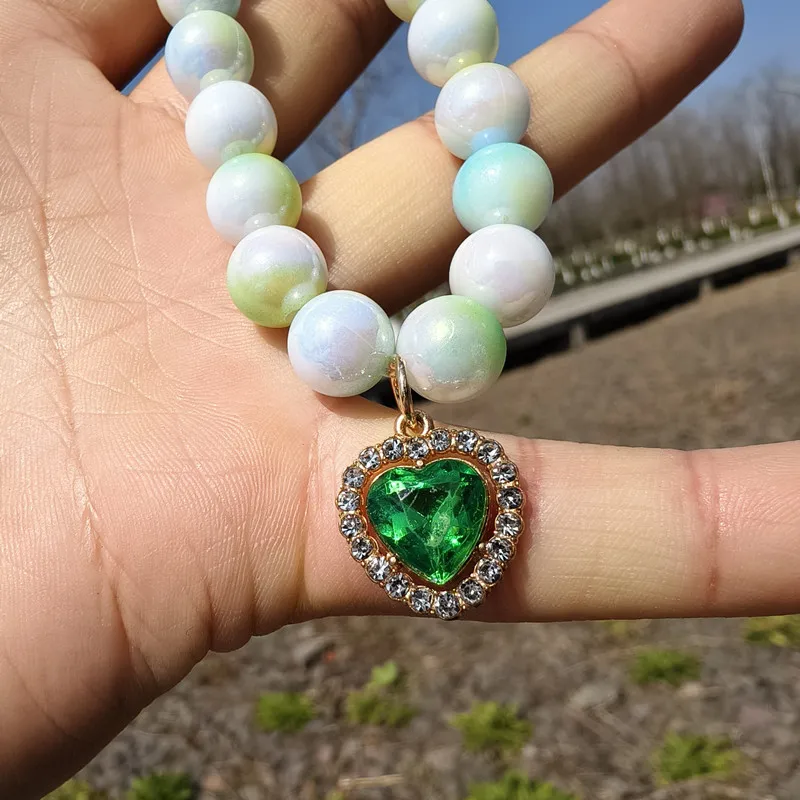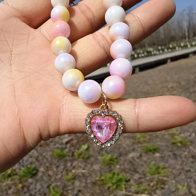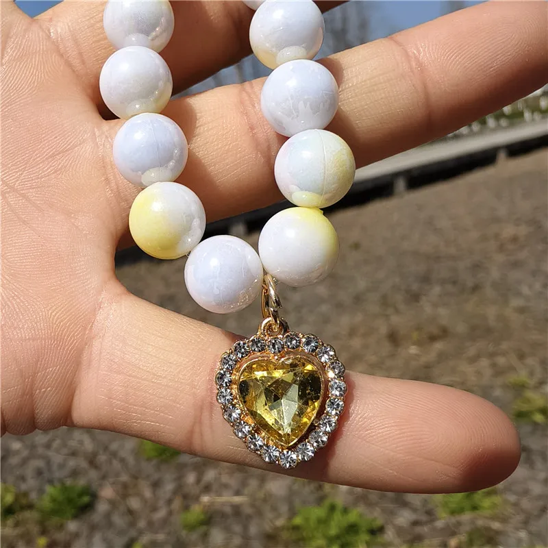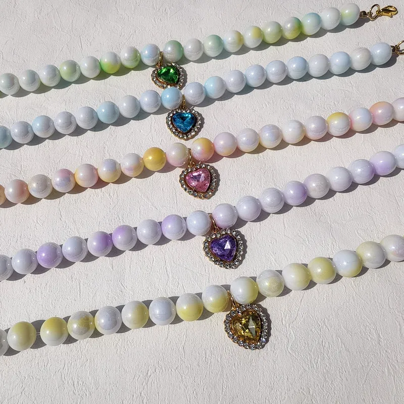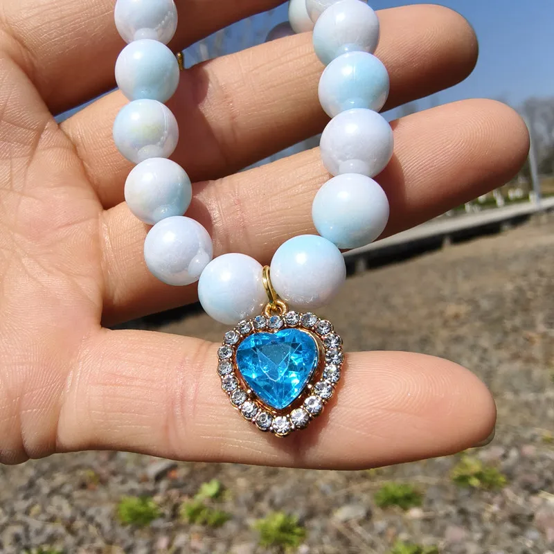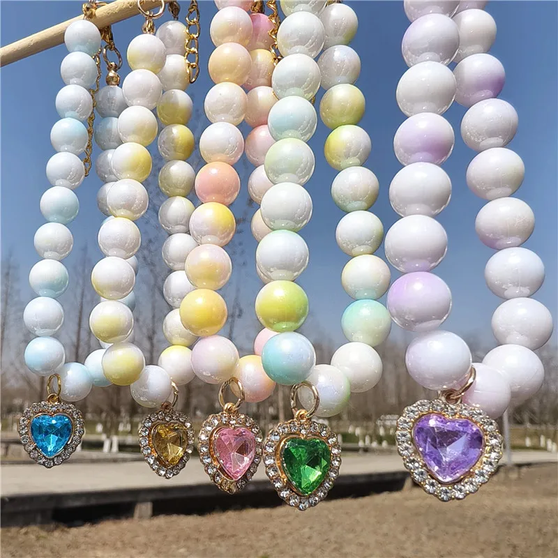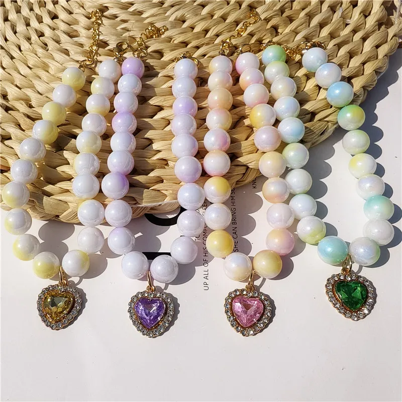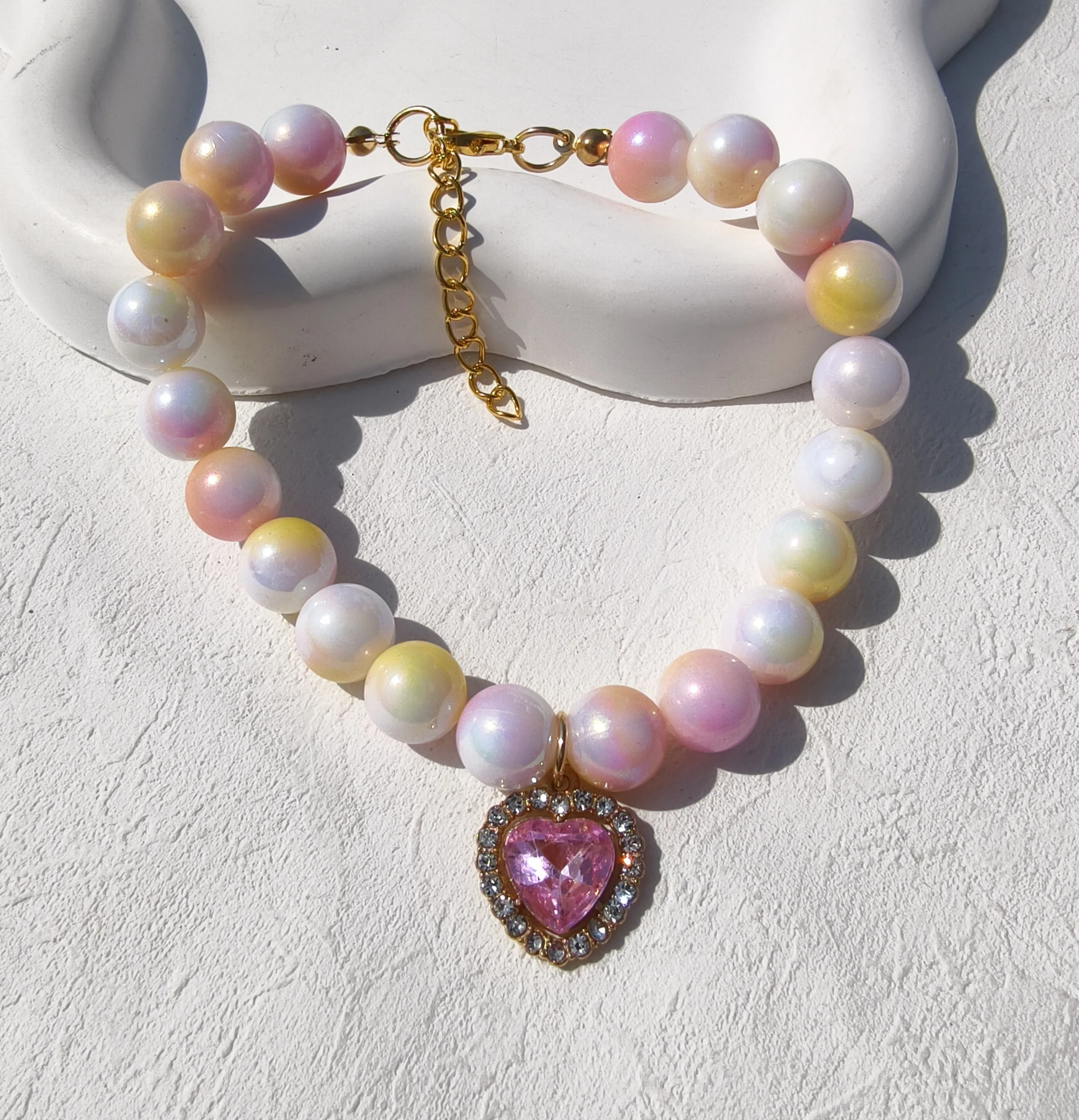 Collar de perlas para gato, colgante de corazón con diamantes de imitación ostentosos, Collar para perro mascota, cadena ajustable para el cuello de gato, accesorio de joyería para mascotas