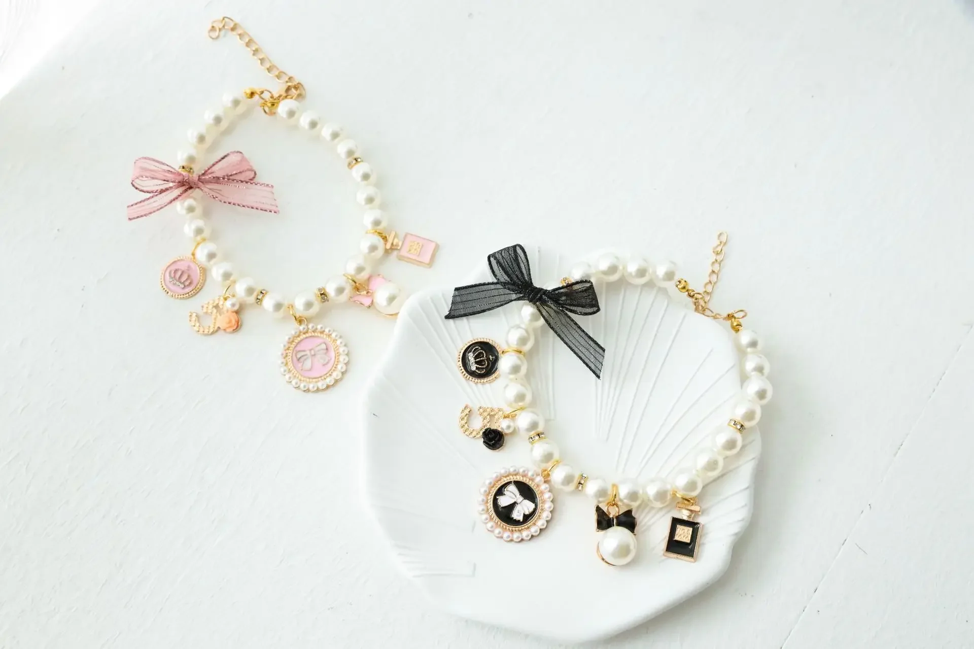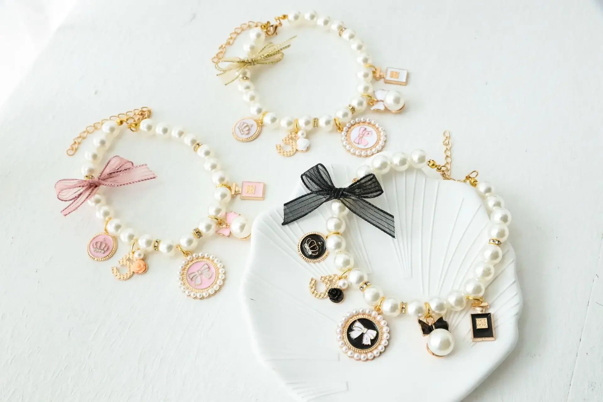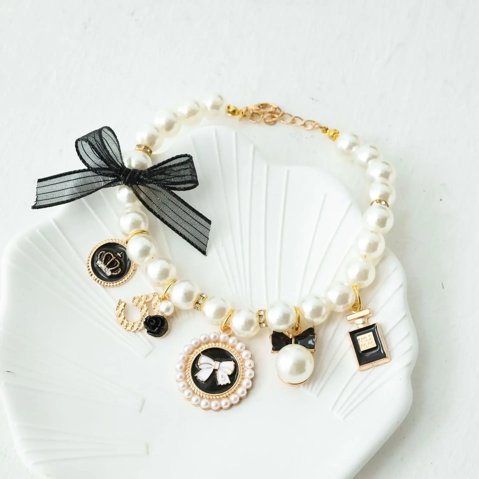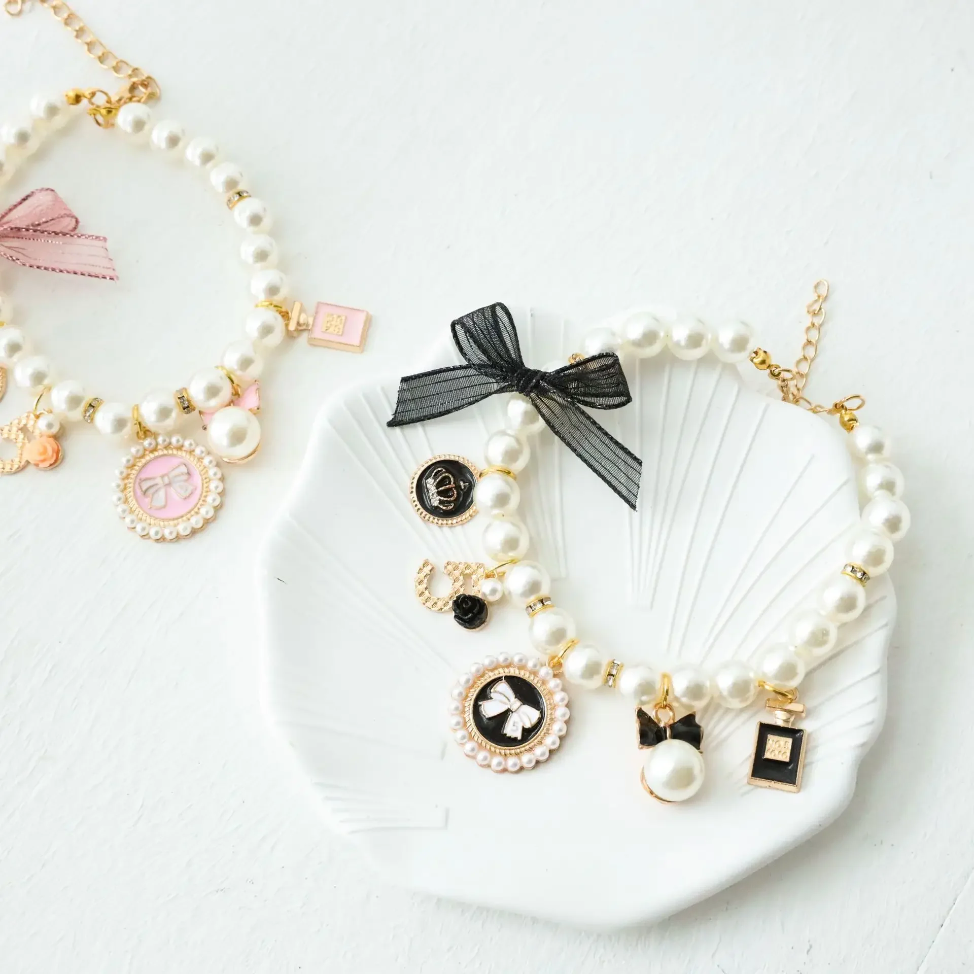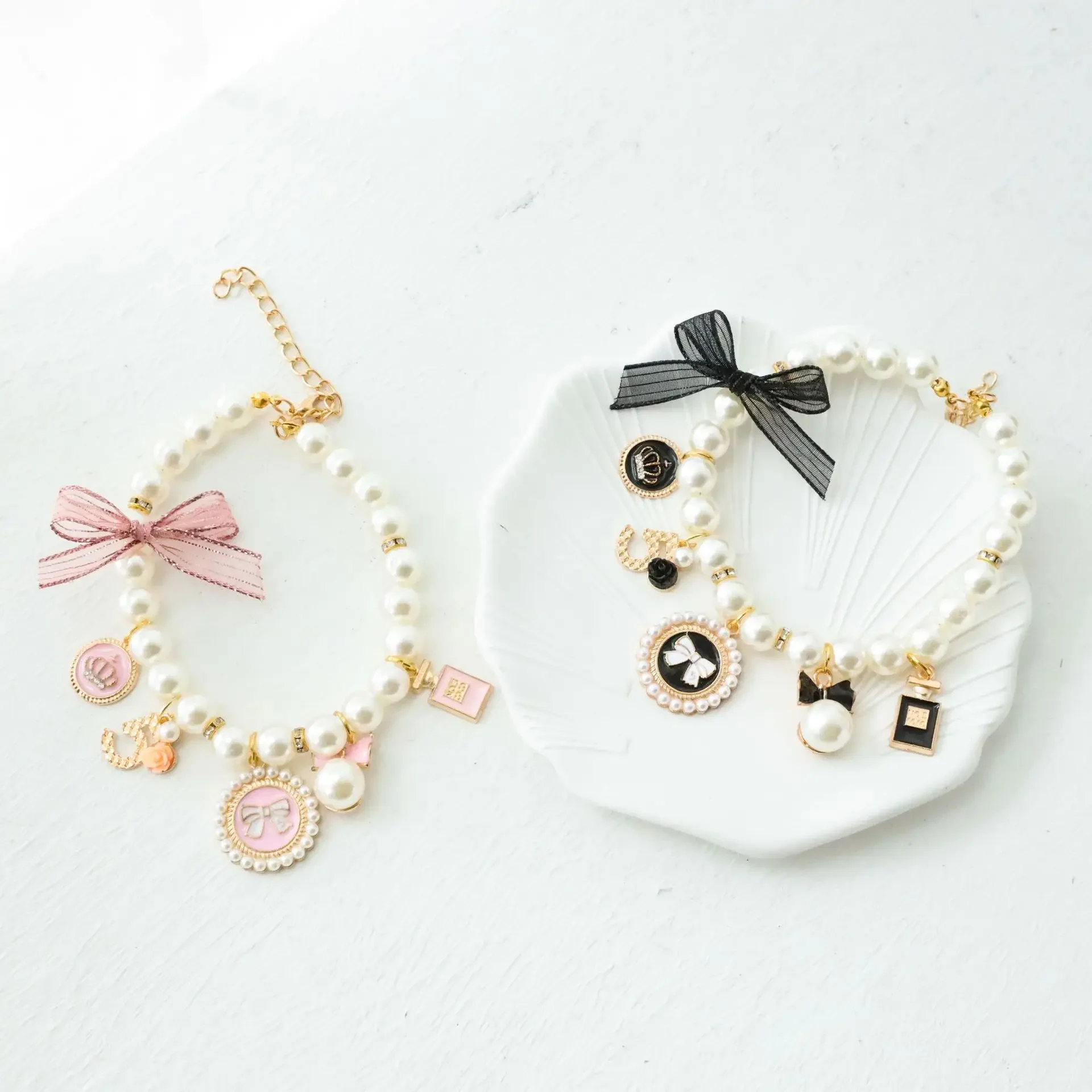 Collar de perlas con lazo para mascota, colgante de joyería para gato, Collar de princesa para perro, decoraciones dulces para cachorro, Collar de diamantes de imitación, Accesorios para Chihuahua
