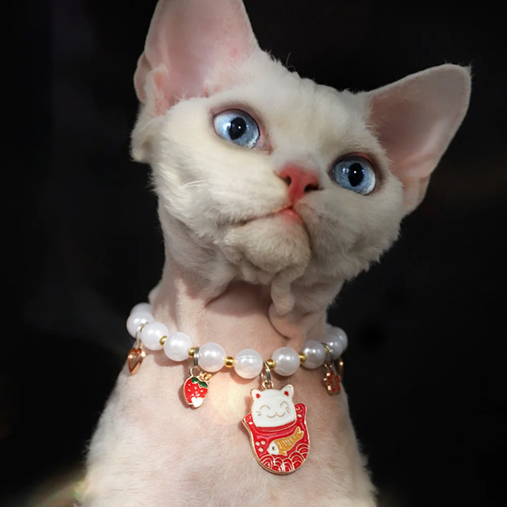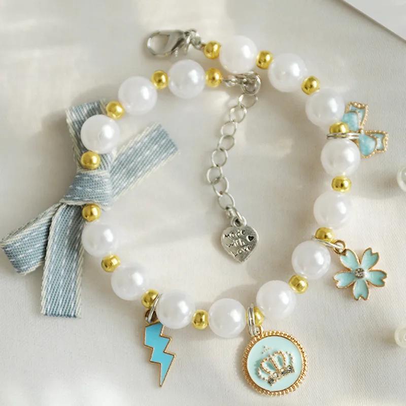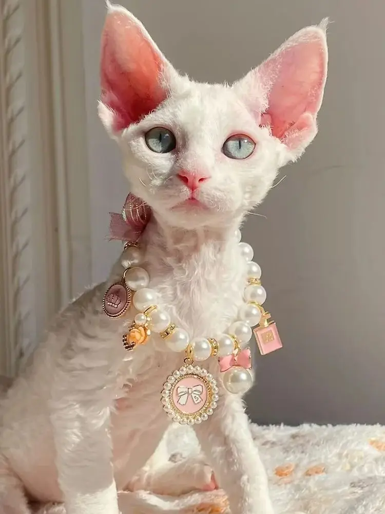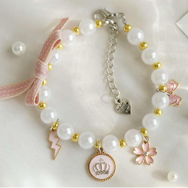 2. Material de calidadEstos collares de perlas para mascotas están hechos de perlas de imitación, diamantes de imitación y metal de calidad, que son duraderos para que sirva durante mucho tiempo;