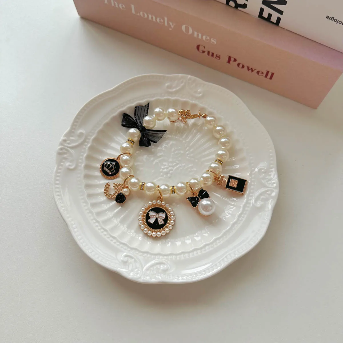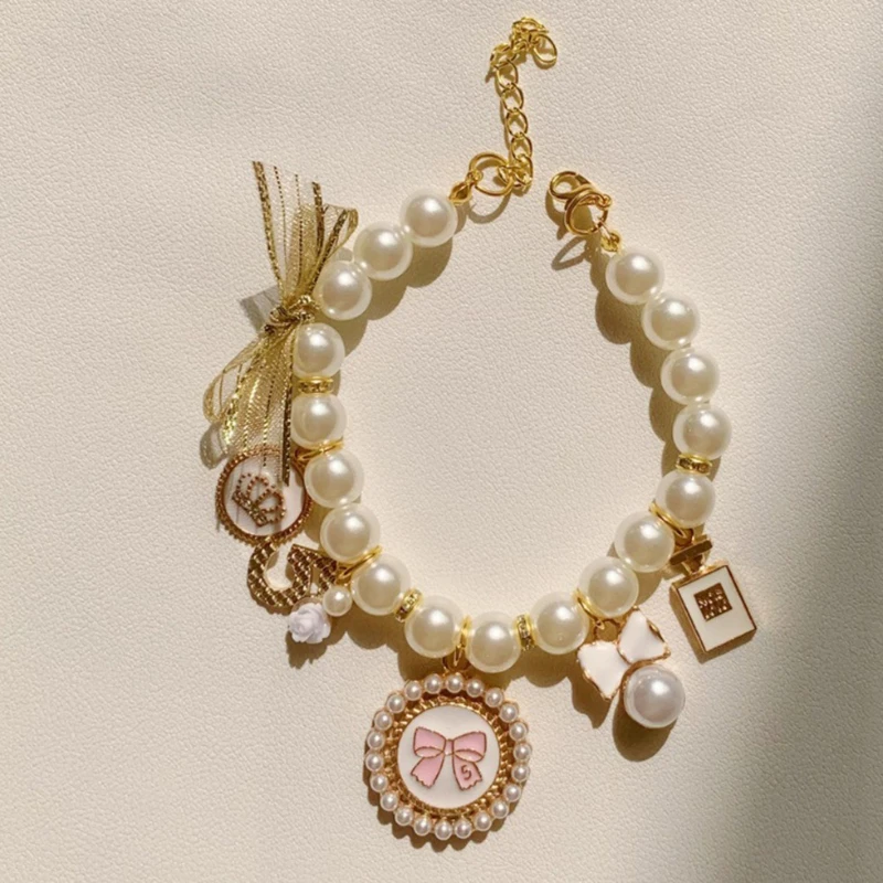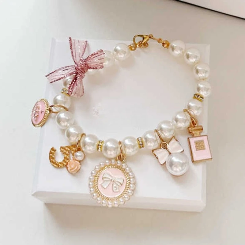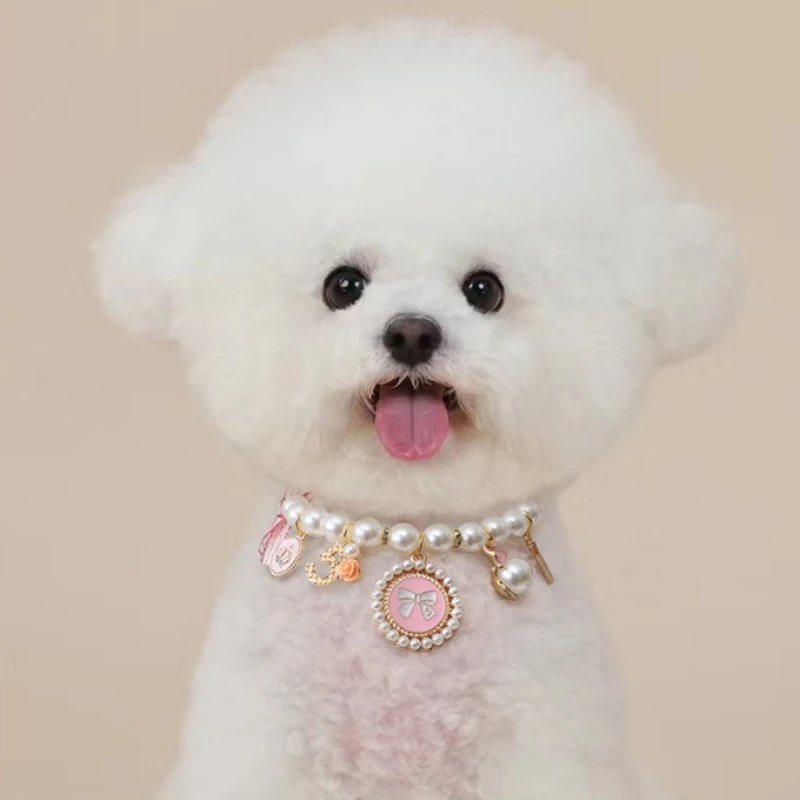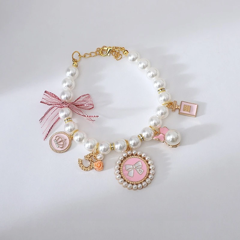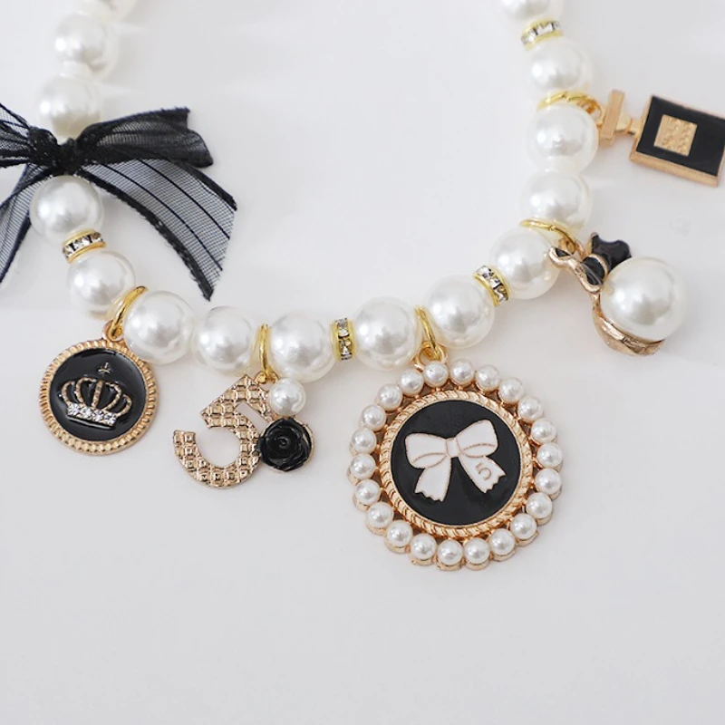 Collar para mascotas con perlas y lazo: collar de diamantes de imitación de princesa ajustable para gatos, perros y razas pequeñas