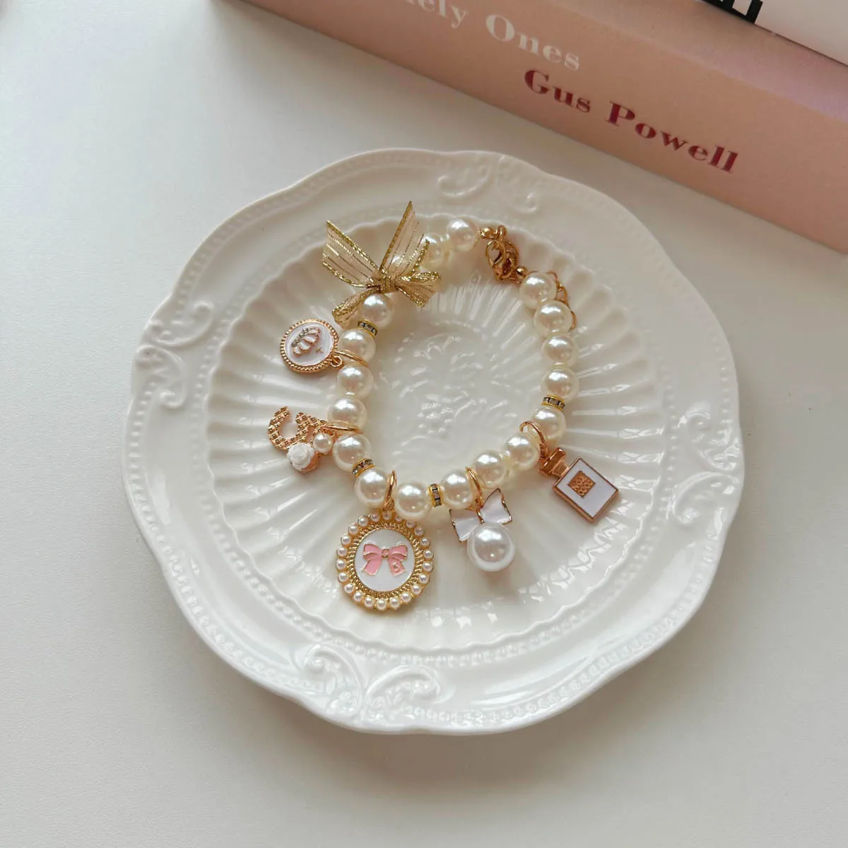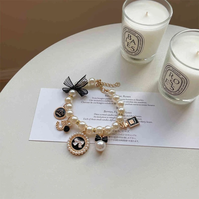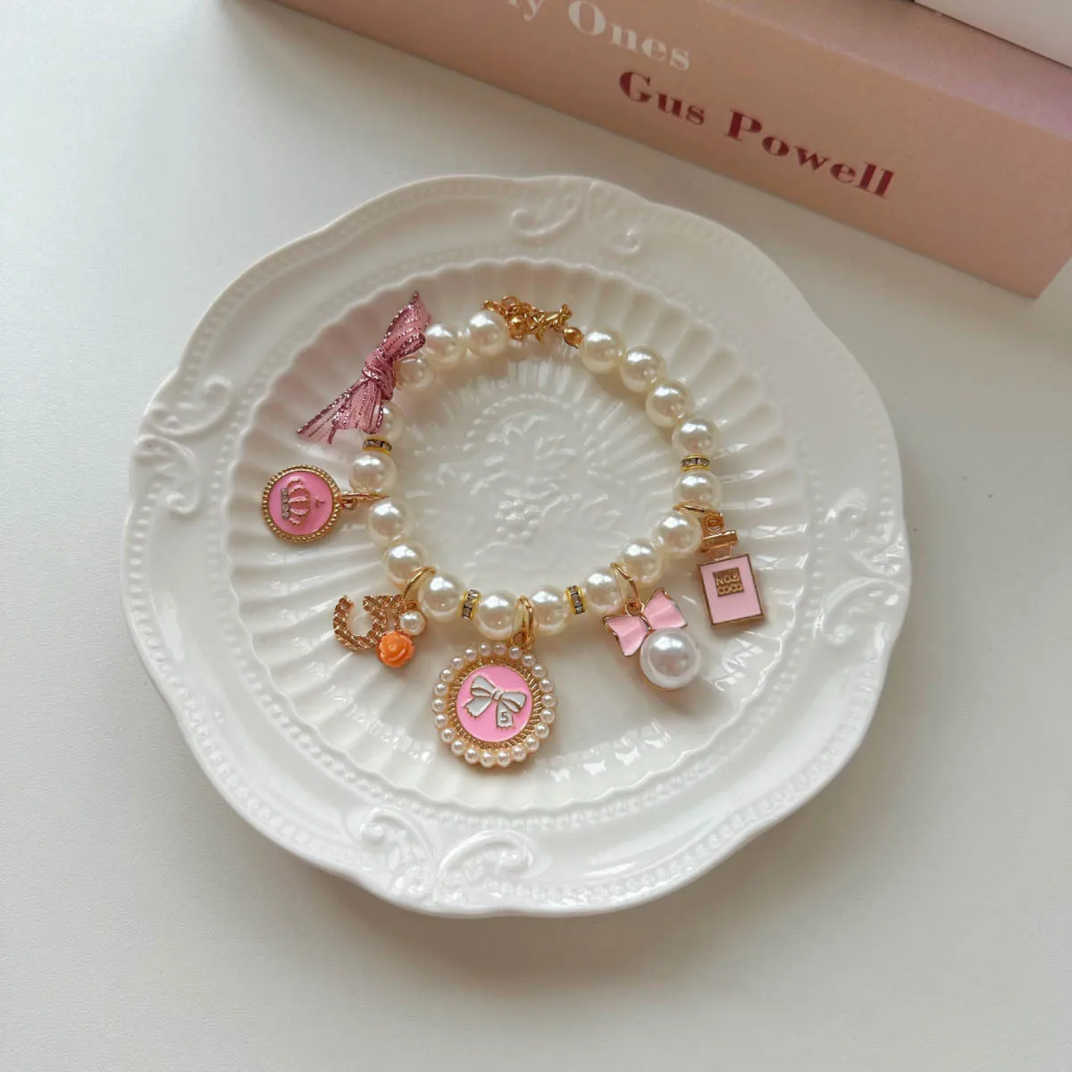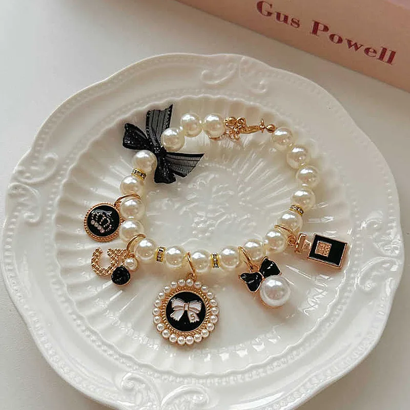 Collar para mascotas con perlas y lazo: collar de diamantes de imitación de princesa ajustable para gatos, perros y razas pequeñas