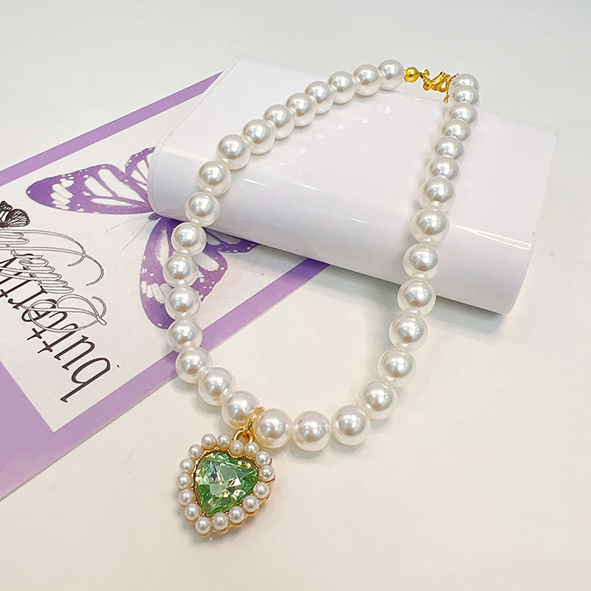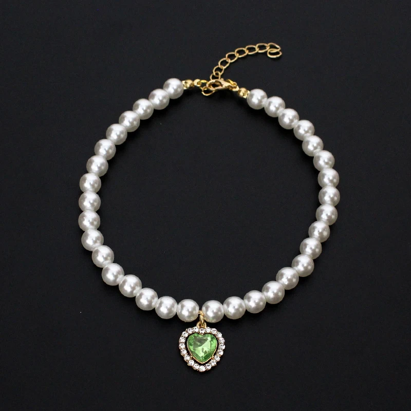 Collar de perlas de lujo para mascotas, Collar para perros y gatos, colgante de amor, suministros para mascotas, Collar de cristal de amor, Collar para gatitos, Collar para gatos