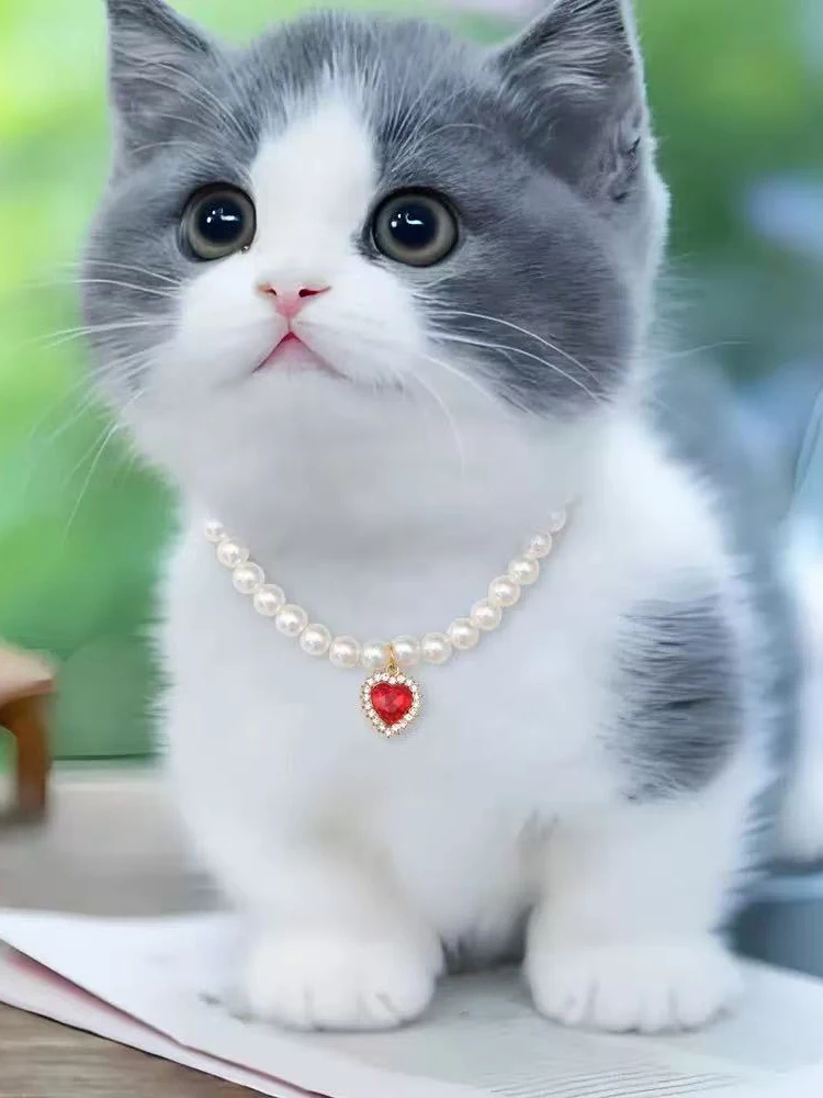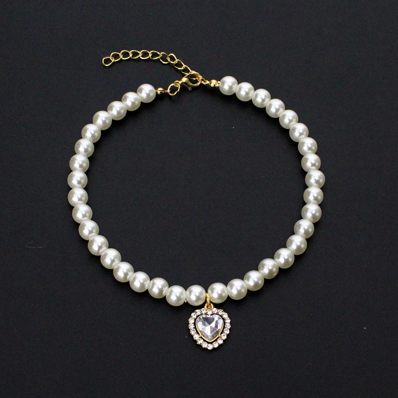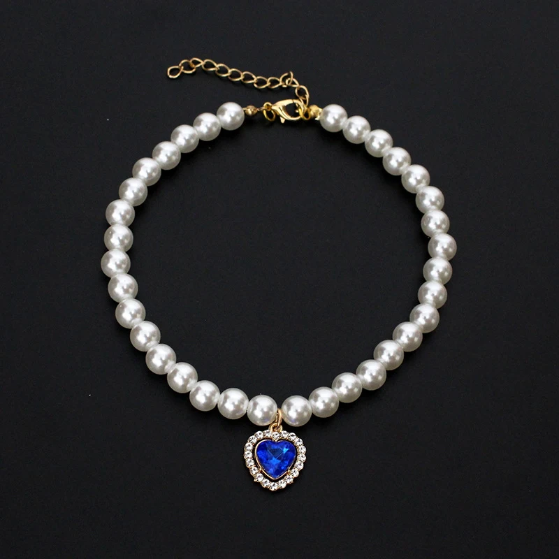 Collar de lujo con perlas para mascotas, Collar para perros y gatos, colgante de amor, suministros para mascotas, Collar de cristal de amor, Collar para gatito, Collar para gatos