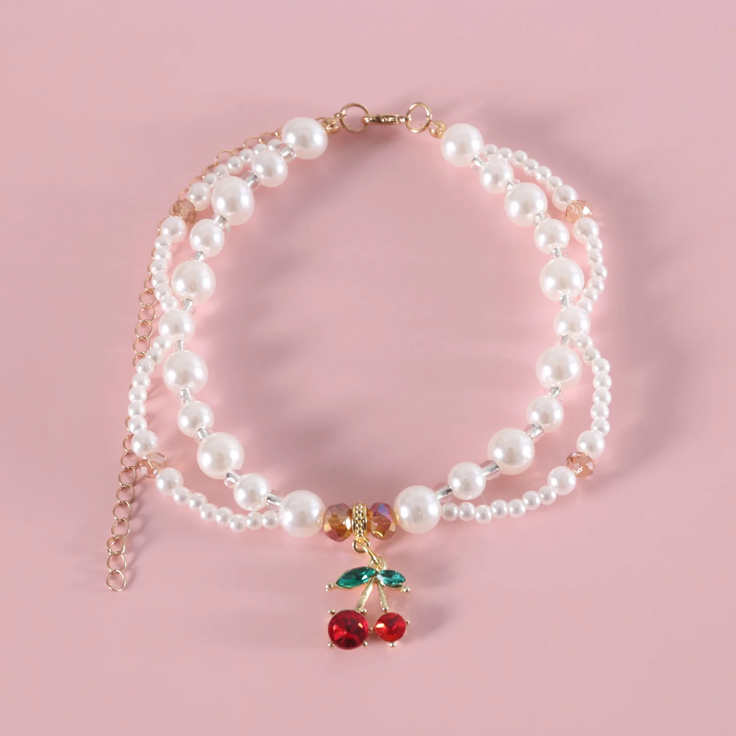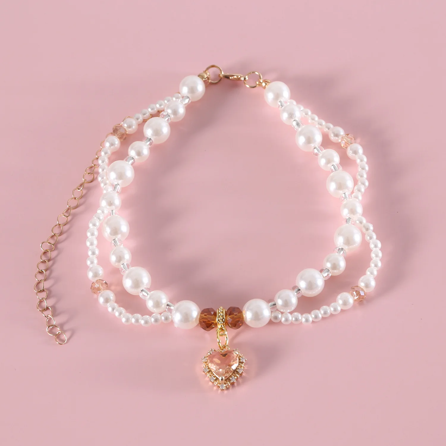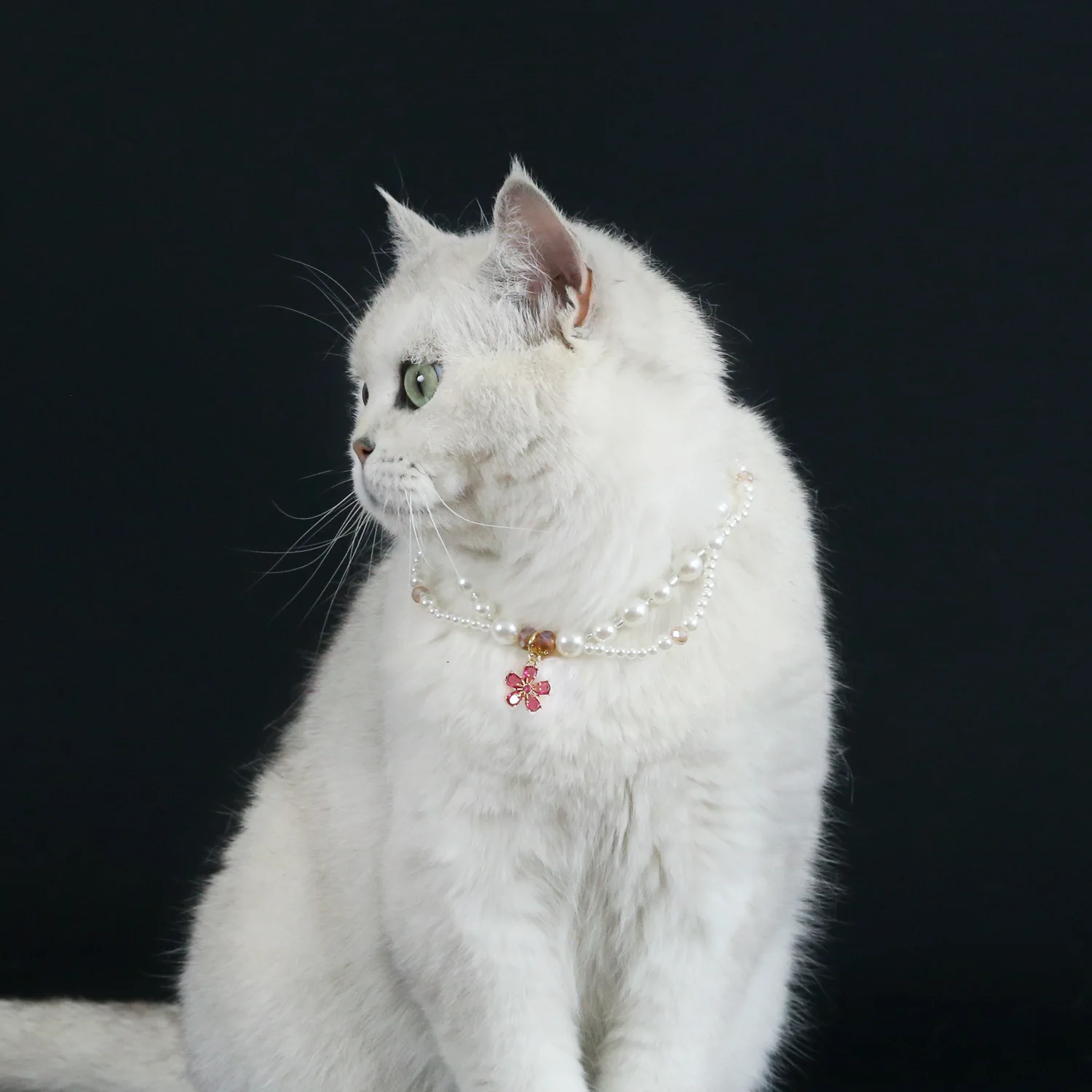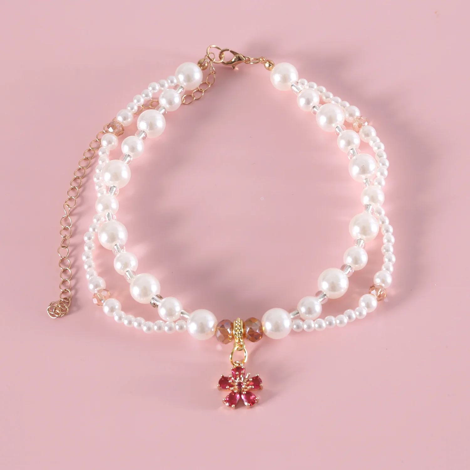 Collar de perlas para mascotas, bufanda con colgante de cereza y flor en forma de corazón, babero de princesa para cachorros y gatos, accesorios para cachorros