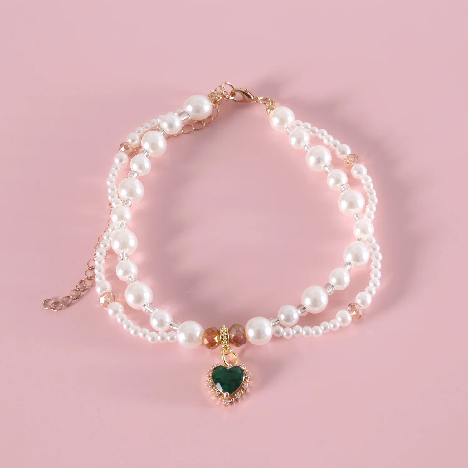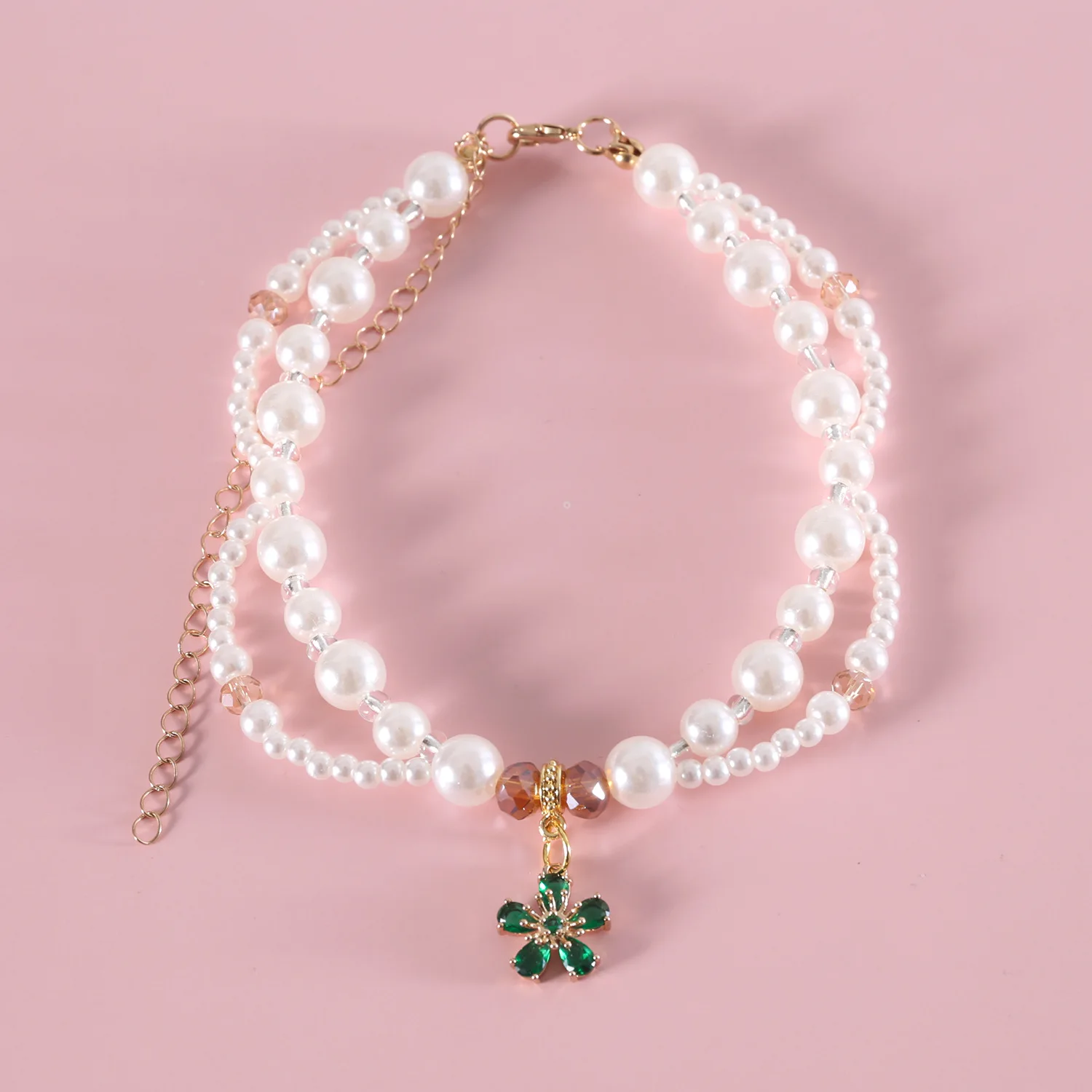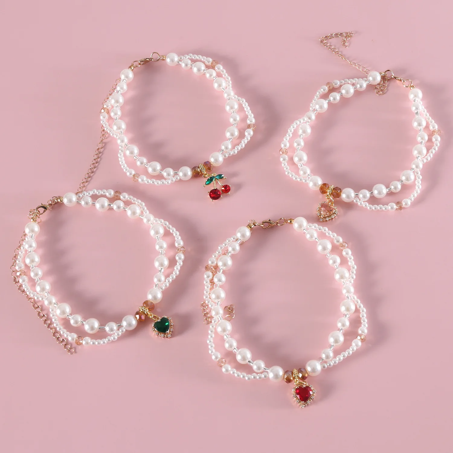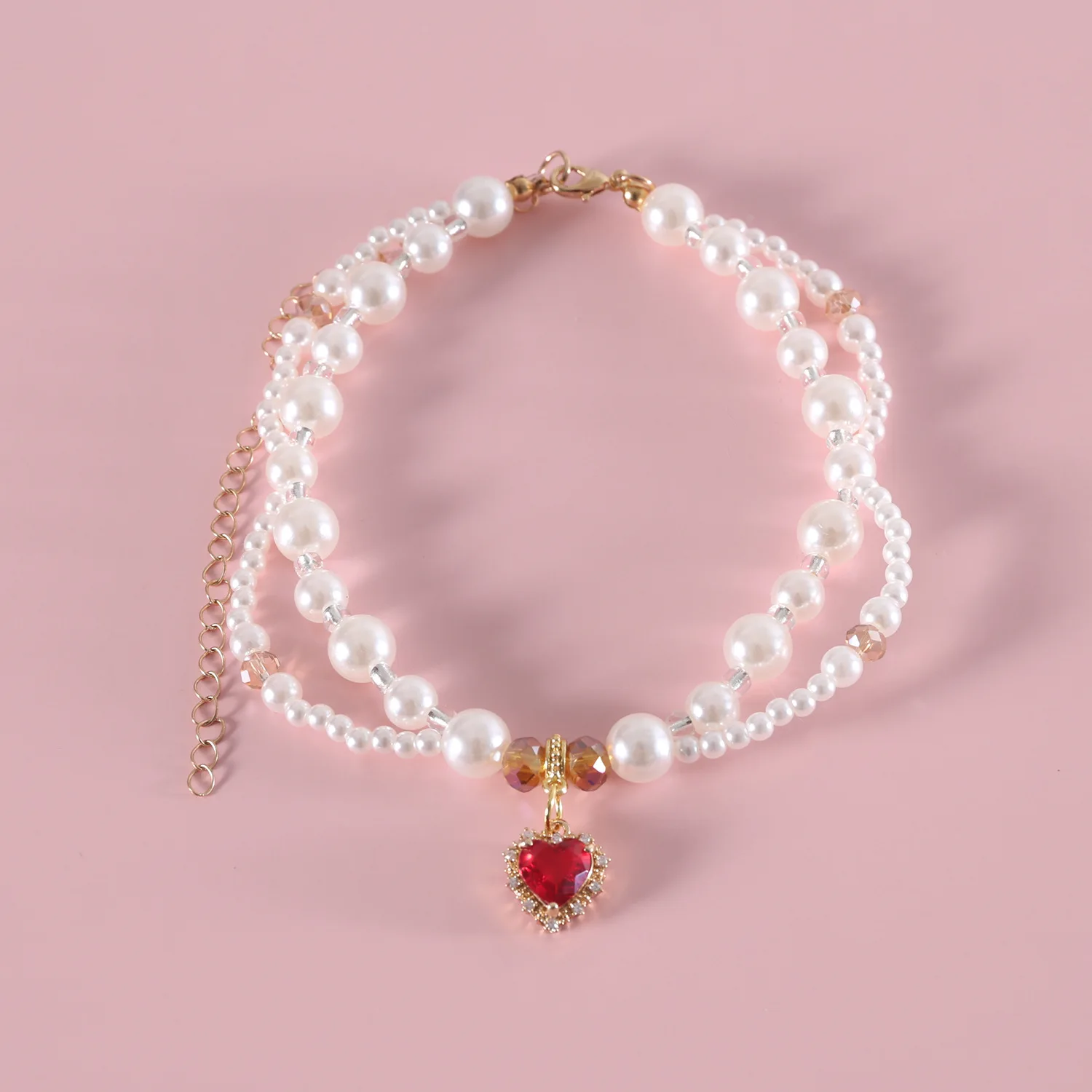 Collar de perlas para mascotas, bufanda con colgante de cereza y flor en forma de corazón, babero de princesa para cachorros y gatos, accesorios para cachorros