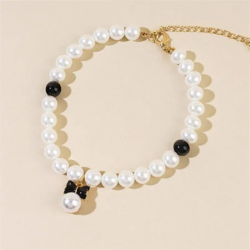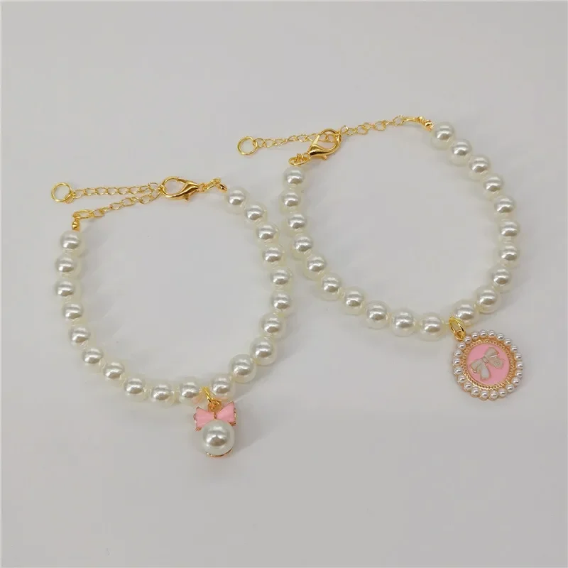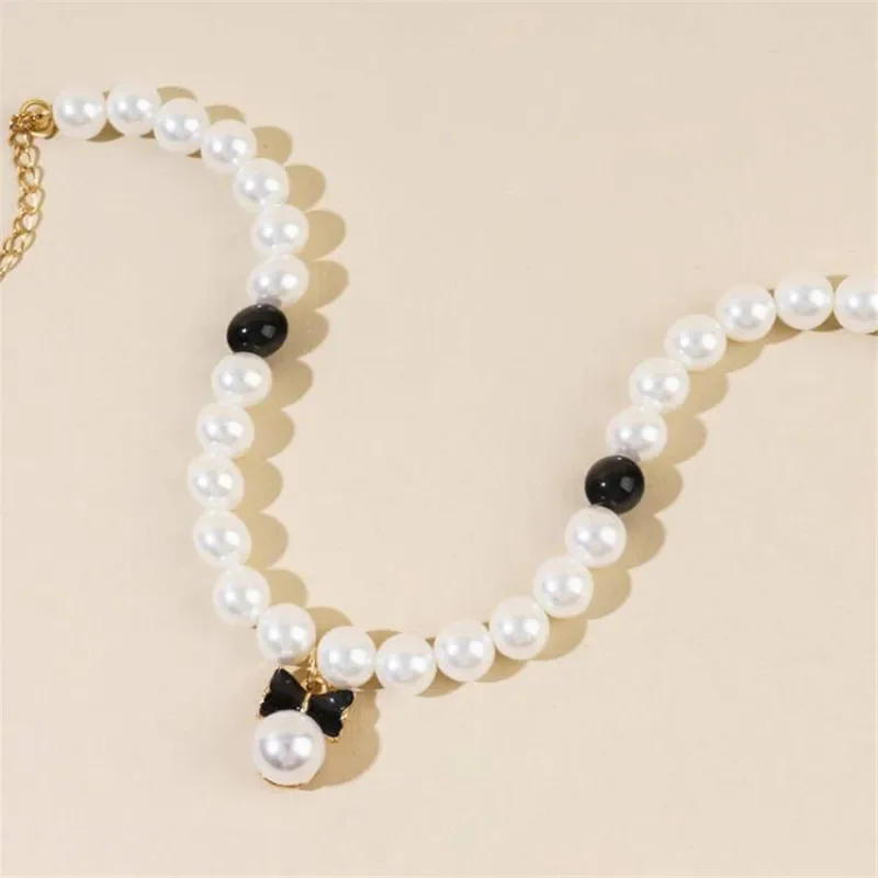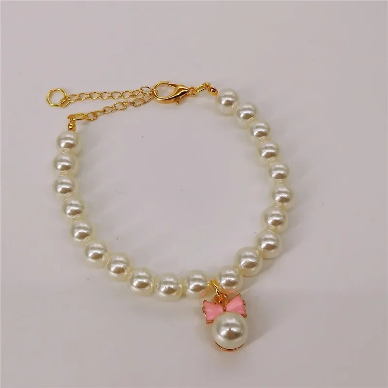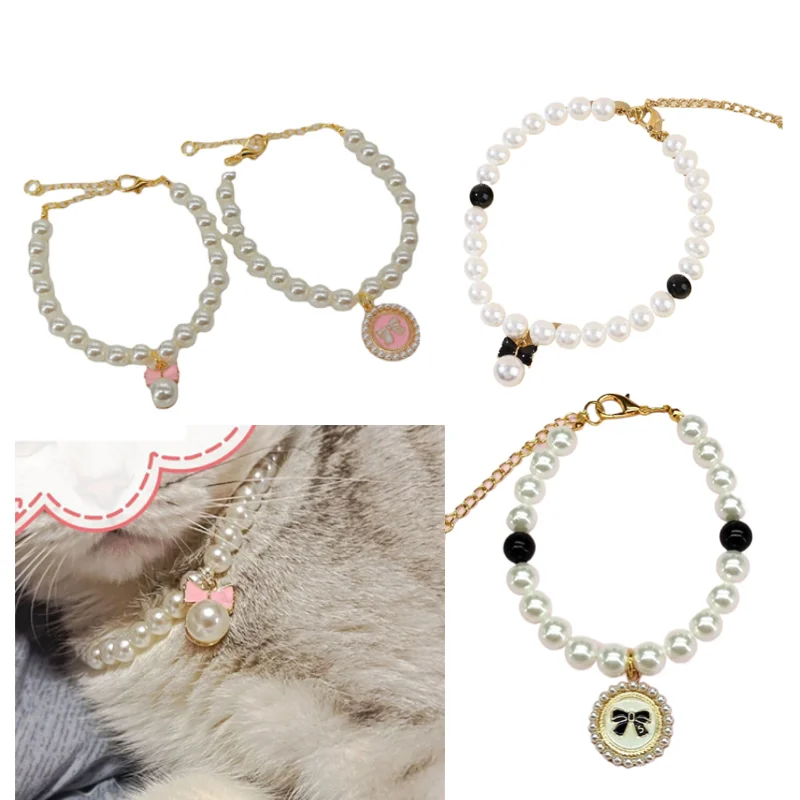 Collar de perlas para mascotas, Collar de lazo de princesa para perros, Collar de joyería para gatos, accesorios para cachorros, cadena para perros, Chihuahua, cosas de joyería de boda