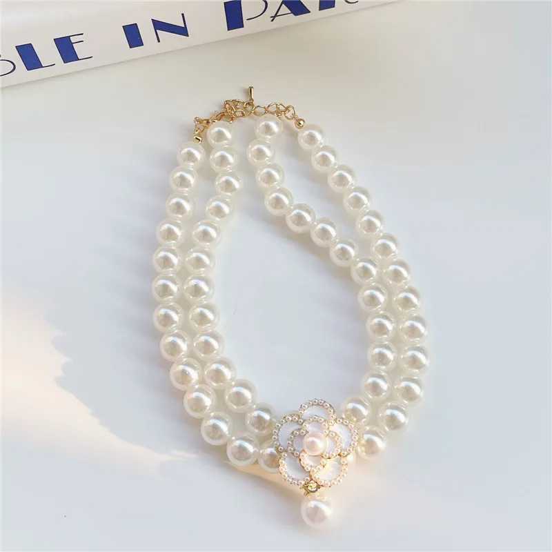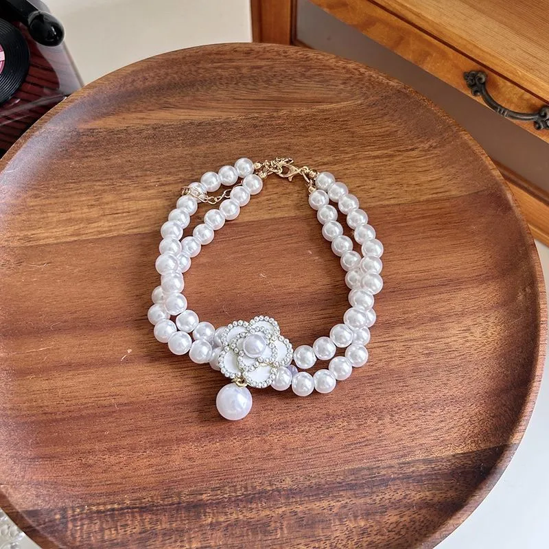 Collar de perlas para perro de gama alta, babero, muñeca, Collar decorativo para gato maltés y perro, bufandas para mascotas, corbata, accesorio para mascotas