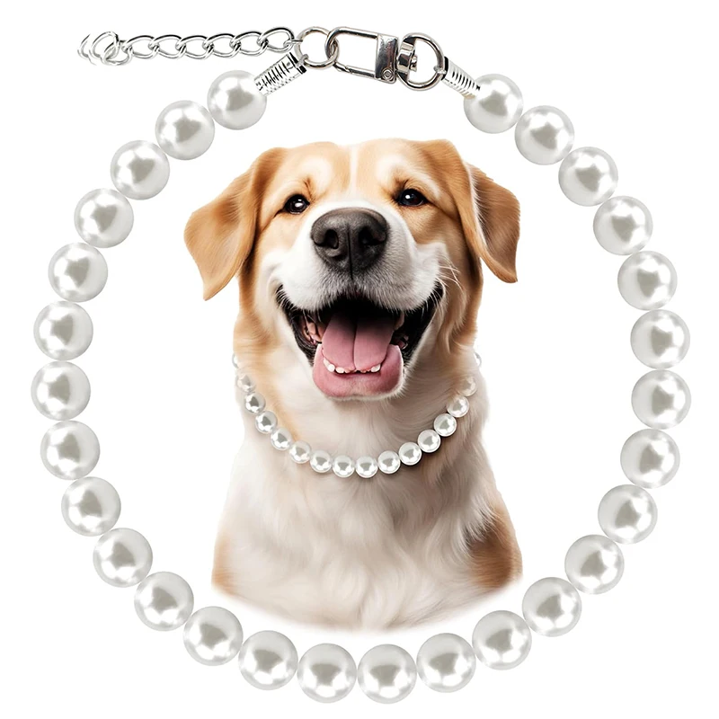Collar de perlas para perros de 12-22 pulgadas, Collar de perlas ajustable y elegante para mascotas, accesorios para collares de joyería para perros pequeños, medianos y grandes