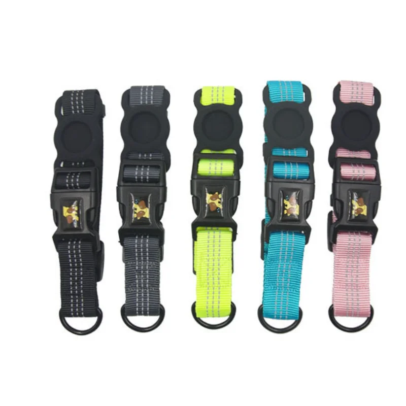 Collar de perro a la moda con funda Apple Airtag, Collar de nailon para mascotas, Collar de seguimiento antipérdida suave reflectante, suministros para perros, traje para perros
