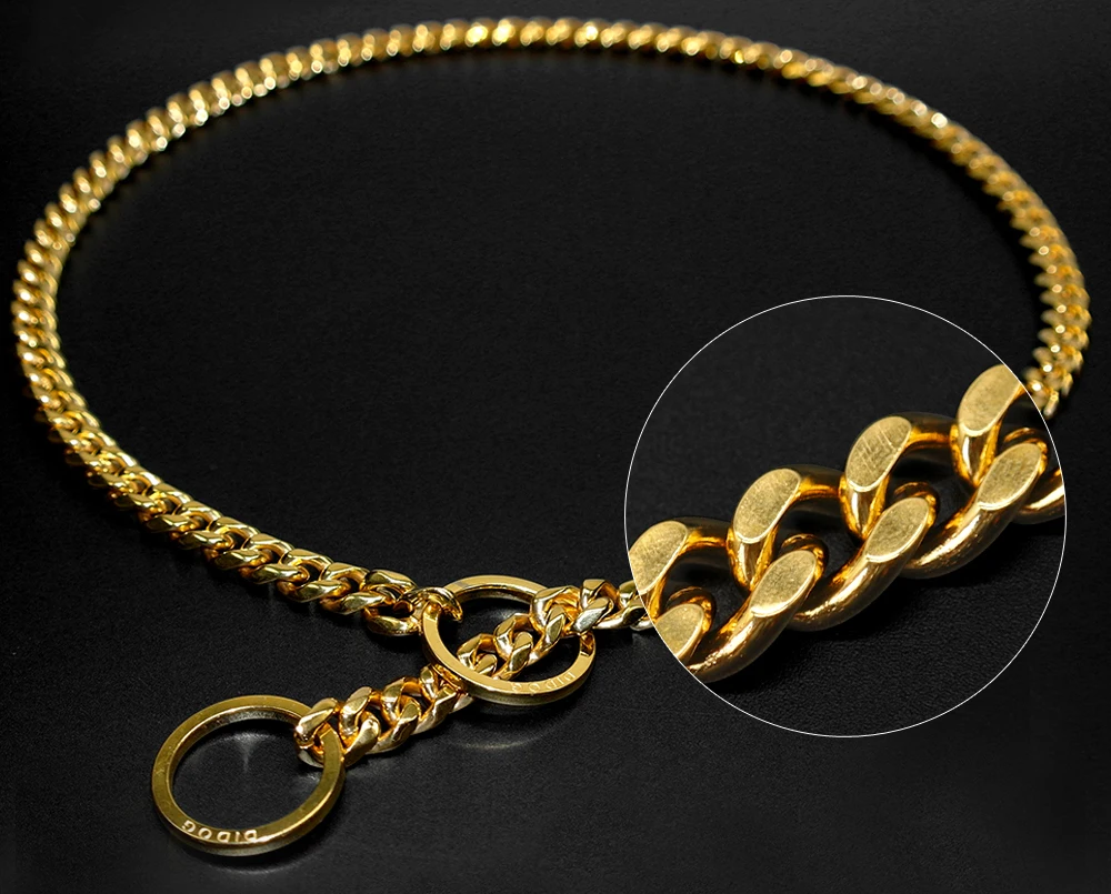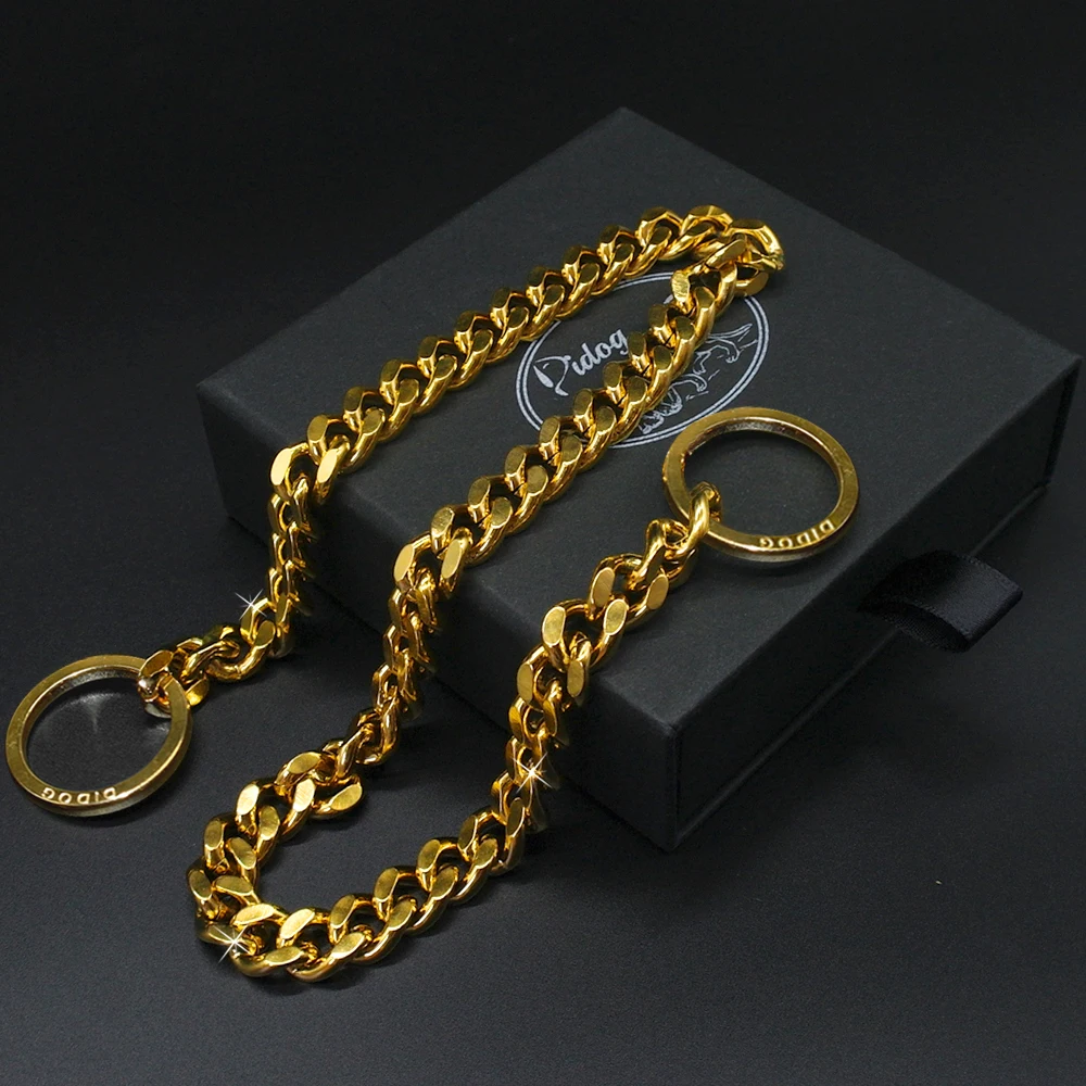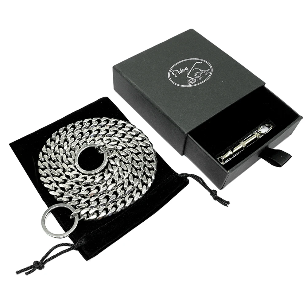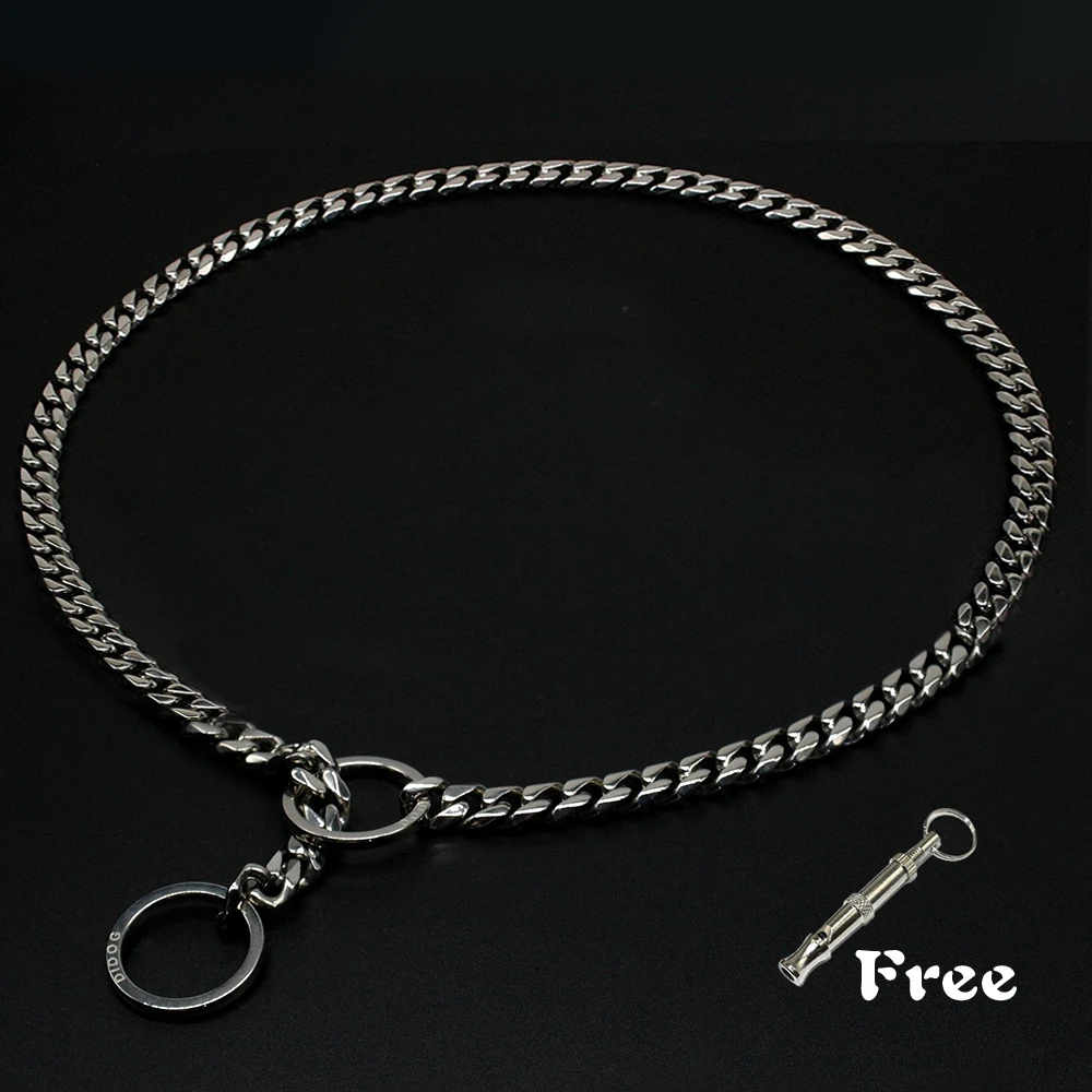 Tipo: Collar de acero inoxidable para perros, Collar de entrenamiento antideslizante para perros, collares de estrangulación de Chian para mascotas con silbato gratis, plata y oro para Pitbull Dubin