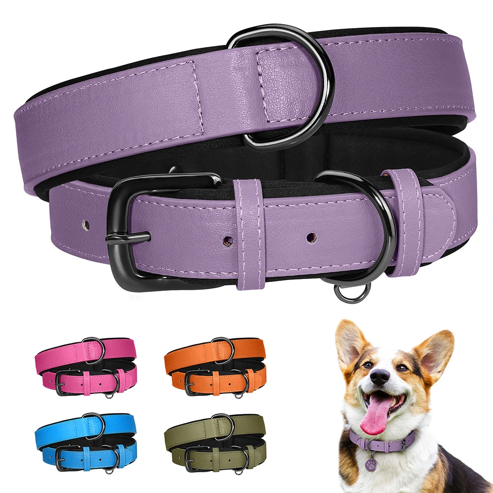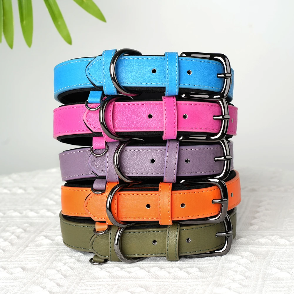 Collar de perro acolchado suave, collares de cuero PU para perros, collar duradero para mascotas, ajustable para perros pequeños y medianos, carlin 20225, nuevos colores de moda