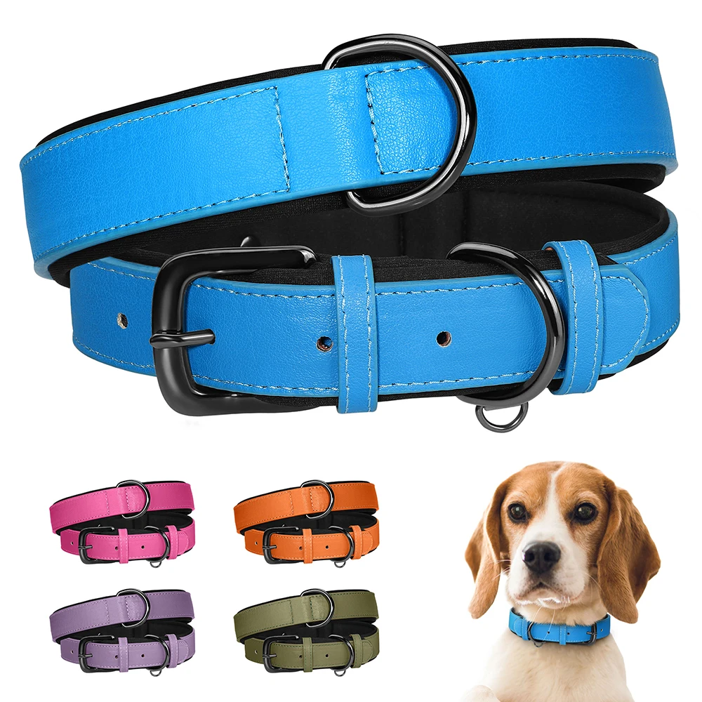 Collar de perro acolchado suave, collares para perros grandes acolchados de cuero PU, ajustables para perros pequeños, medianos y grandes, Collar Beagle Pitbull Bulldog
