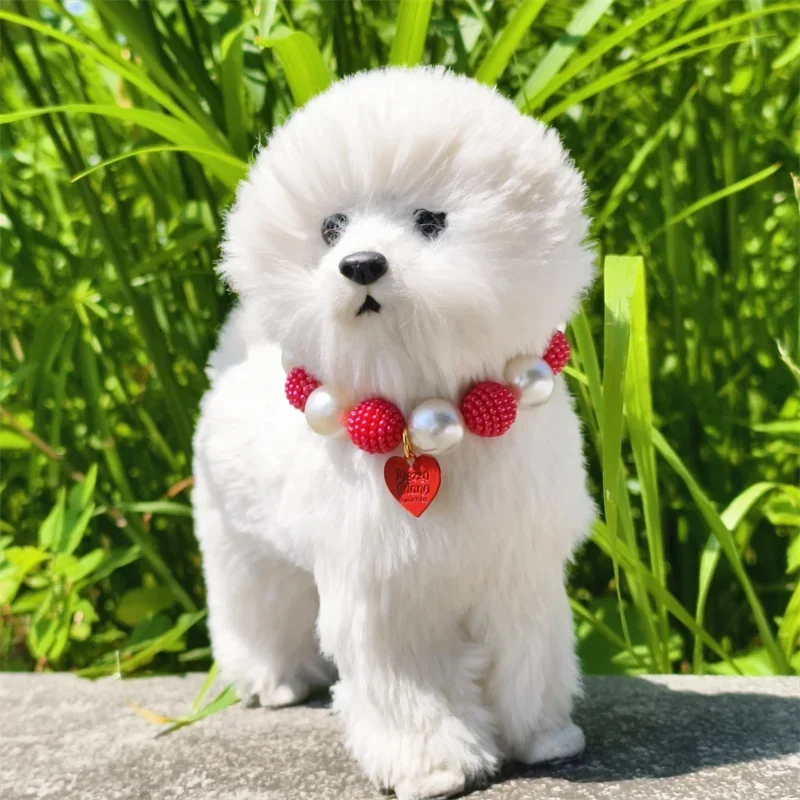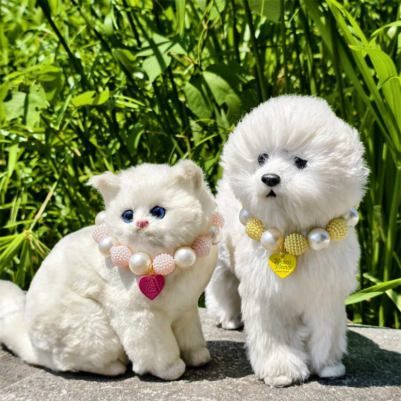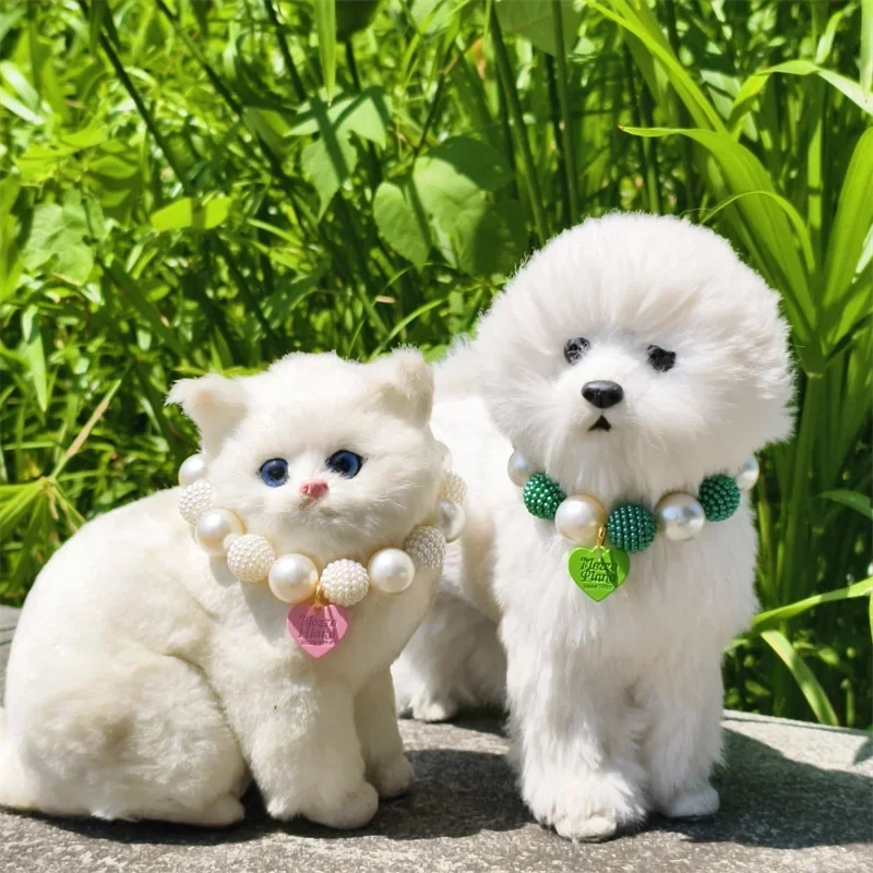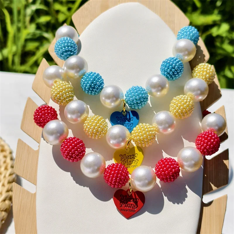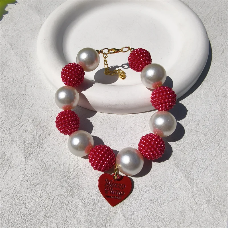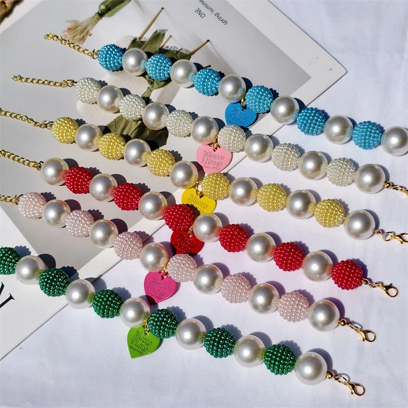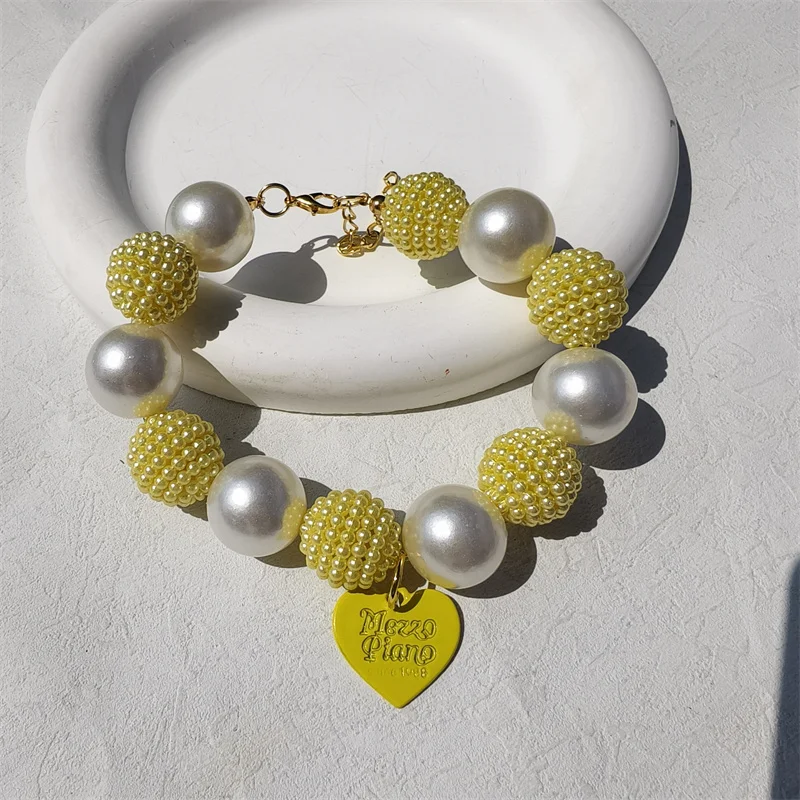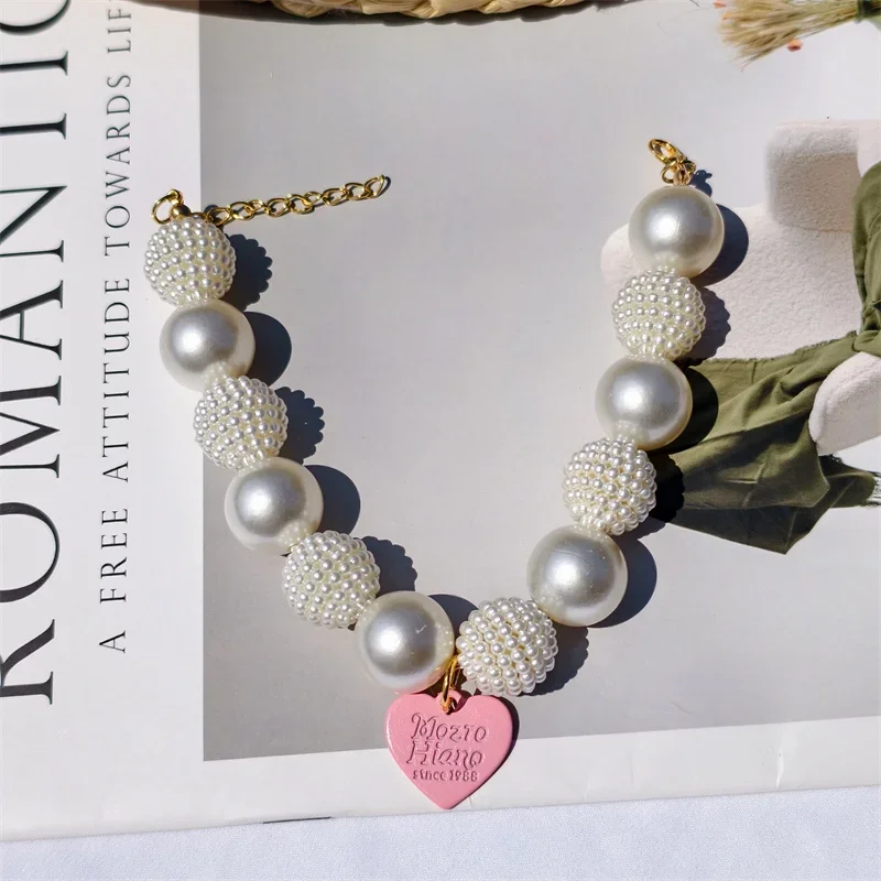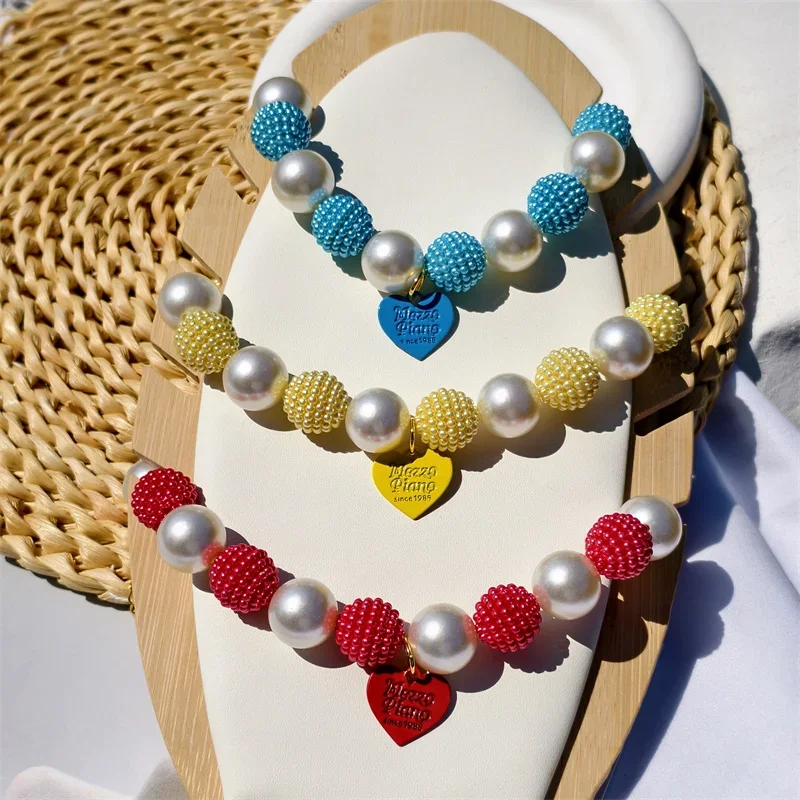 Este collar cuenta con un diseño lujoso con un gran collar de perlas y un colgante de corazón de melocotón, perfecto para ocasiones especiales como fiestas de cumpleaños de mascotas.