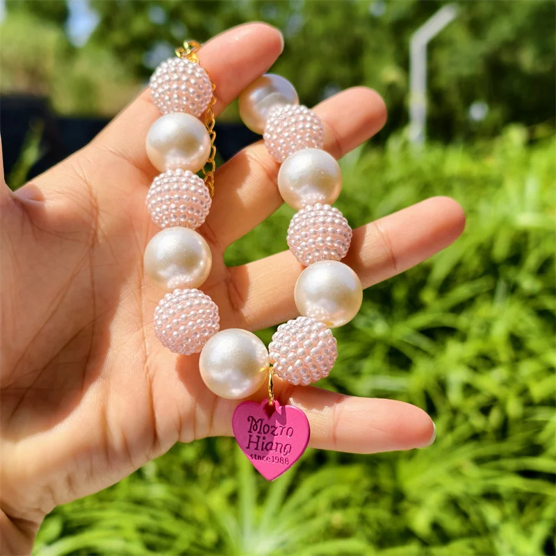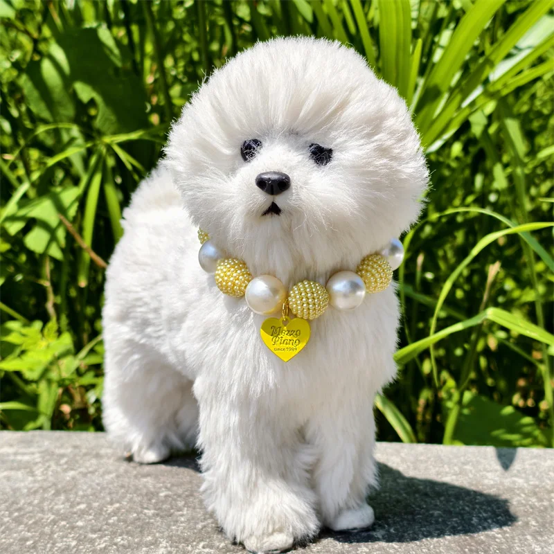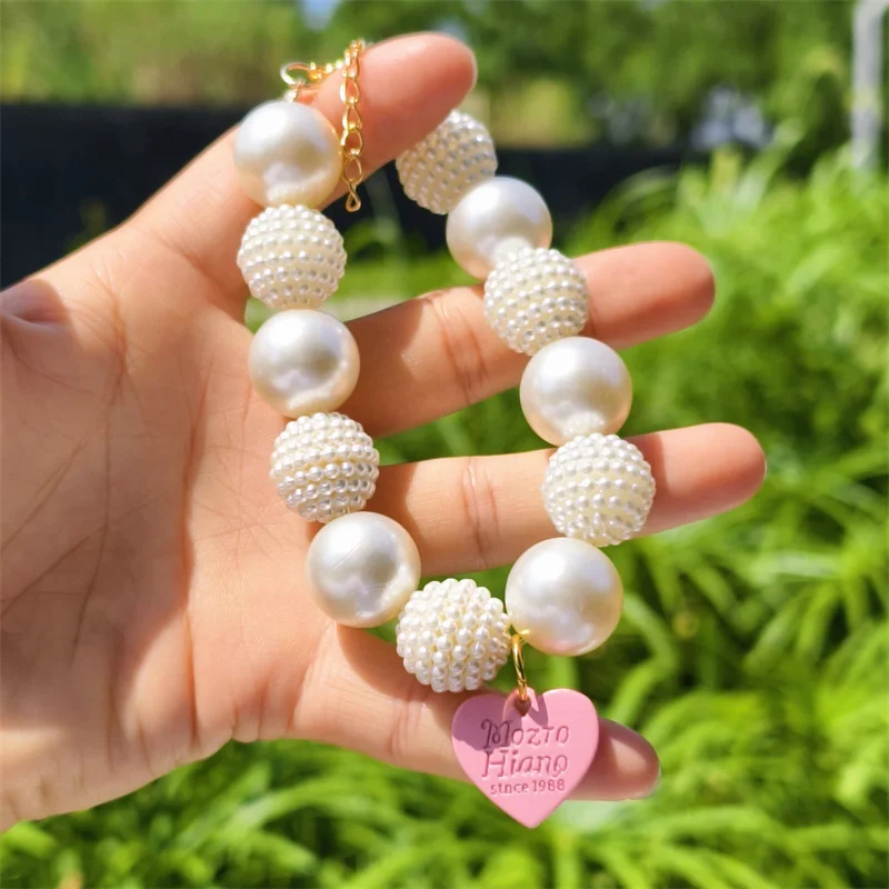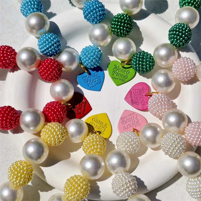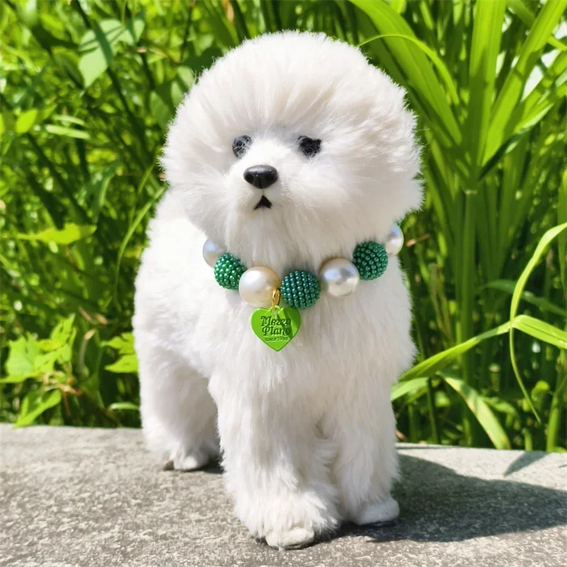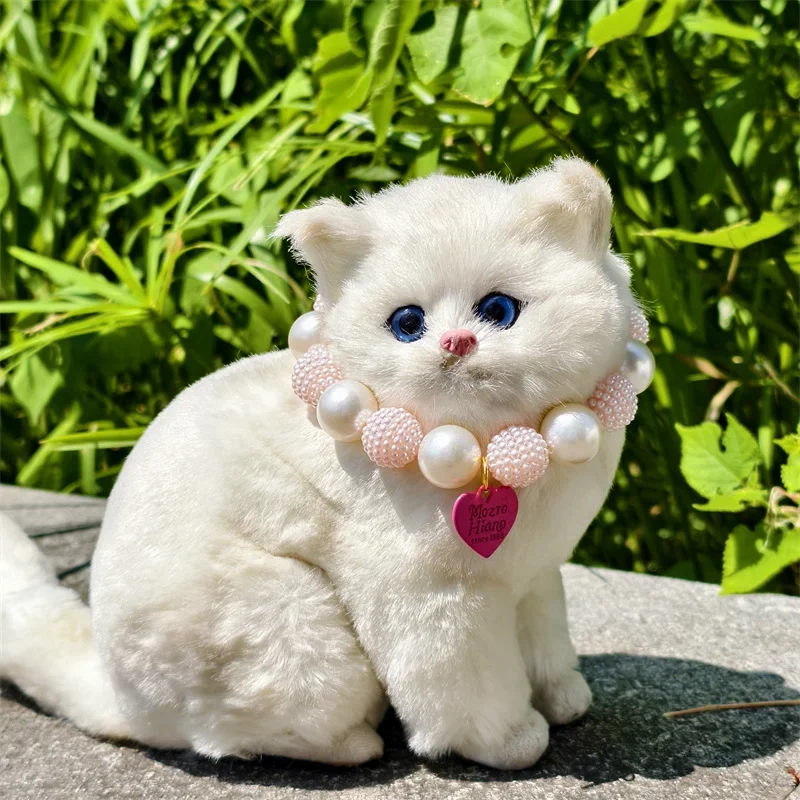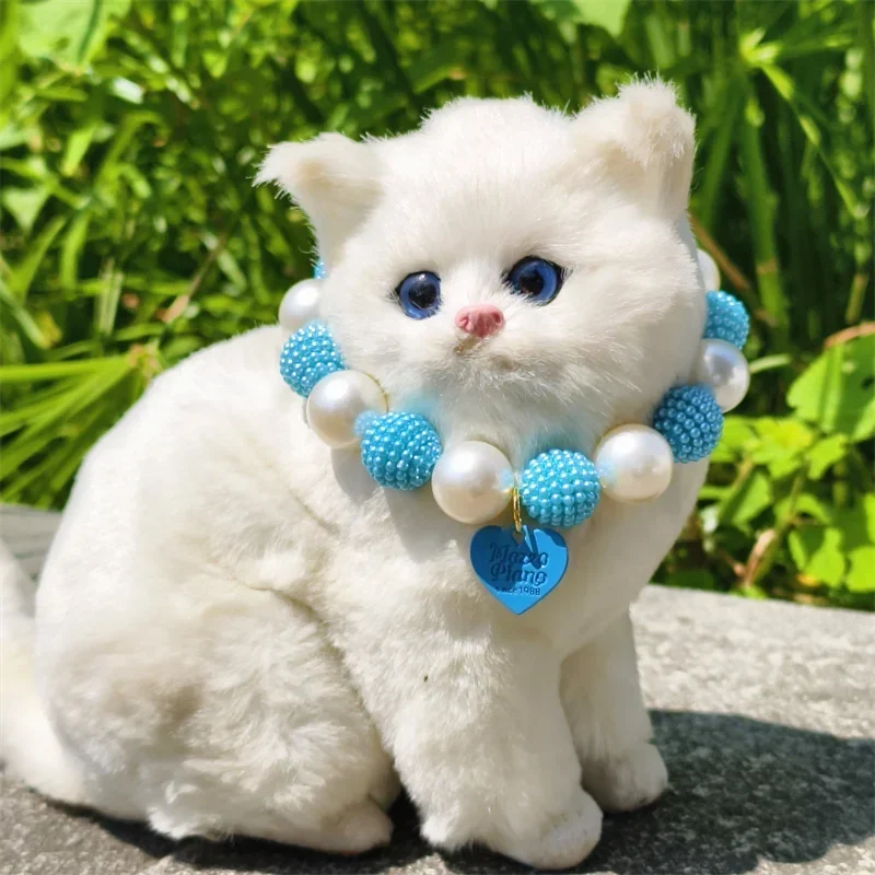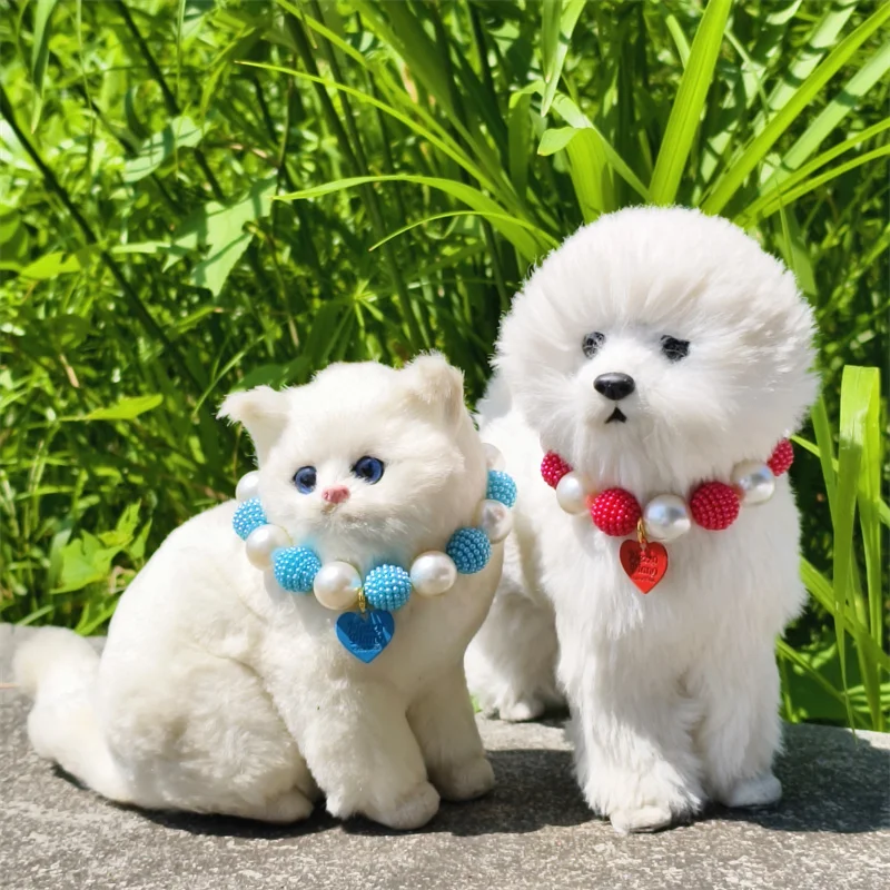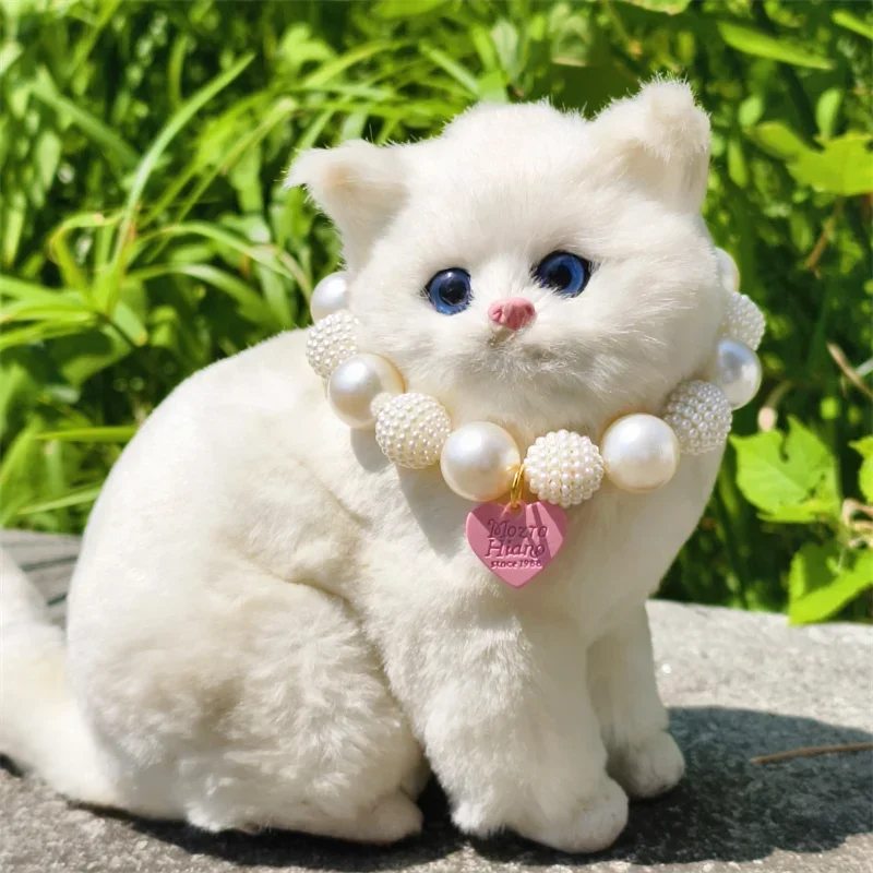 Este collar cuenta con un diseño lujoso con un gran collar de perlas y un colgante de corazón de melocotón, perfecto para ocasiones especiales como fiestas de cumpleaños de mascotas.