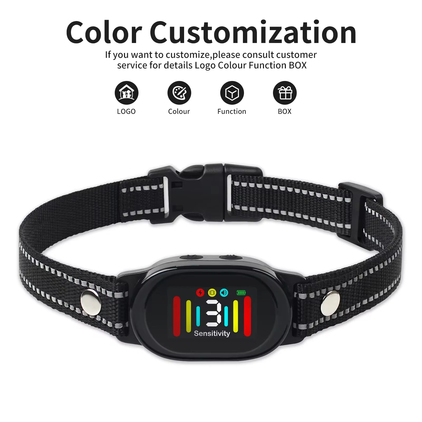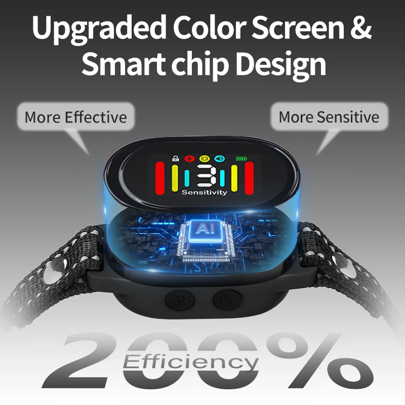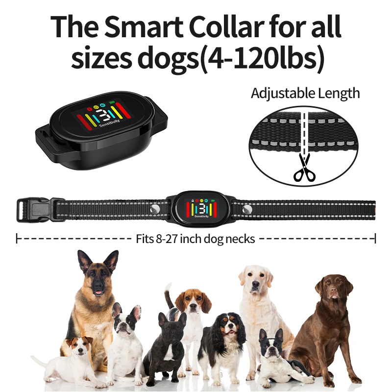 Respuesta :P Mantenga presionado el botón de encendido durante 2 segundos para encender el dispositivo.El botón de encendido puede ajustar la sensibilidad (1-3 niveles).Cuanto más fuerte haya ladrido el perro, menor será el número que elijas.Luego seleccione el modo que desee (botón M)