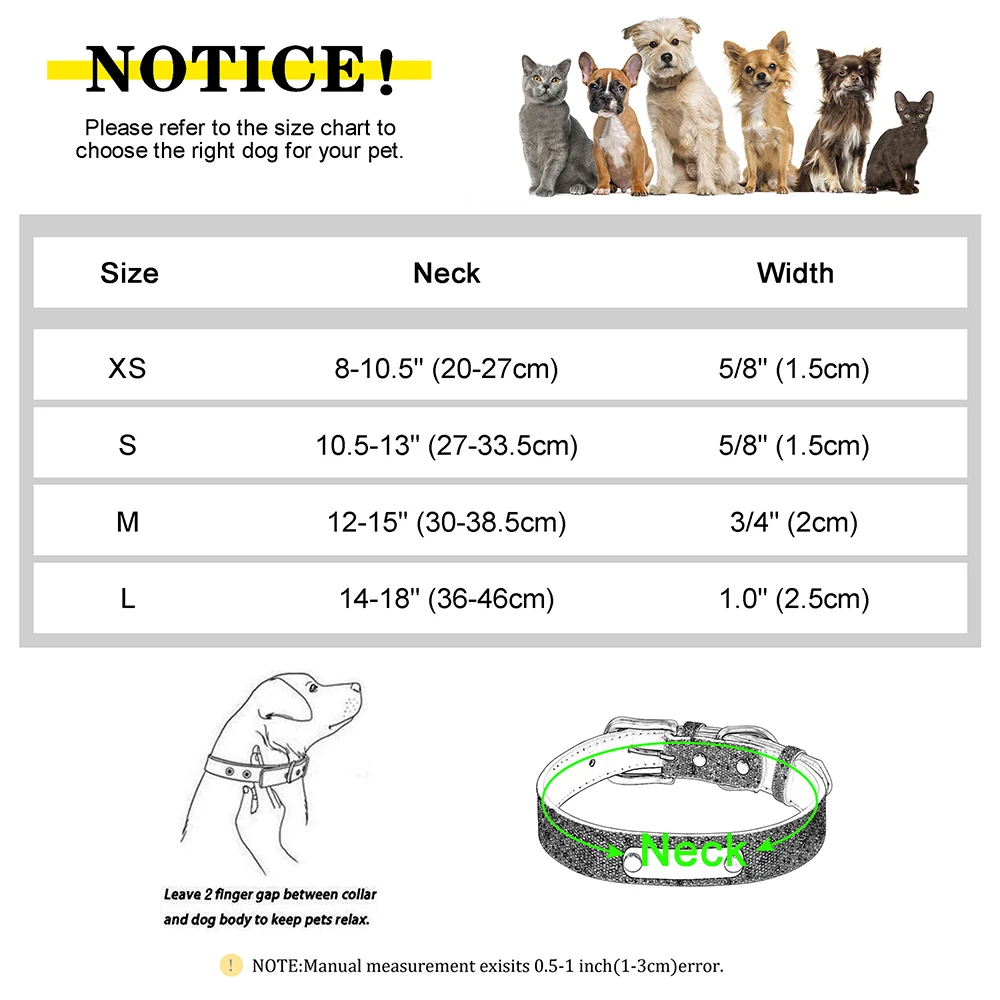 El collar antipérdida Beirui combina estilo y seguridad con diseño purpurina brillante y sistema de identificación ajustable. Fabricado en cuero PU de alta calidad, este collar es perfecto para perros pequeños, medianos y grandes, especialmente Chihuahua y Pug, ofreciendo protección contra extravío con un diseño elegante y llamativo.