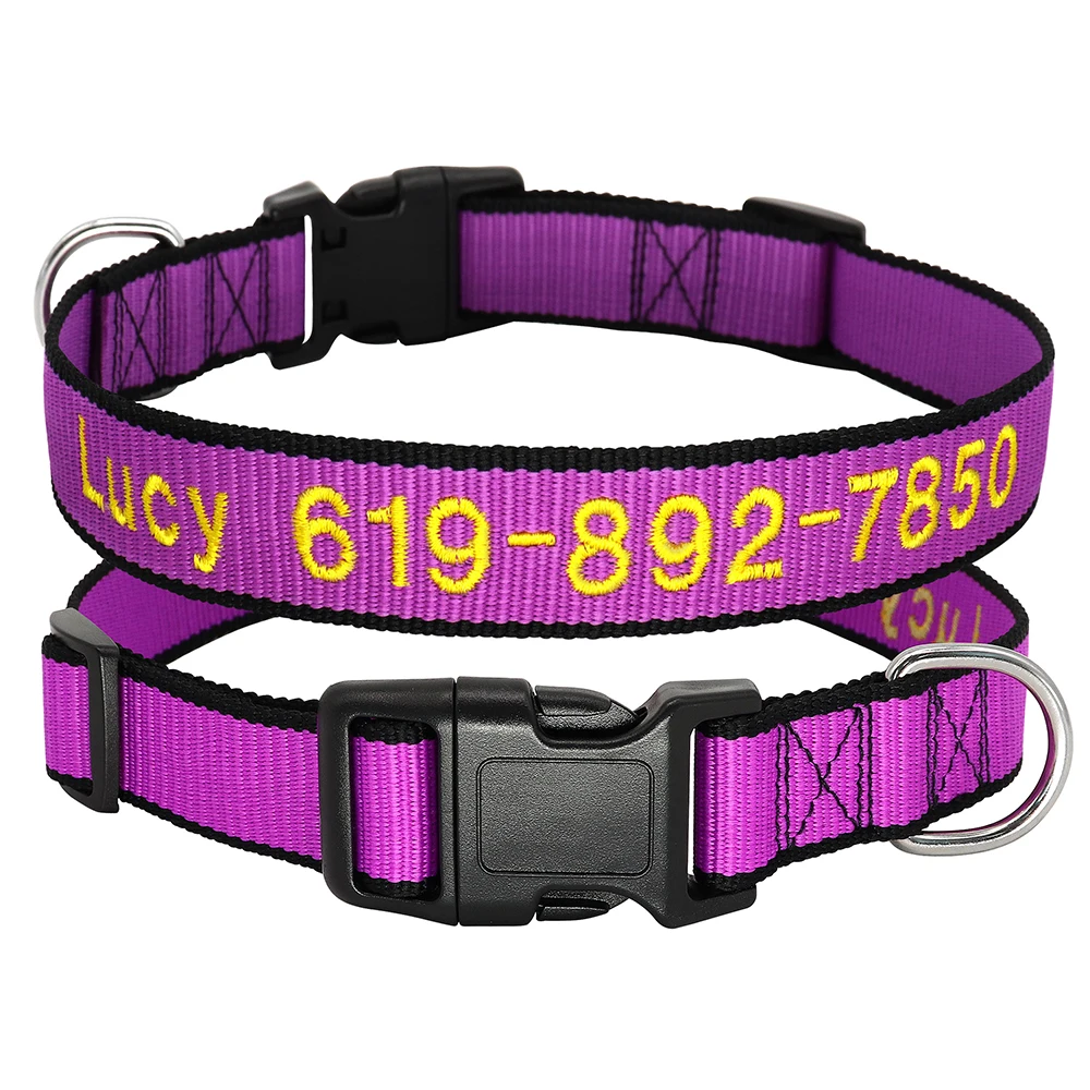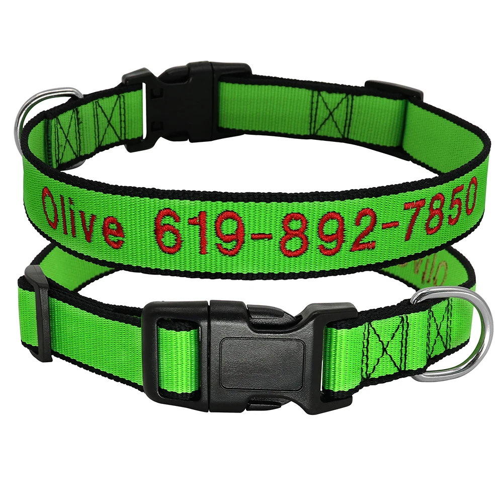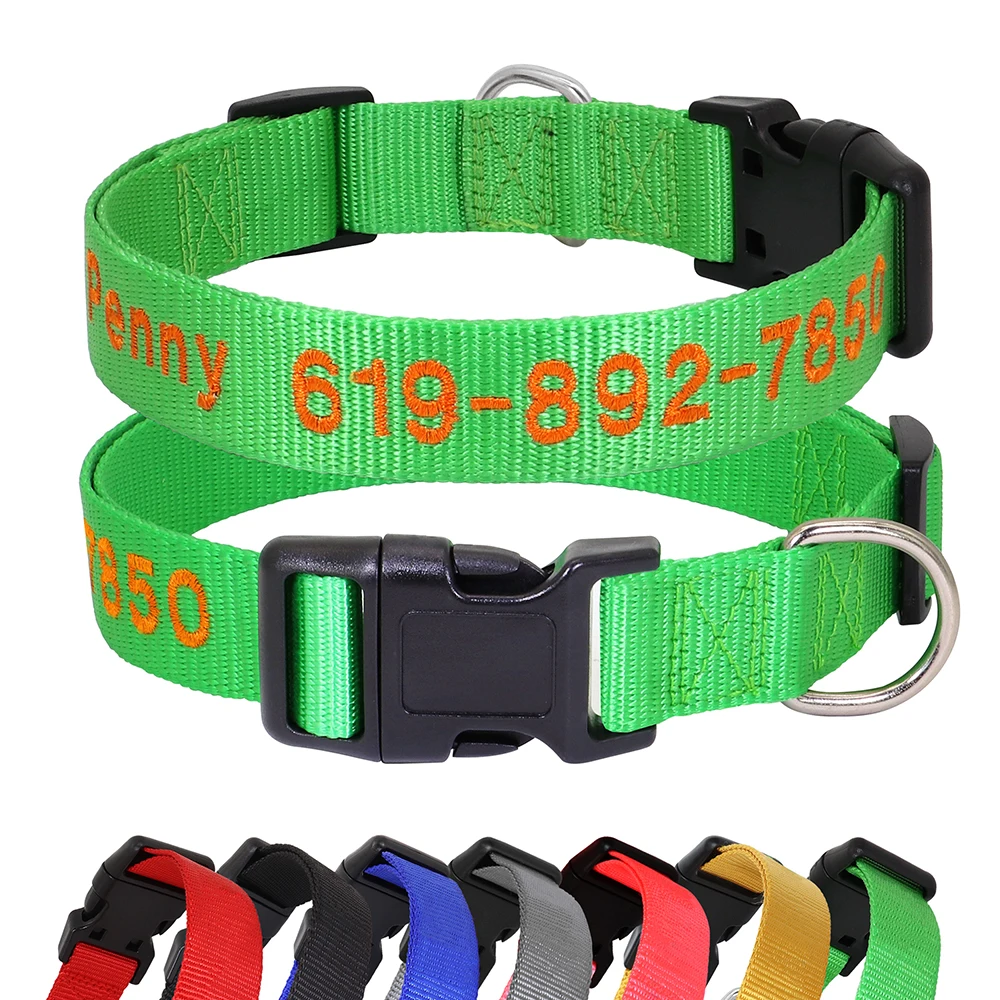 Tipo: Collar bordado personalizado para perro, Perro, nailon, personalizado, mascota, cachorro, gatito, nombre de identificación, accesorios, collares para perros pequeños, medianos y grandes