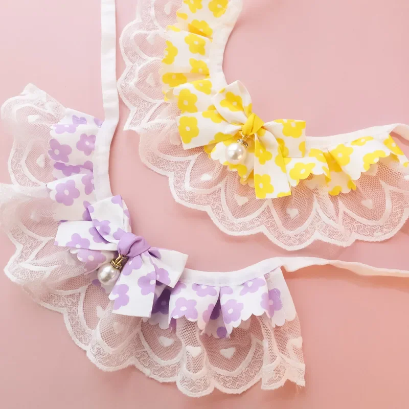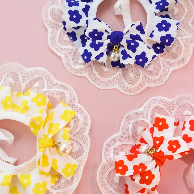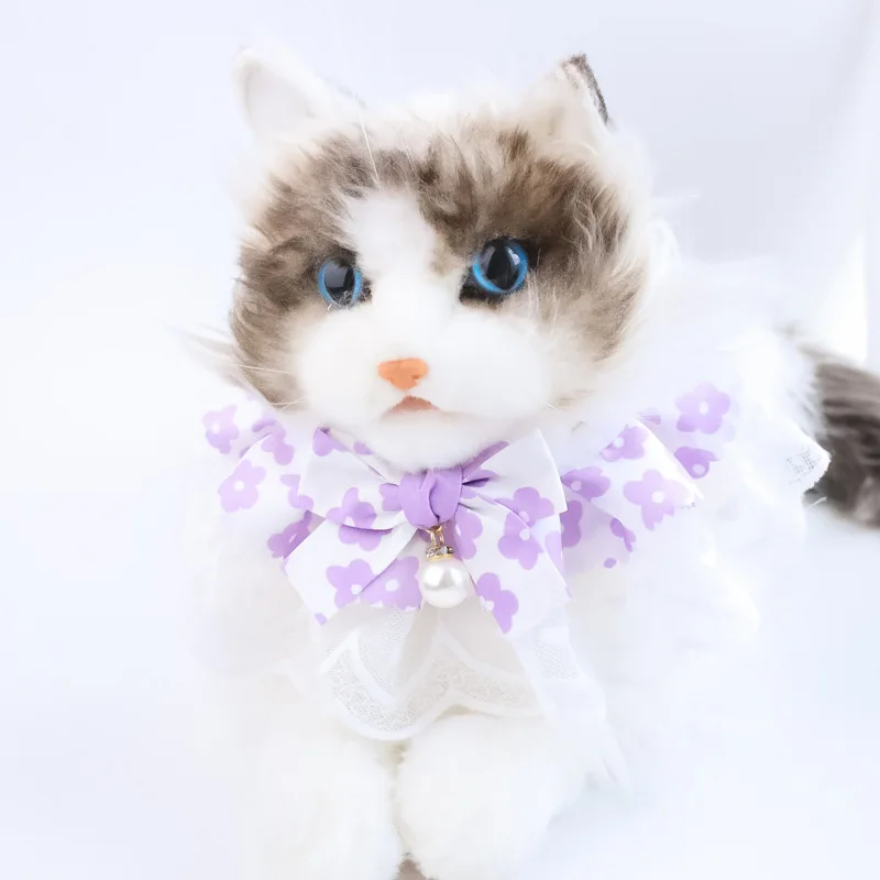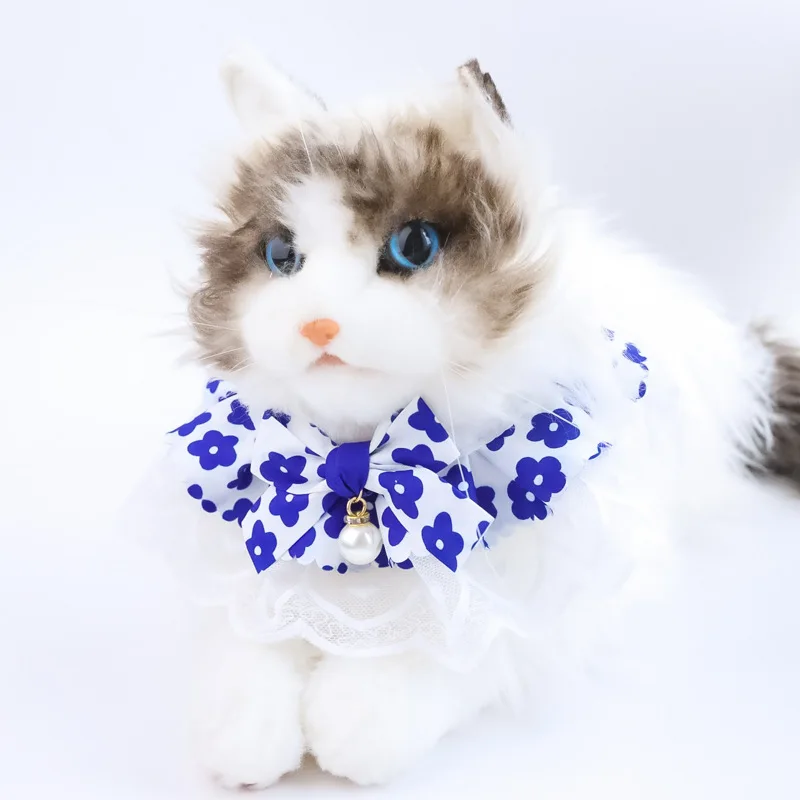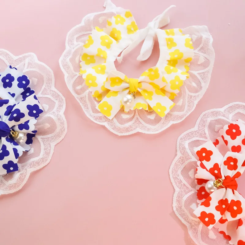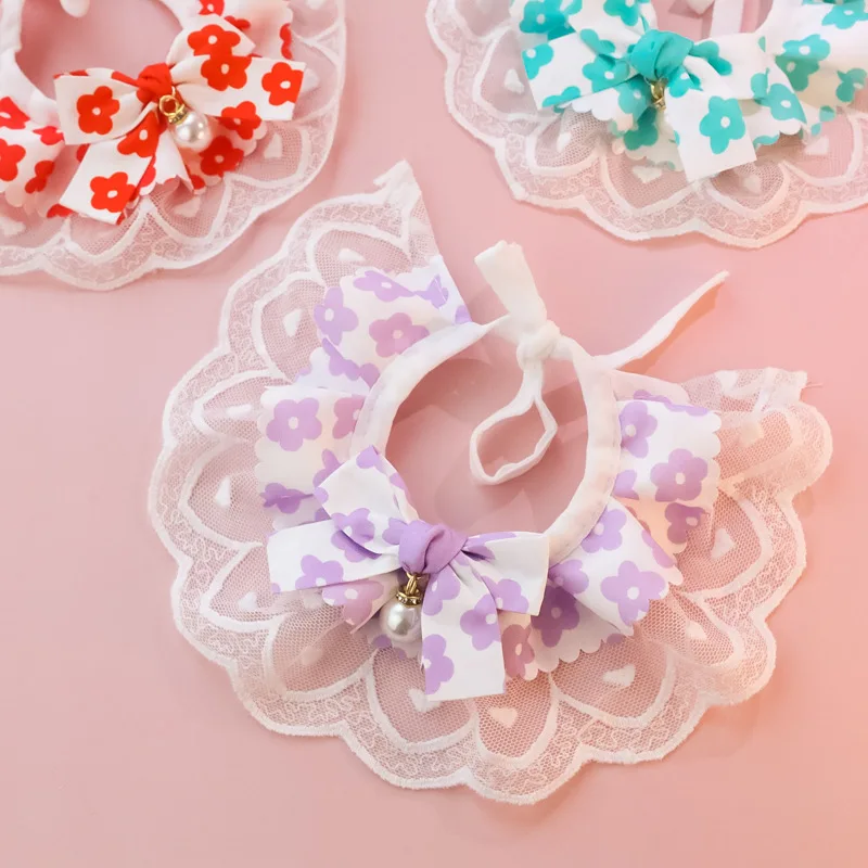 Este collar para mascotas presenta un colgante de perlas grandes de estilo coreano y una bufanda con lazo de flores de encaje, lo que agrega un toque de elegancia al look de su mascota.