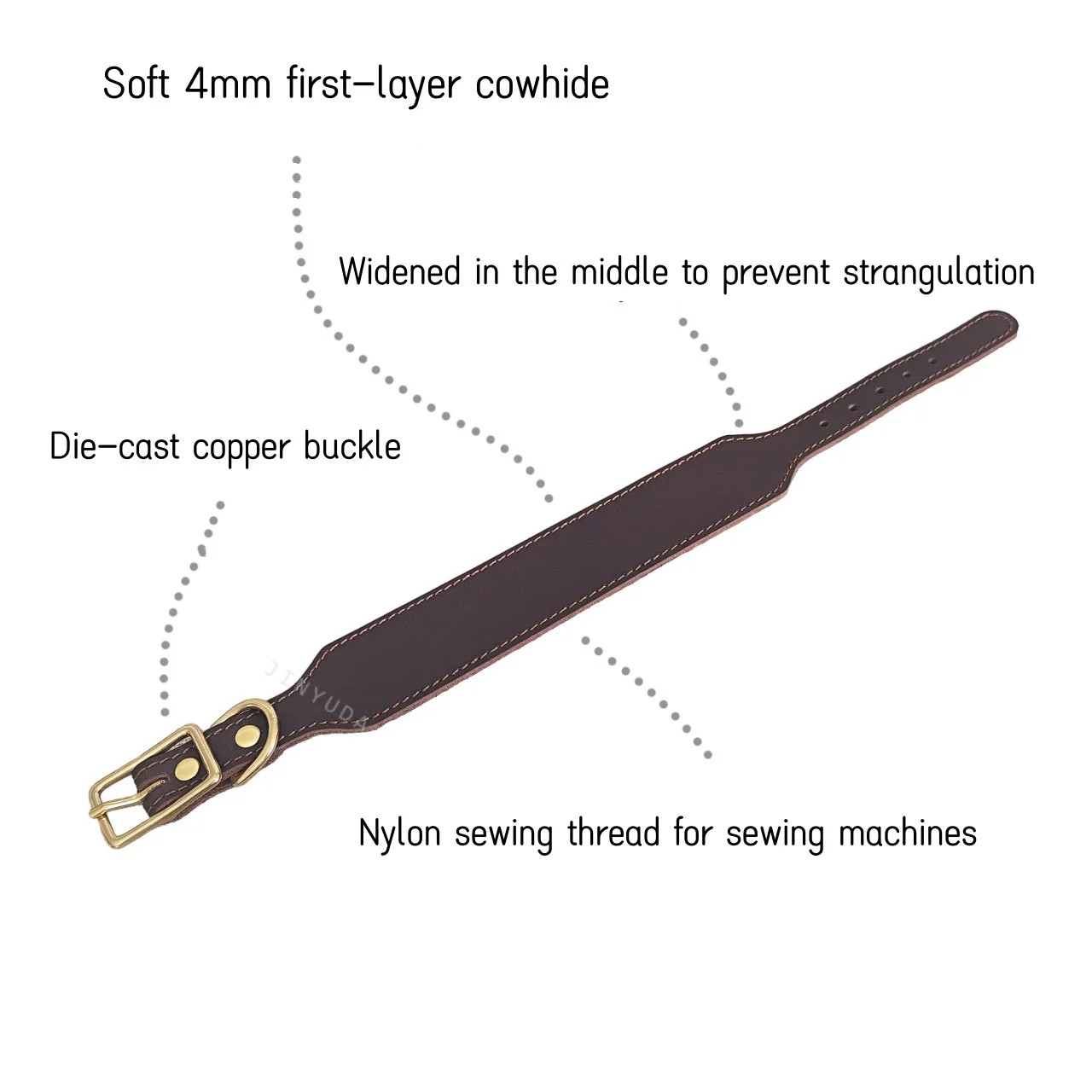 Collar de perro cónico Extra ancho de cuero genuino para cuello largo cuero de vaca galgo Saluki Deerhound Lurcher Whippet Collar de perro salchicha