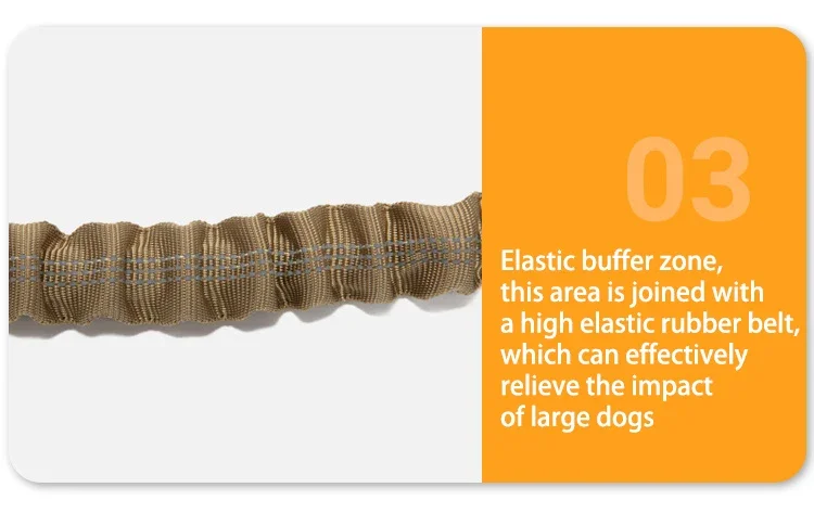 2. La correa para perros contiene bandas de goma altamente elásticas para amortiguar eficazmente el impacto de perros grandes.