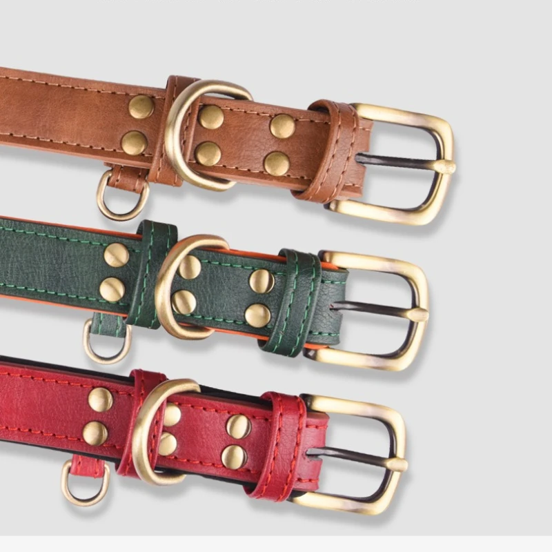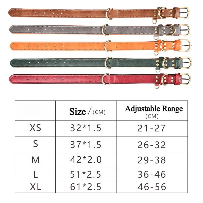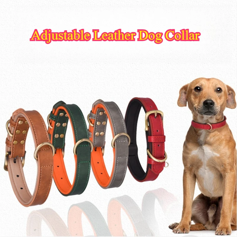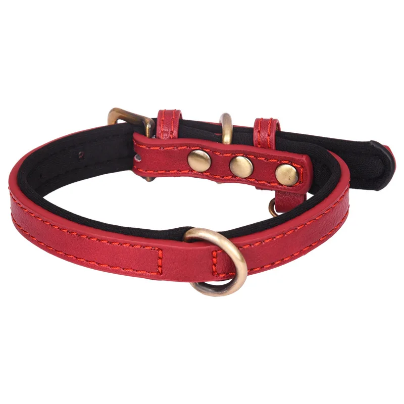 Collar de perro de cuero ajustable: diseño antiestrangulación acolchado suave con broche de metal, lindo collar para mascotas de color sólido rojo