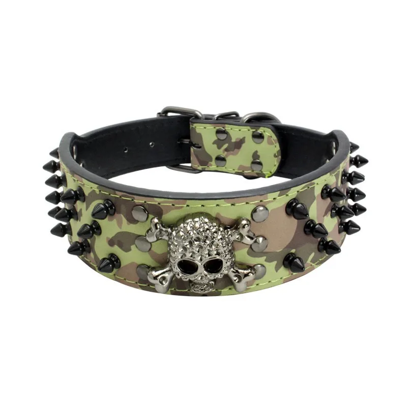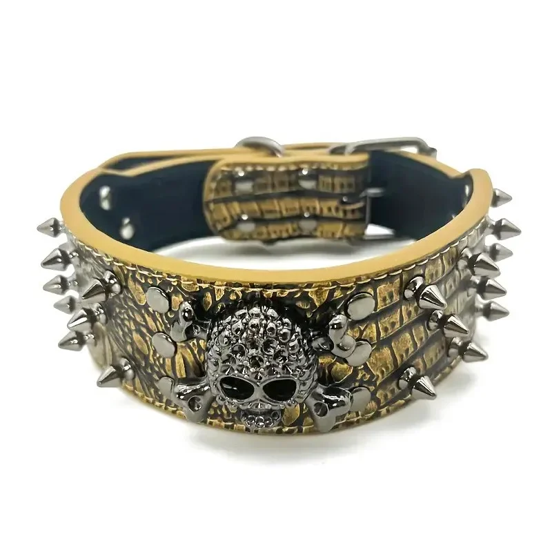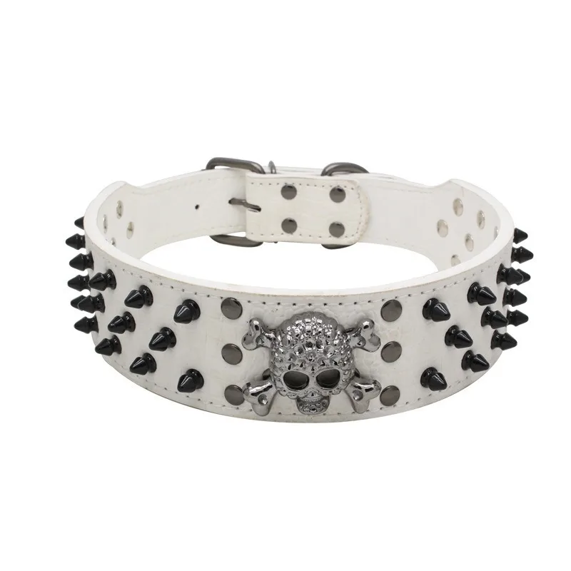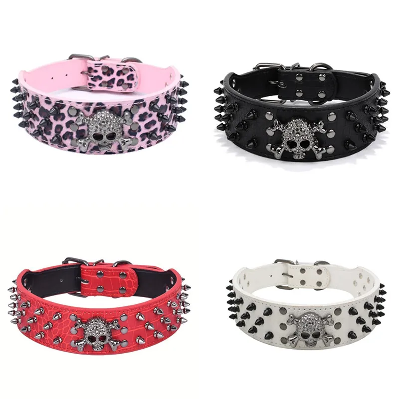 Collar de perro de cuero ajustable con tachuelas y pinchos con diseño de calavera Punk para perros medianos y grandes, suministros para gatos Pitbull Boxer