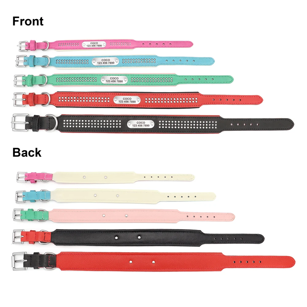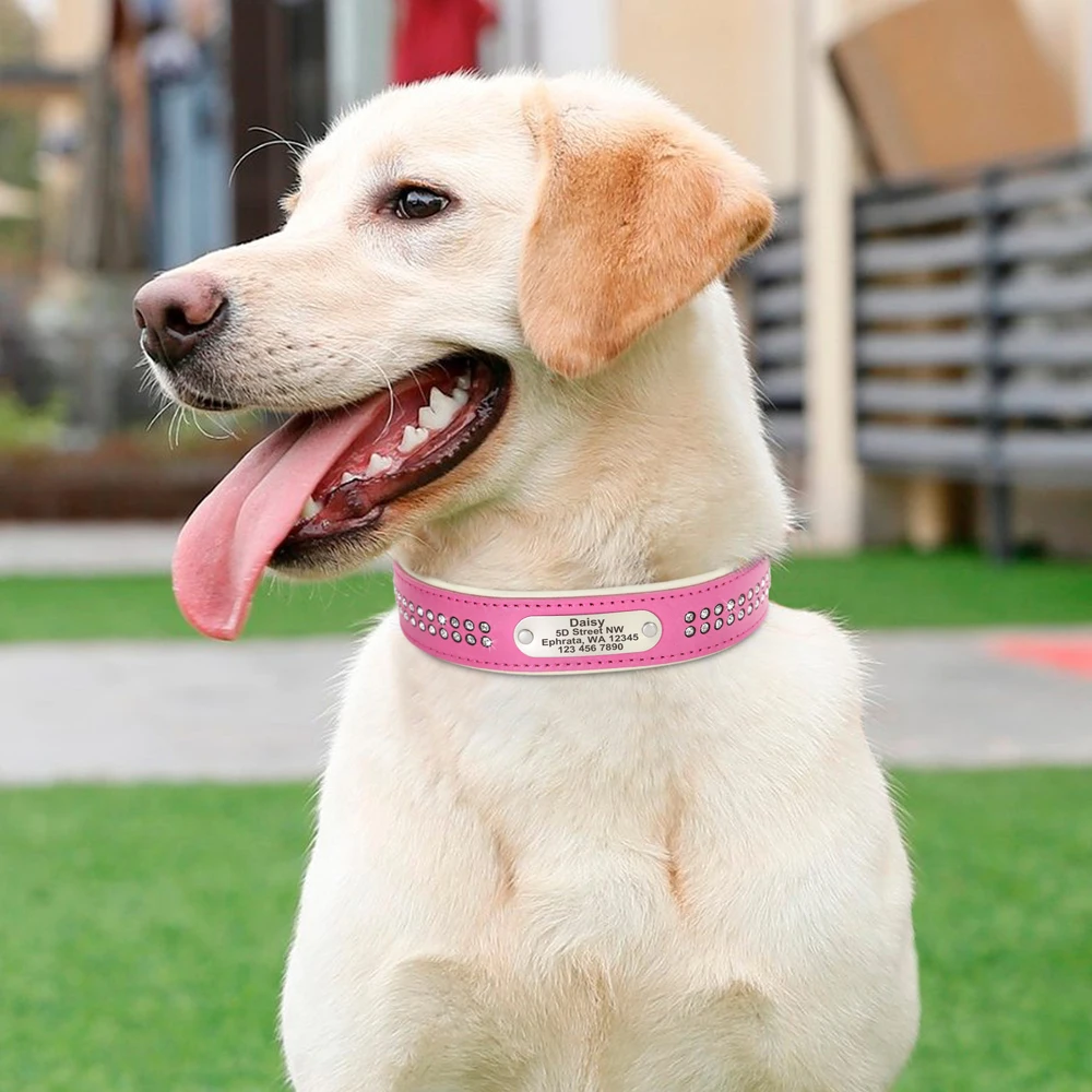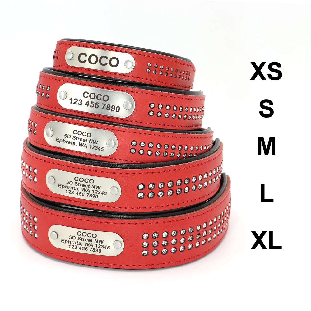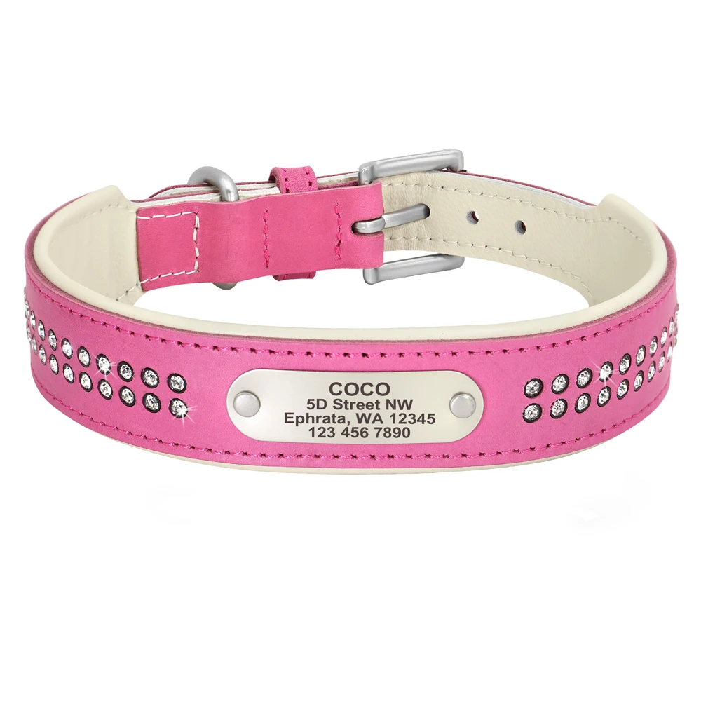 Collar de perro de cuero Real personalizado Collar suave de diamantes de imitación de cristal nombre de identificación personalizado para perros pequeños, medianos y grandes, Pug