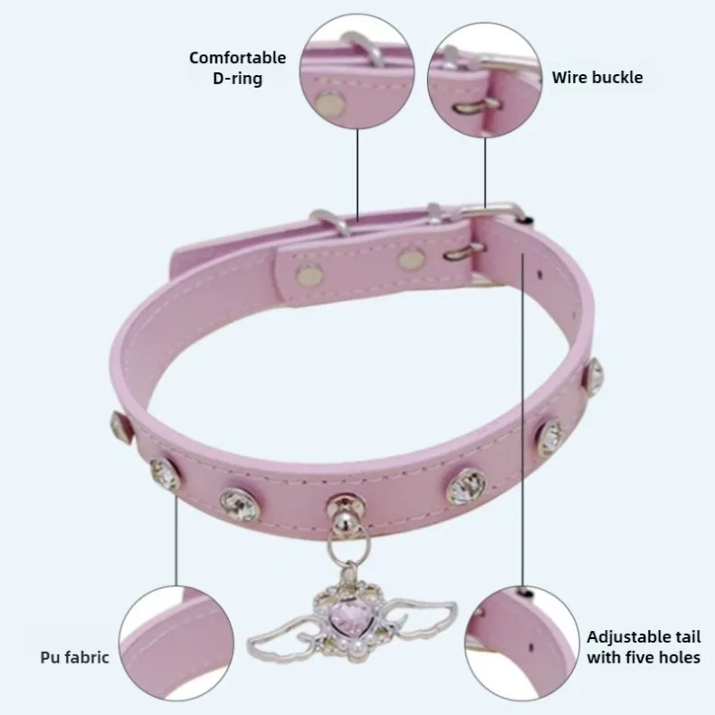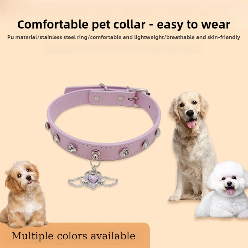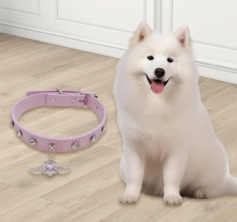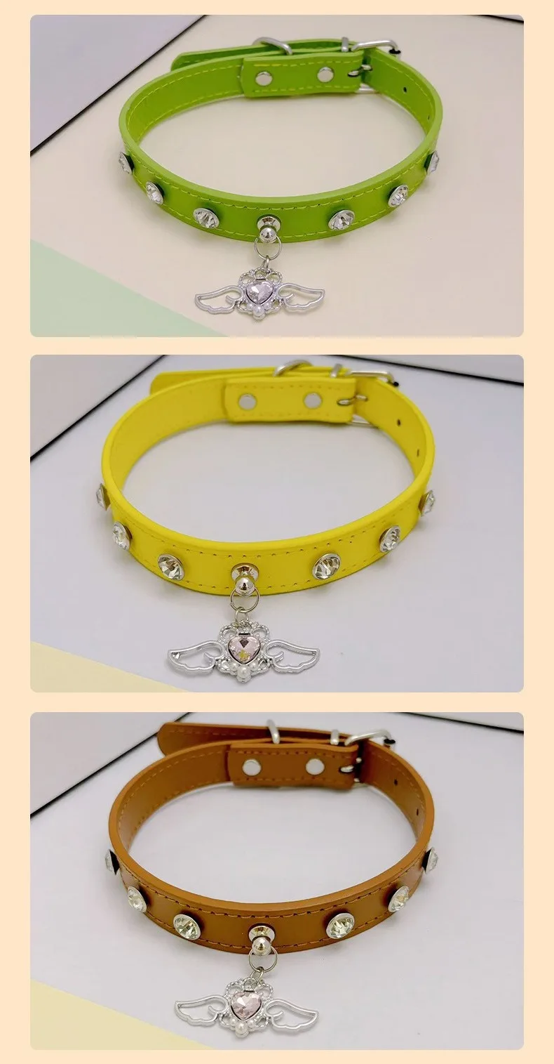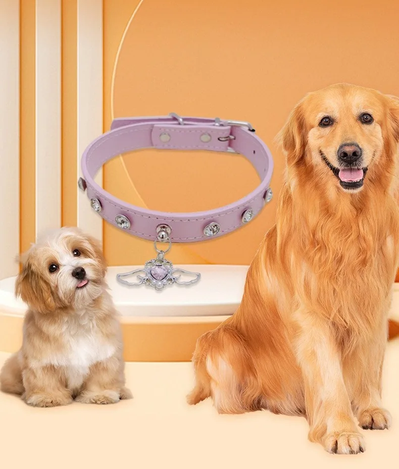 Collar de perro de cuero con diamantes de imitación brillantes, Collar de perro personalizado ajustable, cuello antimordida, Collar para perros y gatos, decoración para mascotas