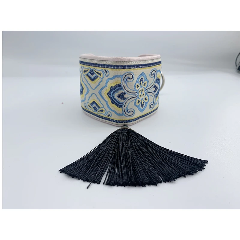 Collar de perro de cuero de estilo étnico Collar de perro pequeño y mediano Collar Whippet gris (no ajustable)
