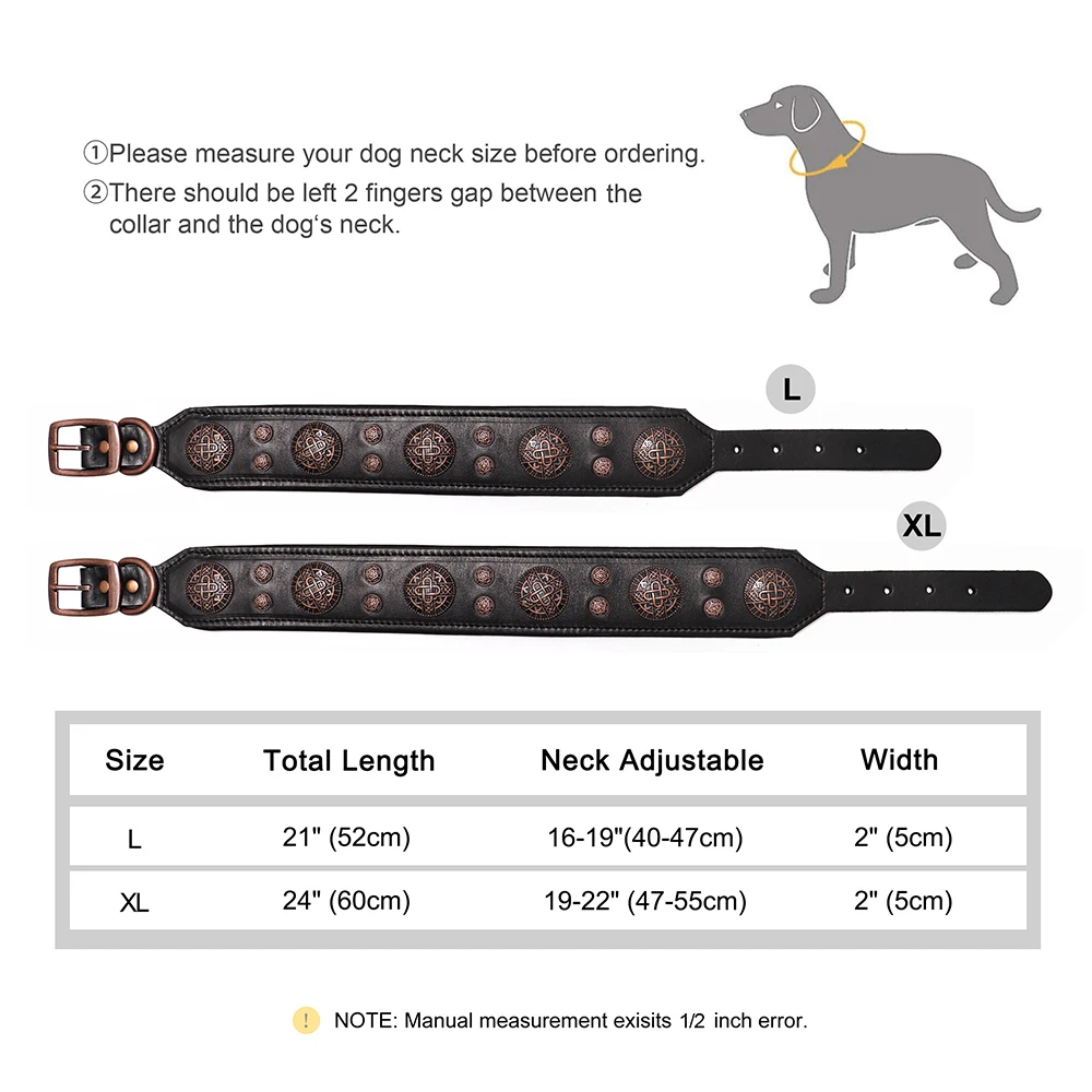 Collar de perro de cuero genuino, collares para perros con tachuelas y pinchos, Collar ajustable para mascotas para perros medianos, Bulldog Francés, Labrador