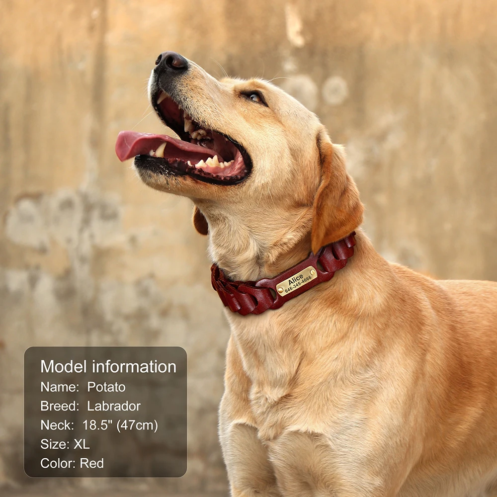 Custom Genuine Leather Dog Collar Accessories Soft Personalized ID Tag Nameplate Pet Collars For Medium Large Dogs Pitbull Perro