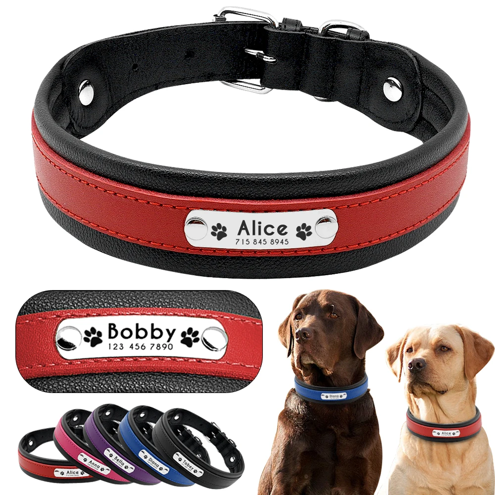 Collar de perro de cuero personalizado, collares de Bulldog para perros grandes y mascotas grabados, acolchados para perros medianos y grandes Perro Pitbull
